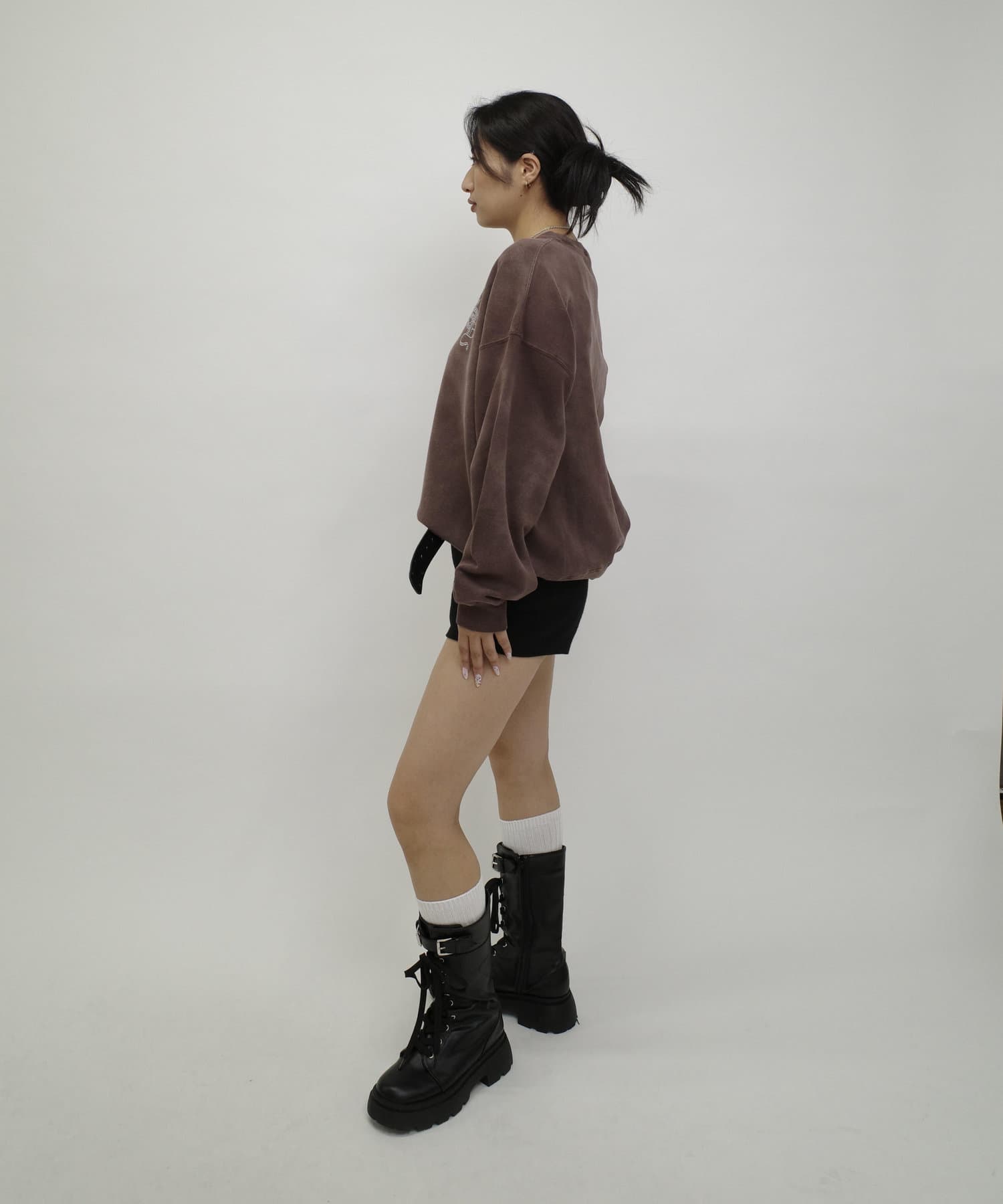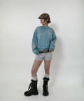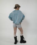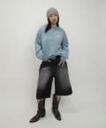 少しゆるっとしたサイズ感なので、ミニ丈ボトムやハーフデニムと合わせることによって