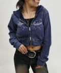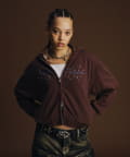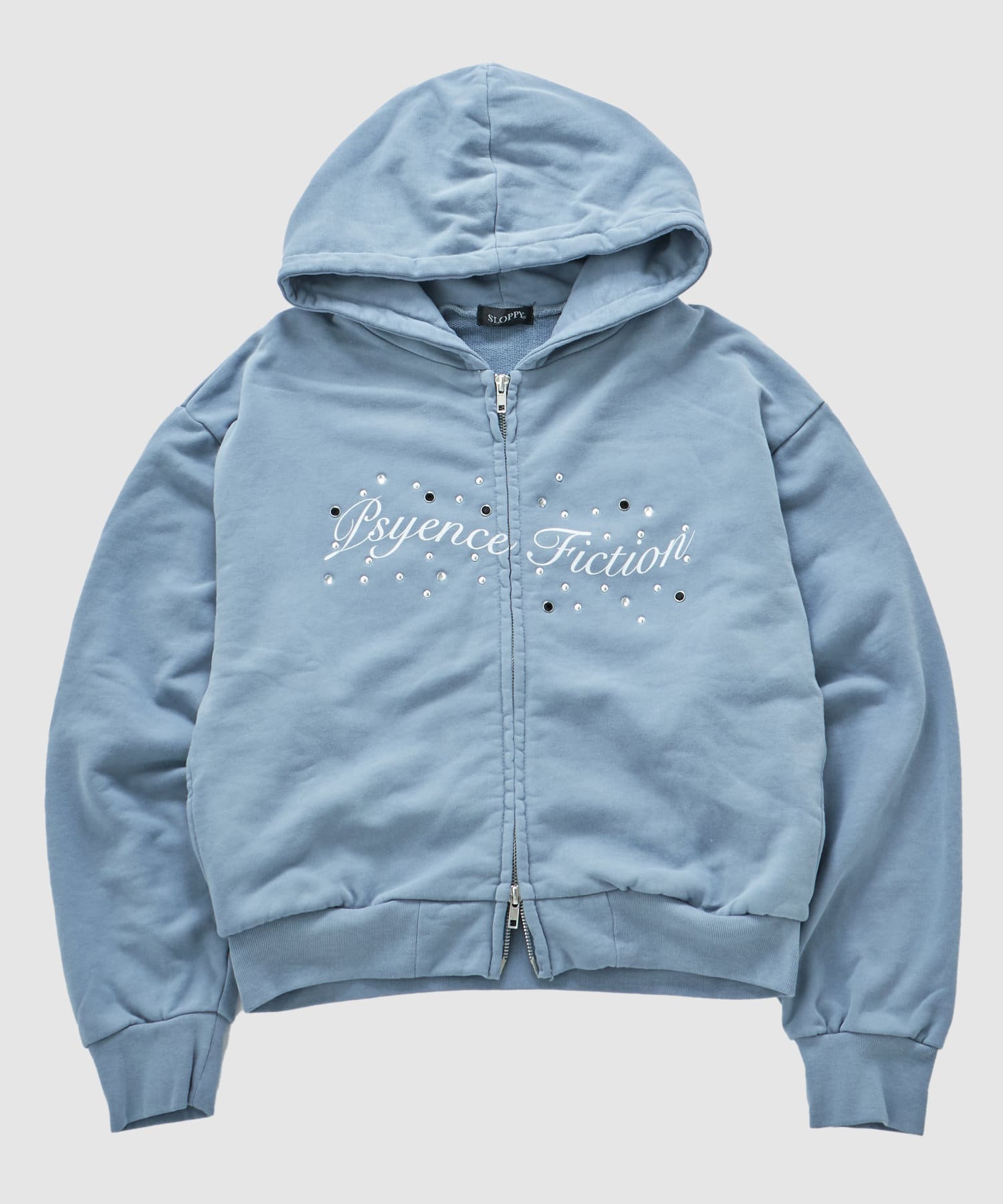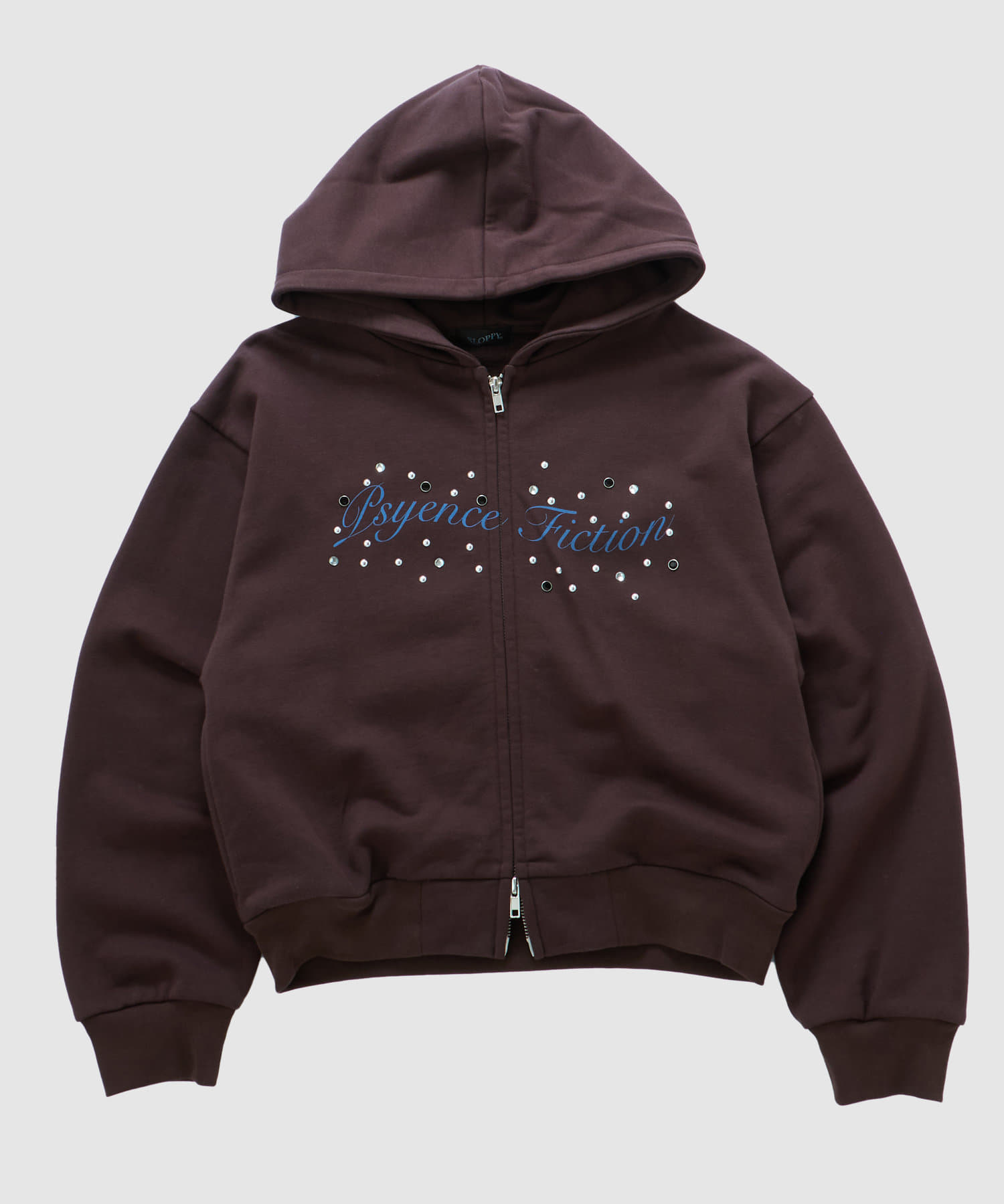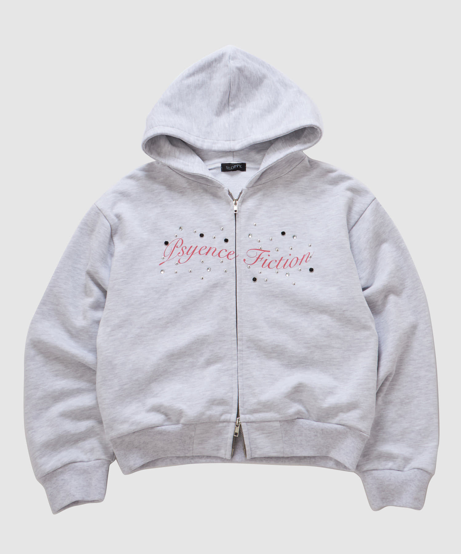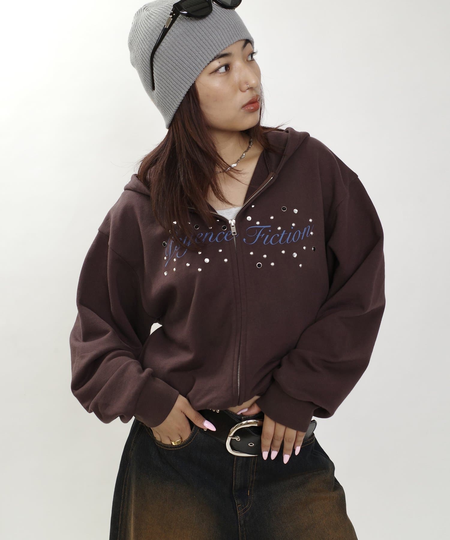 ・フロントのロゴとビーズがポイントのジップパーカー。