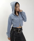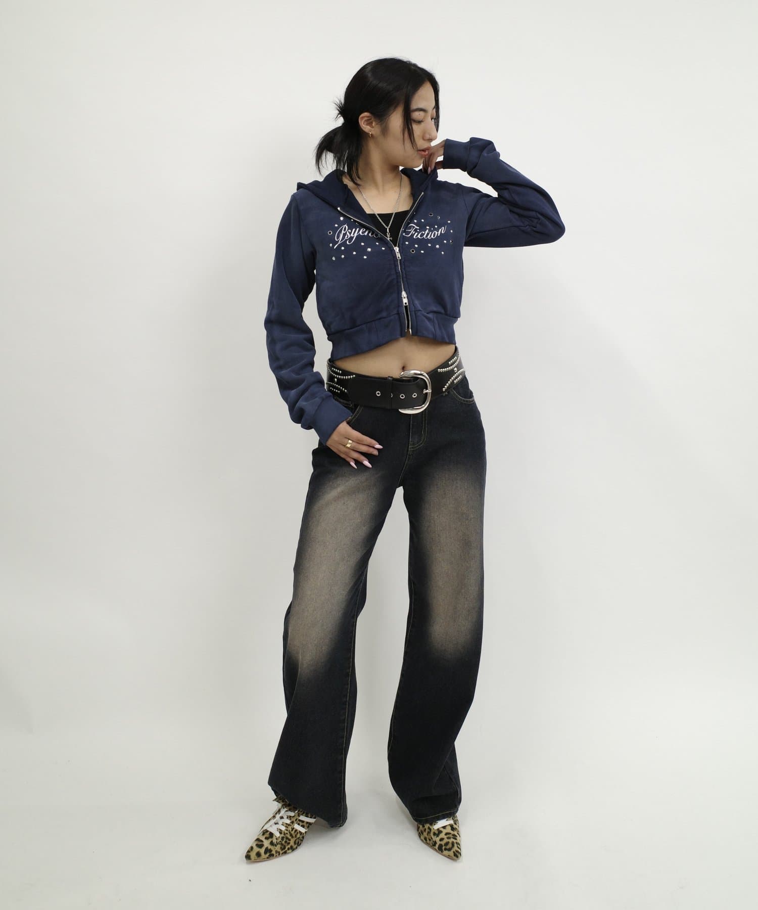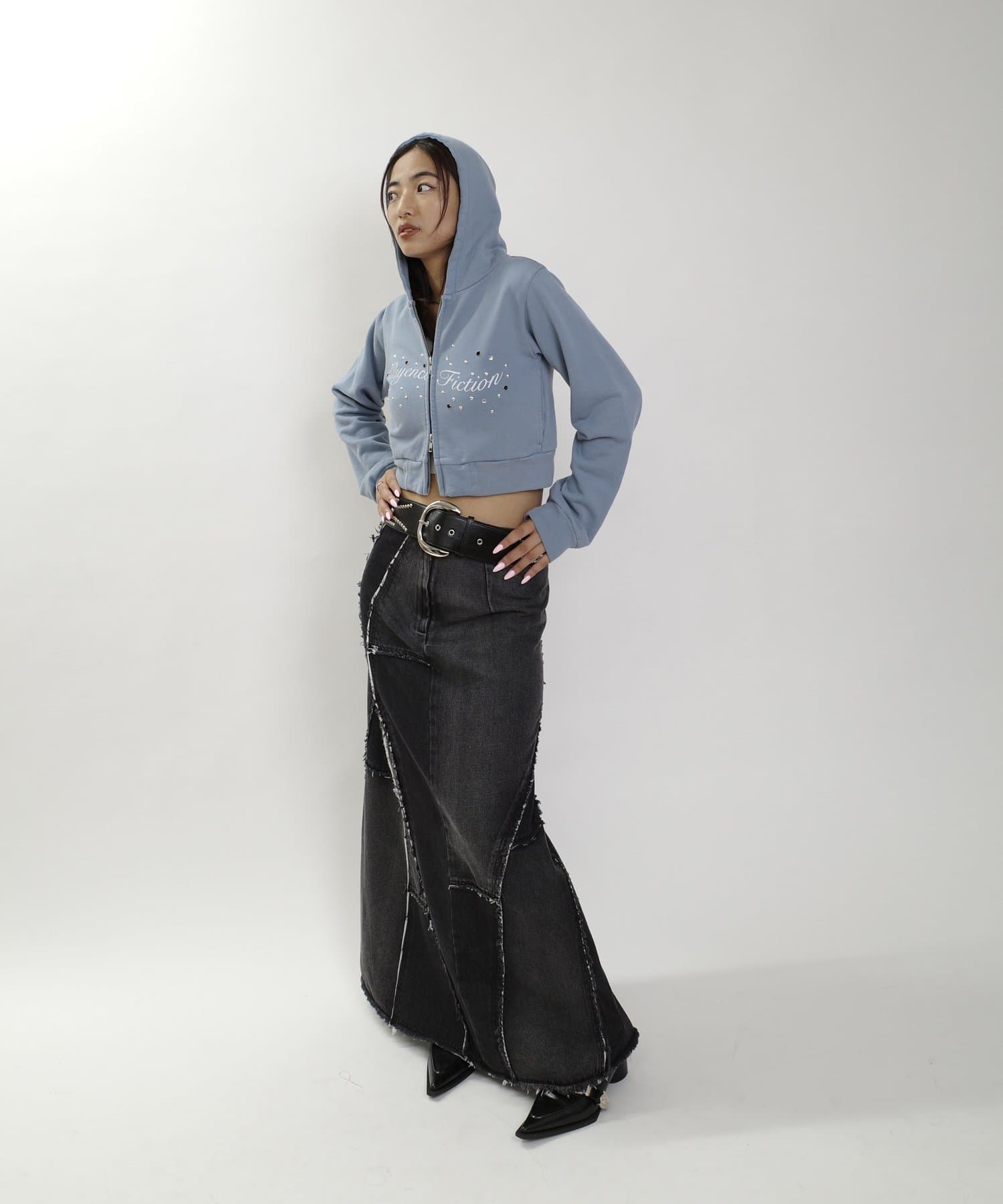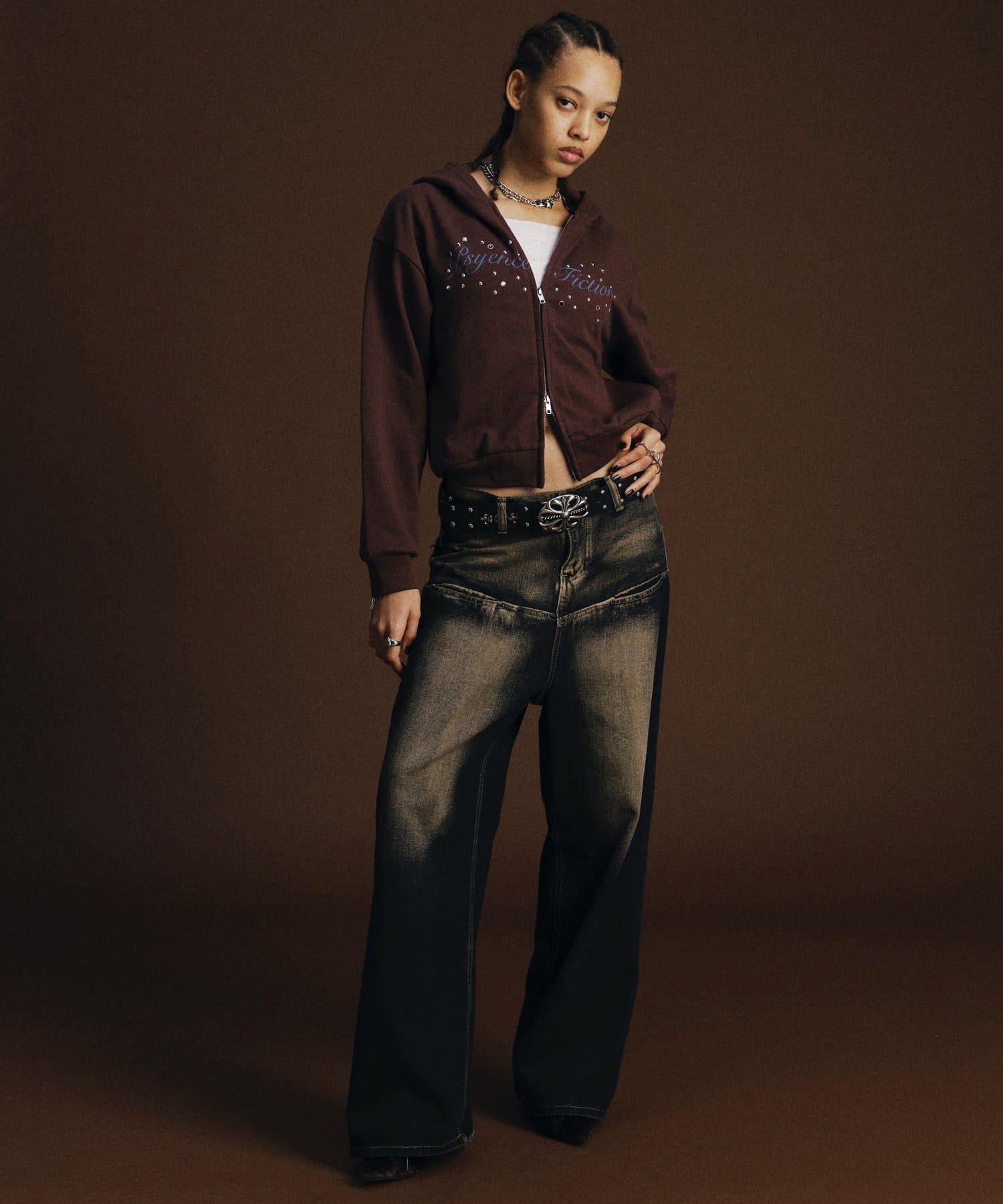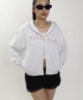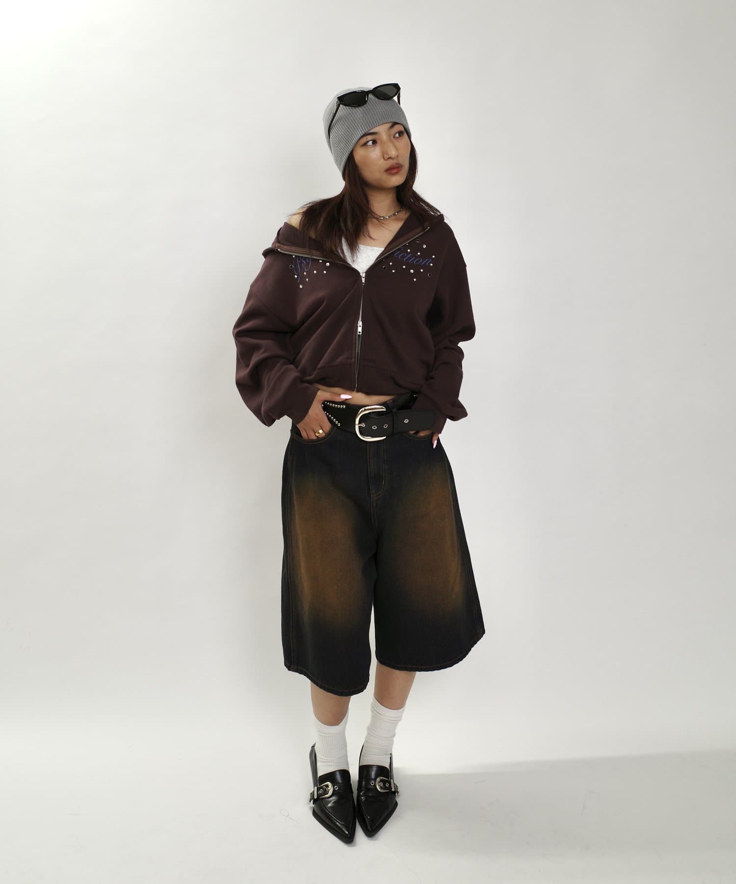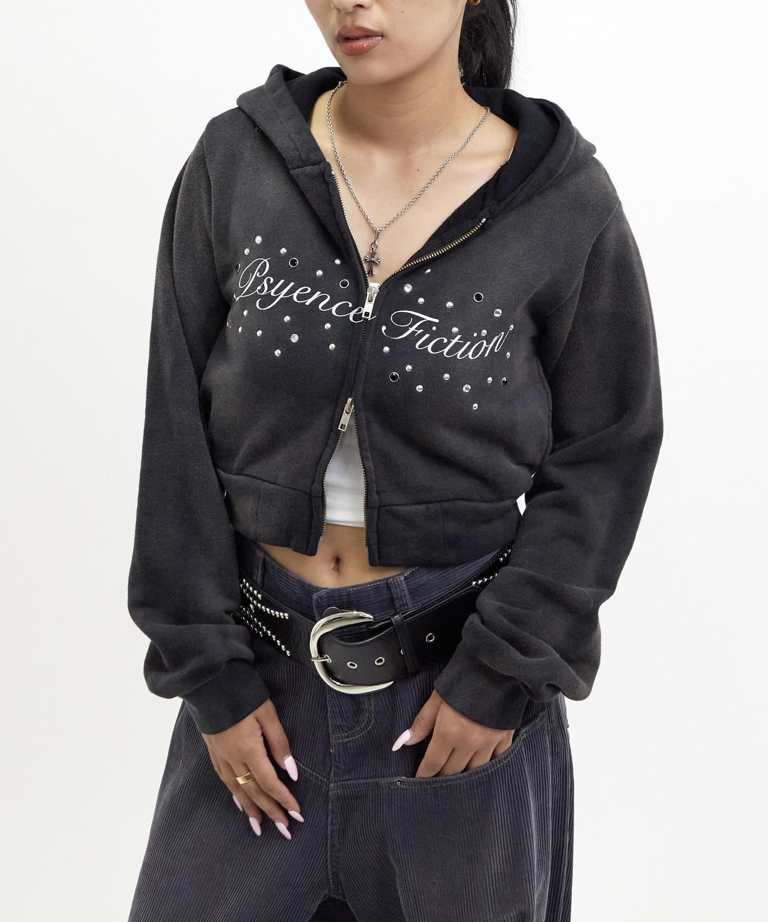 ・フロントのロゴとビーズがポイントのジップパーカー。