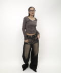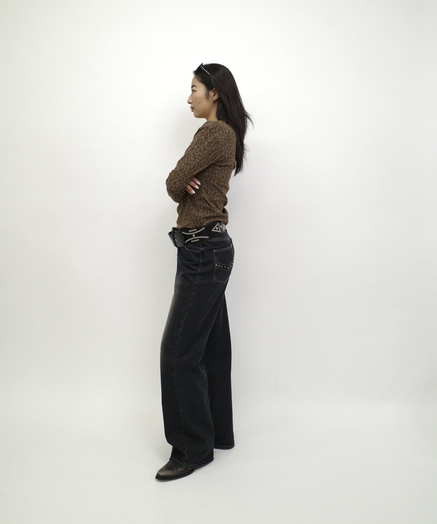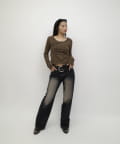 トップスが特徴的なので、デニムと合わせるのがオススメです。