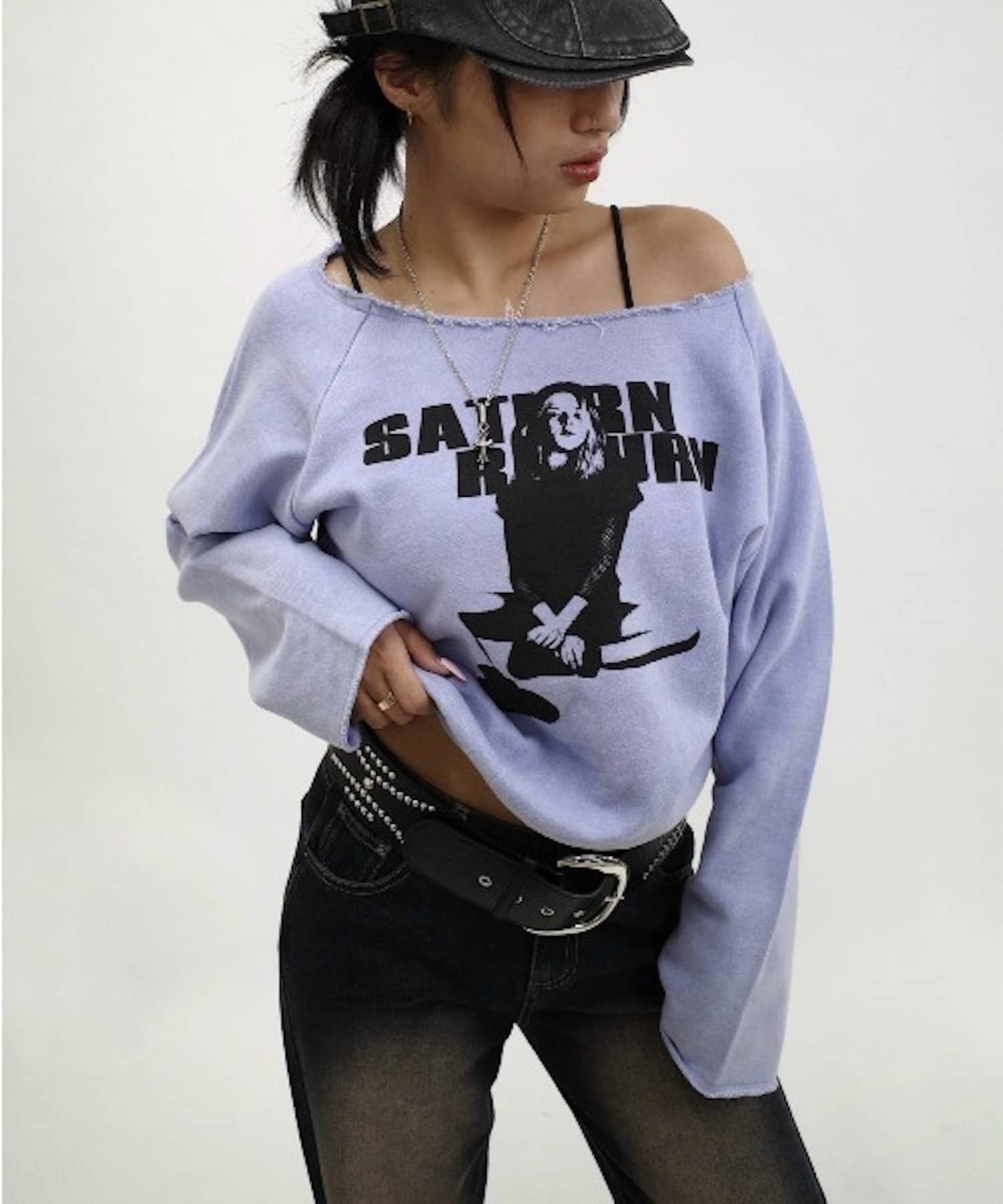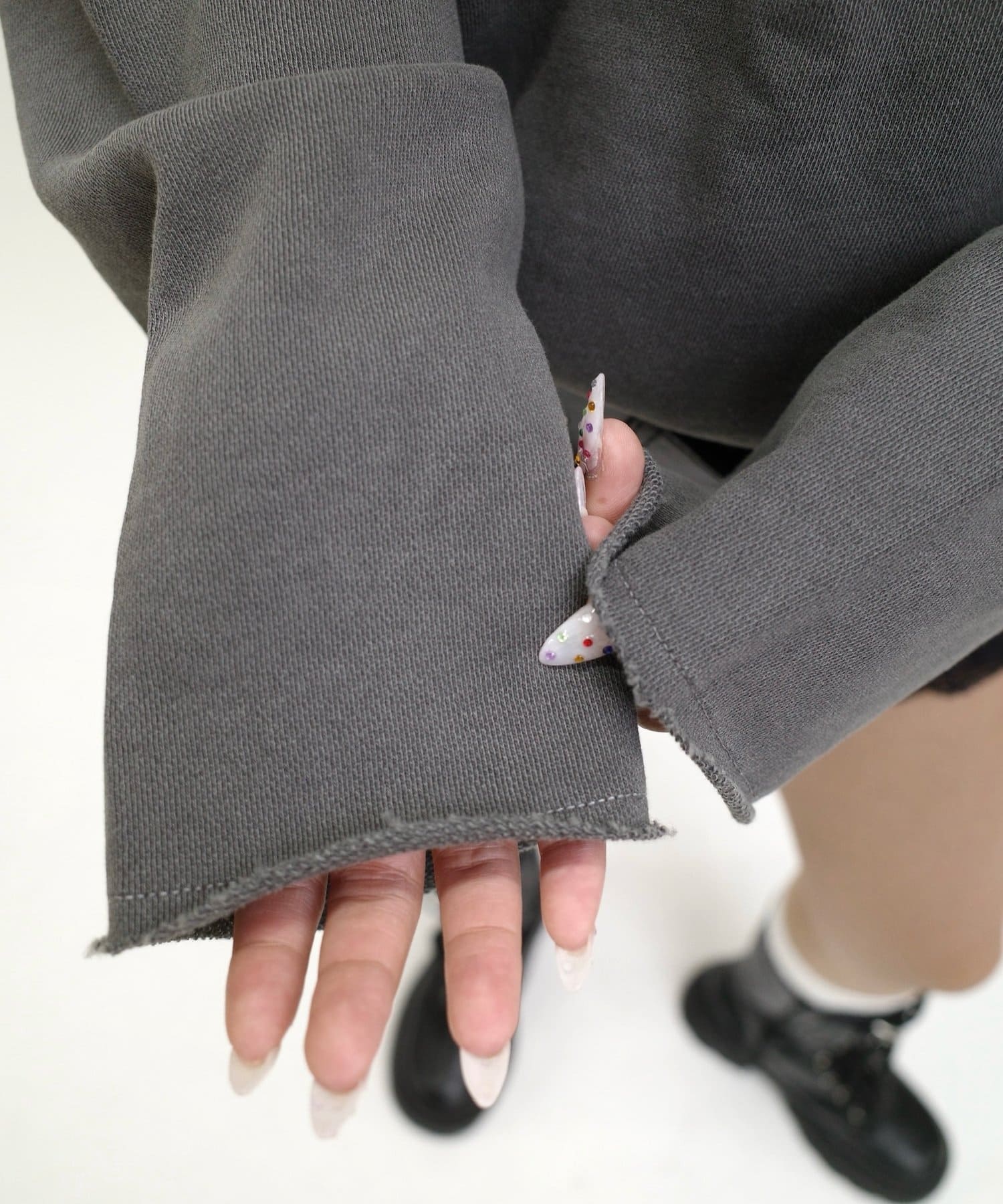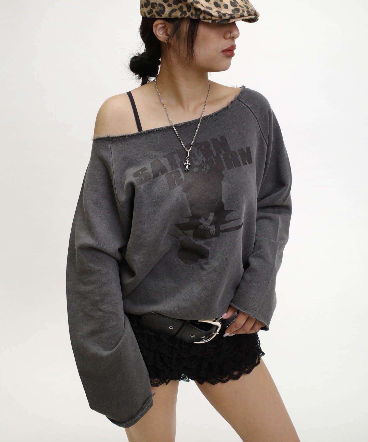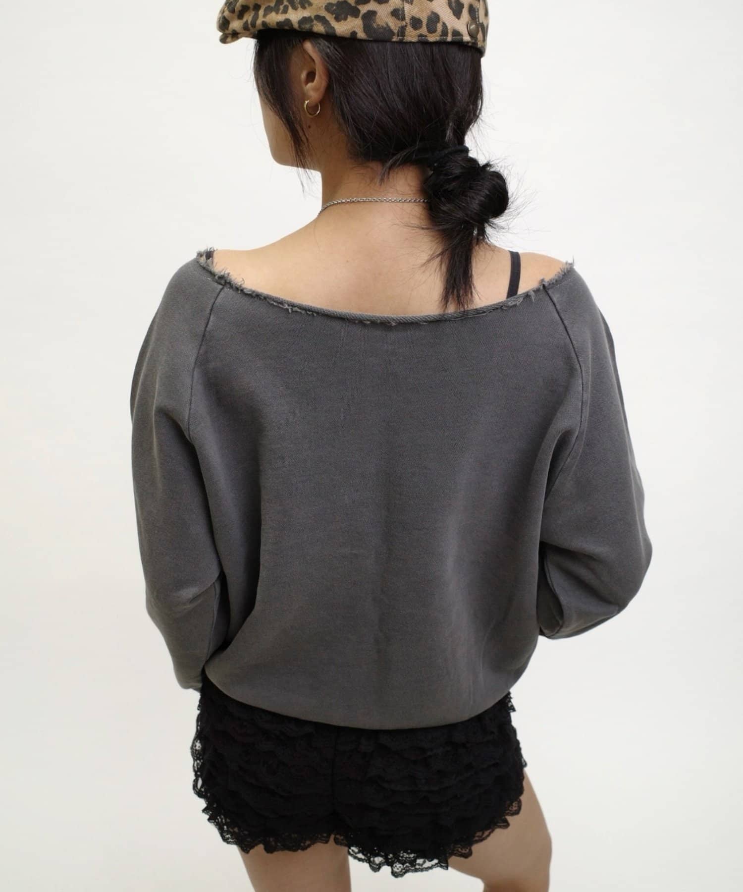 ・首元が切りっぱなしでトレンドのワンショルダーにもなるスウェット。