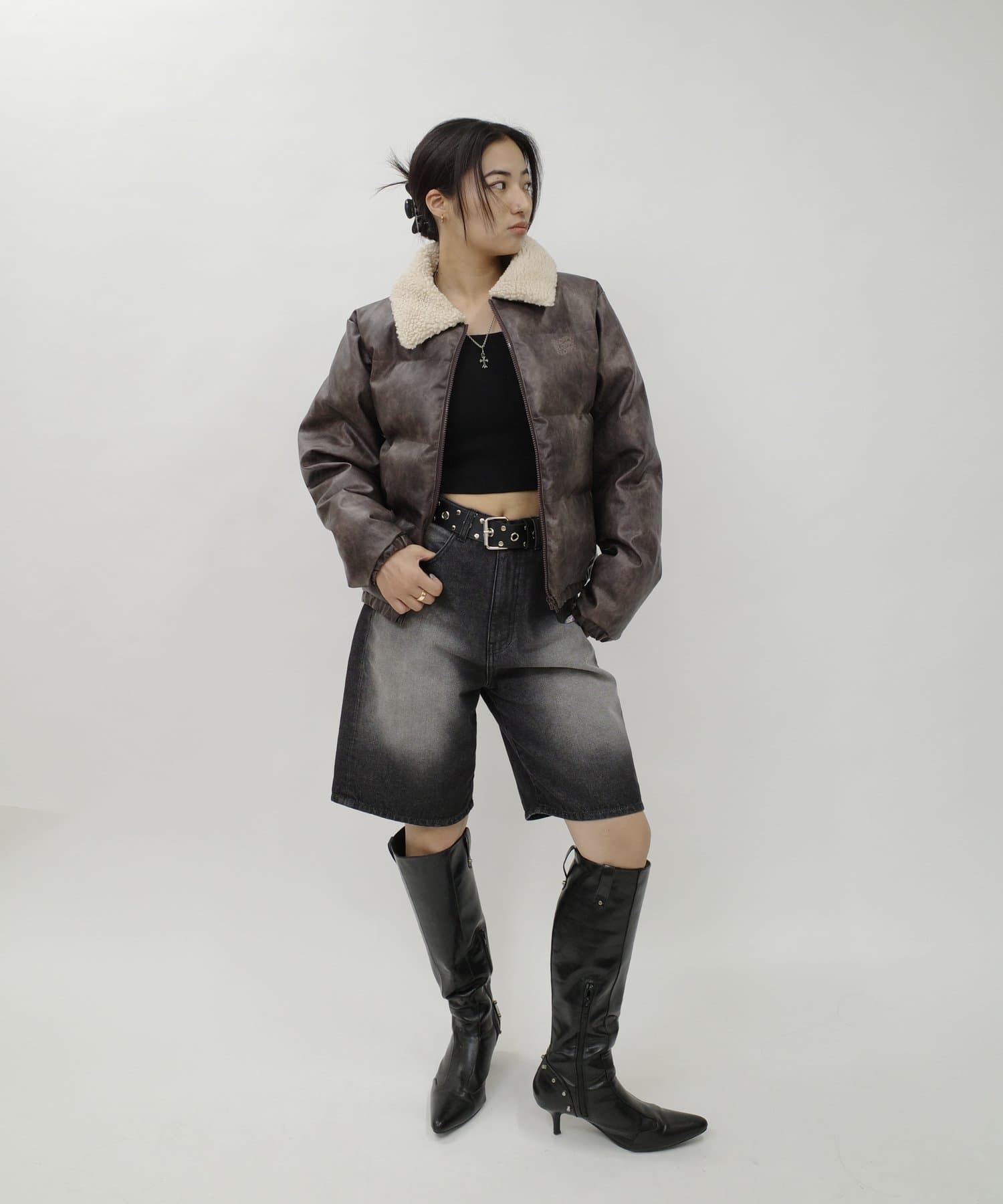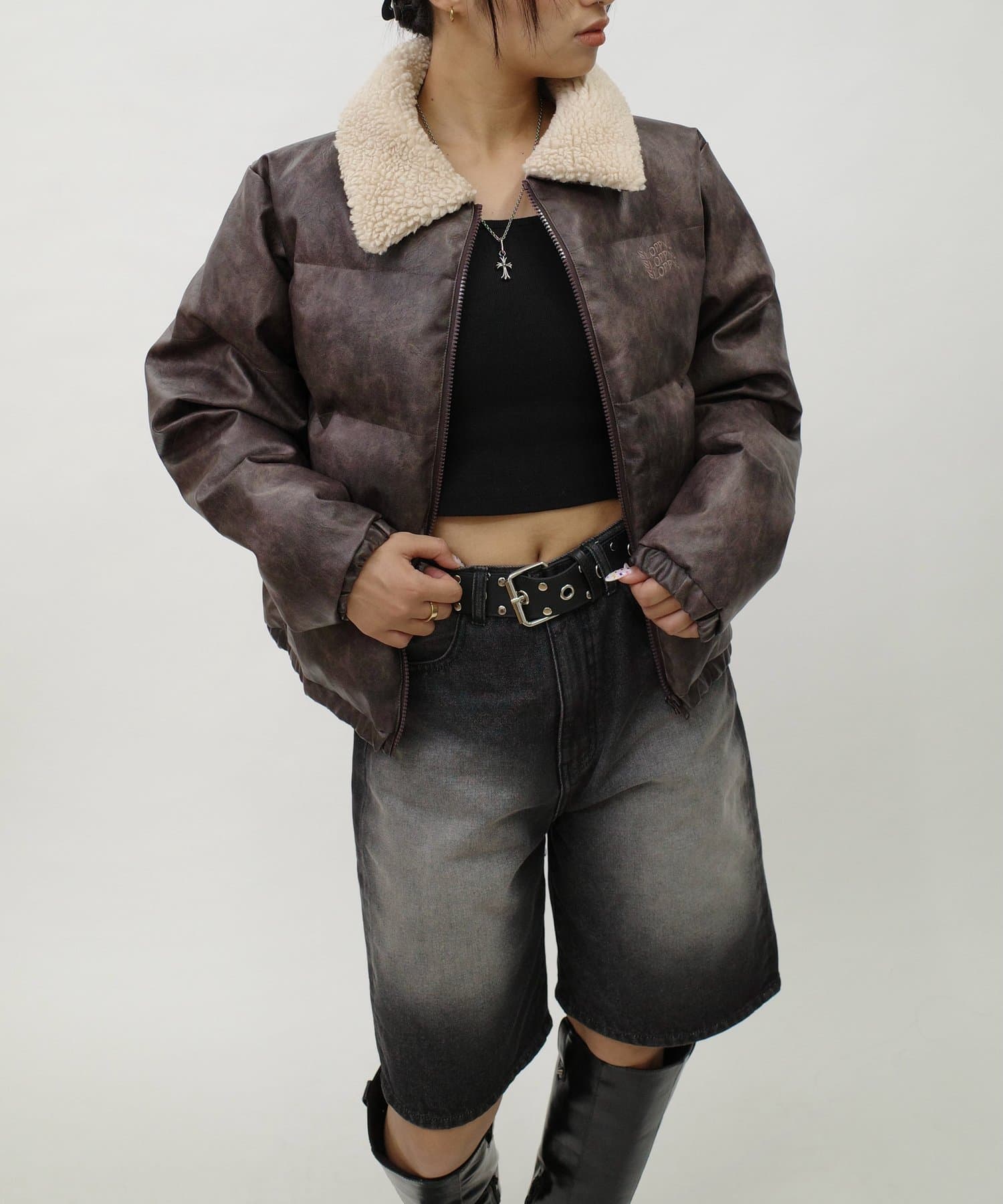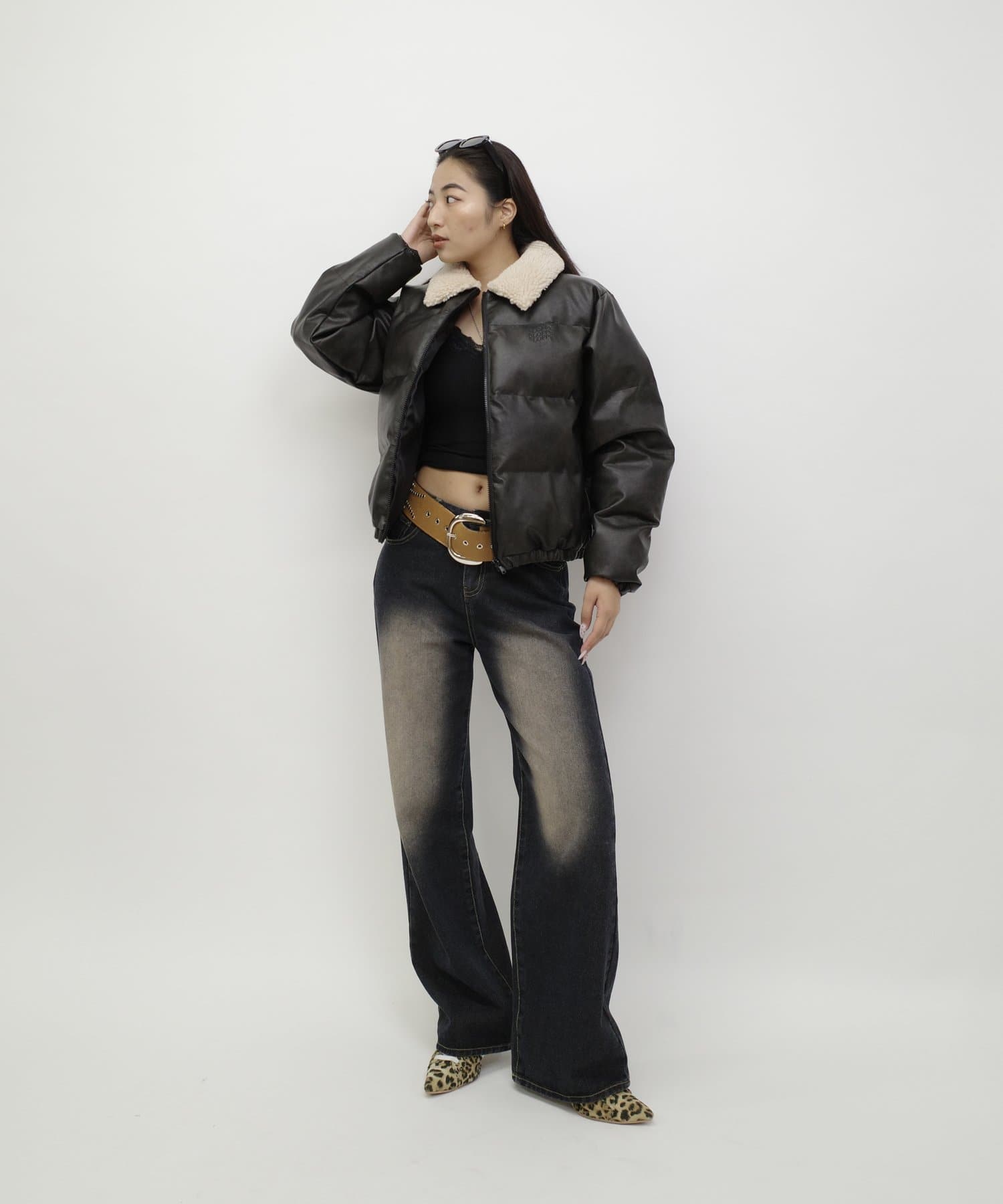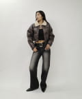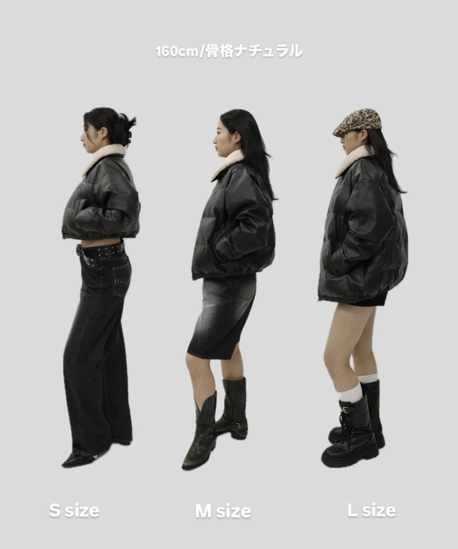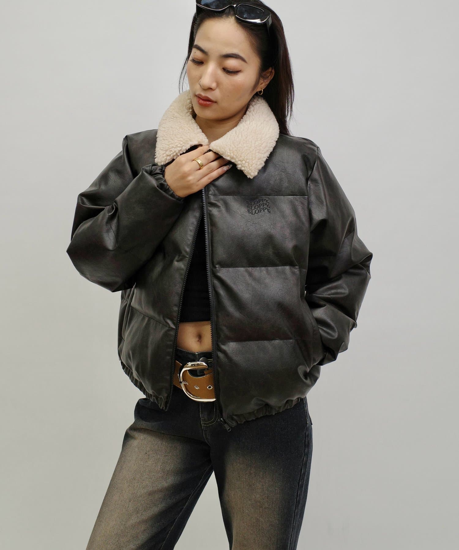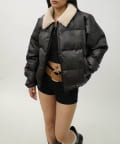 ・レザーのかっこよさと、ボアがあることによって可愛さもあるいいとこどりのブルゾン。