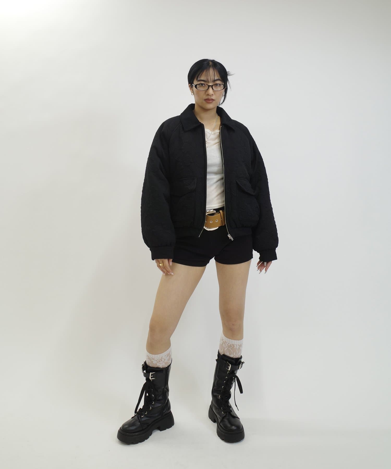 パイピングアソート柄(ヒョウ柄・バラモチーフ)ブルゾン