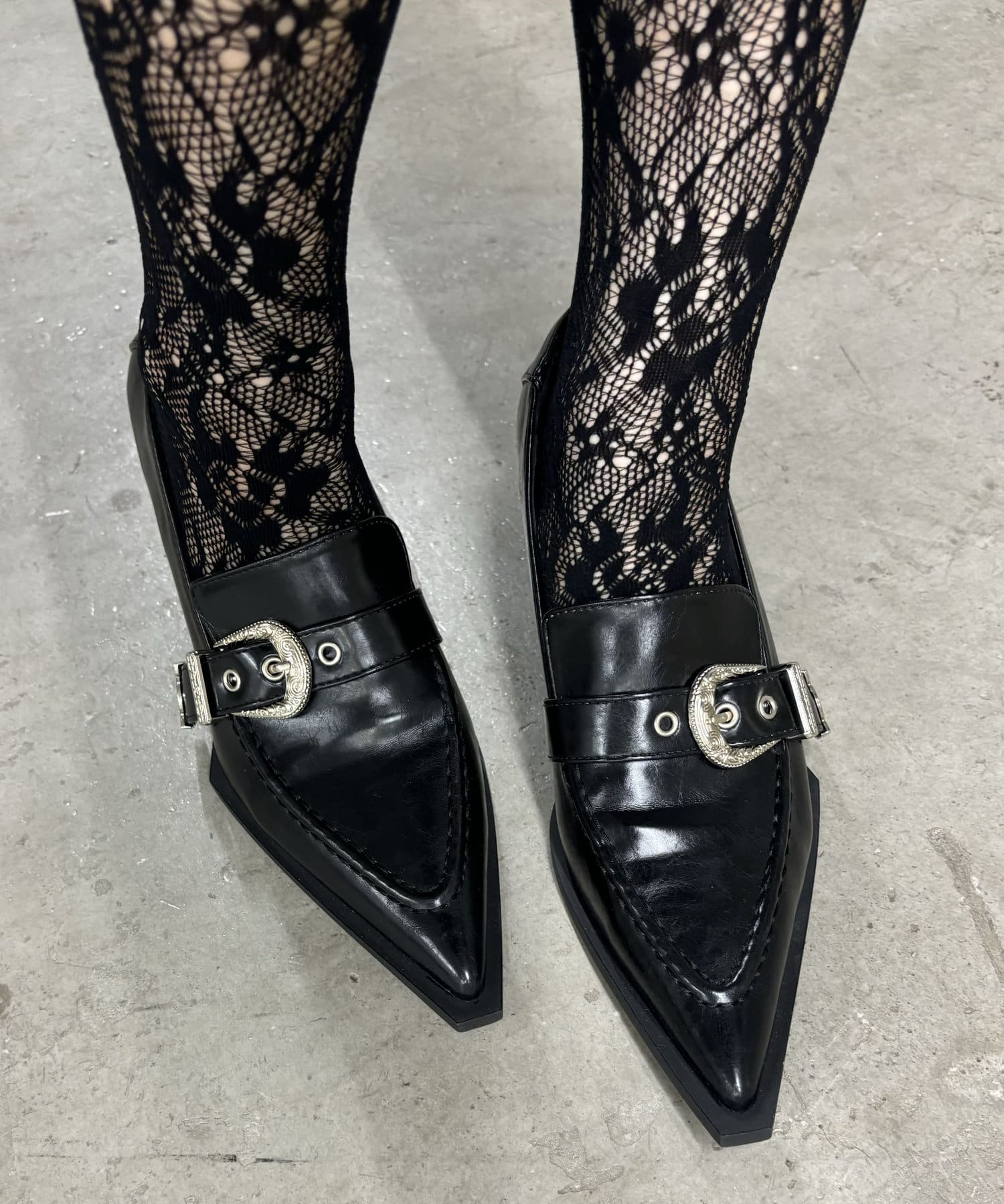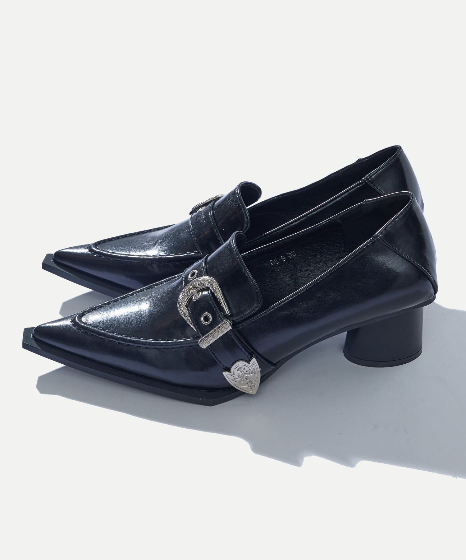 【HiNT/ヒント】ベルト付きポイントテッドトゥーローファー
