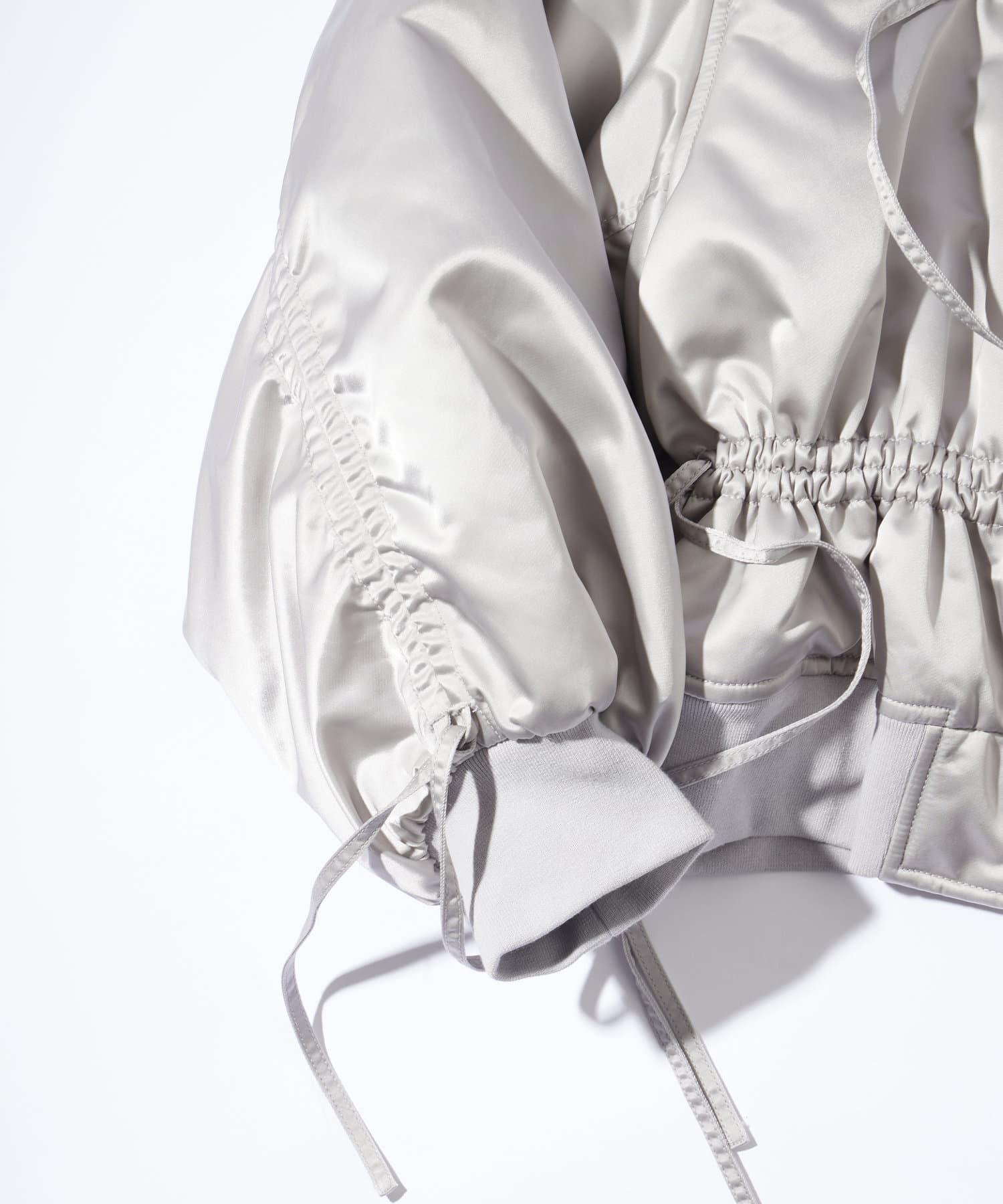 ・ボリュームのある袖はドロストの絞り具合で調節できるのでさらに、絞った時のくしゅっとした袖もキュート。
