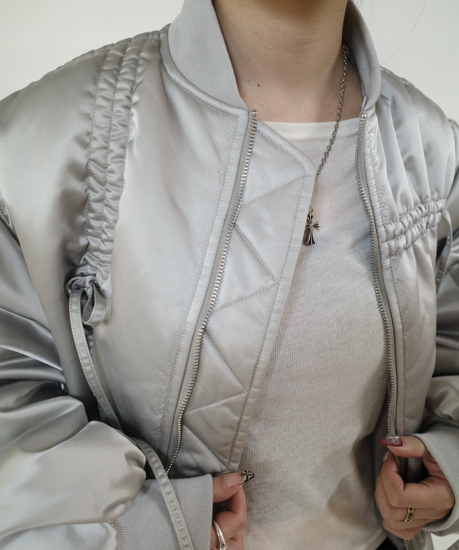 ・カジュアルになりがちなアウターが、シルバーカラーでかっこよくモードに着れるのもポイント。