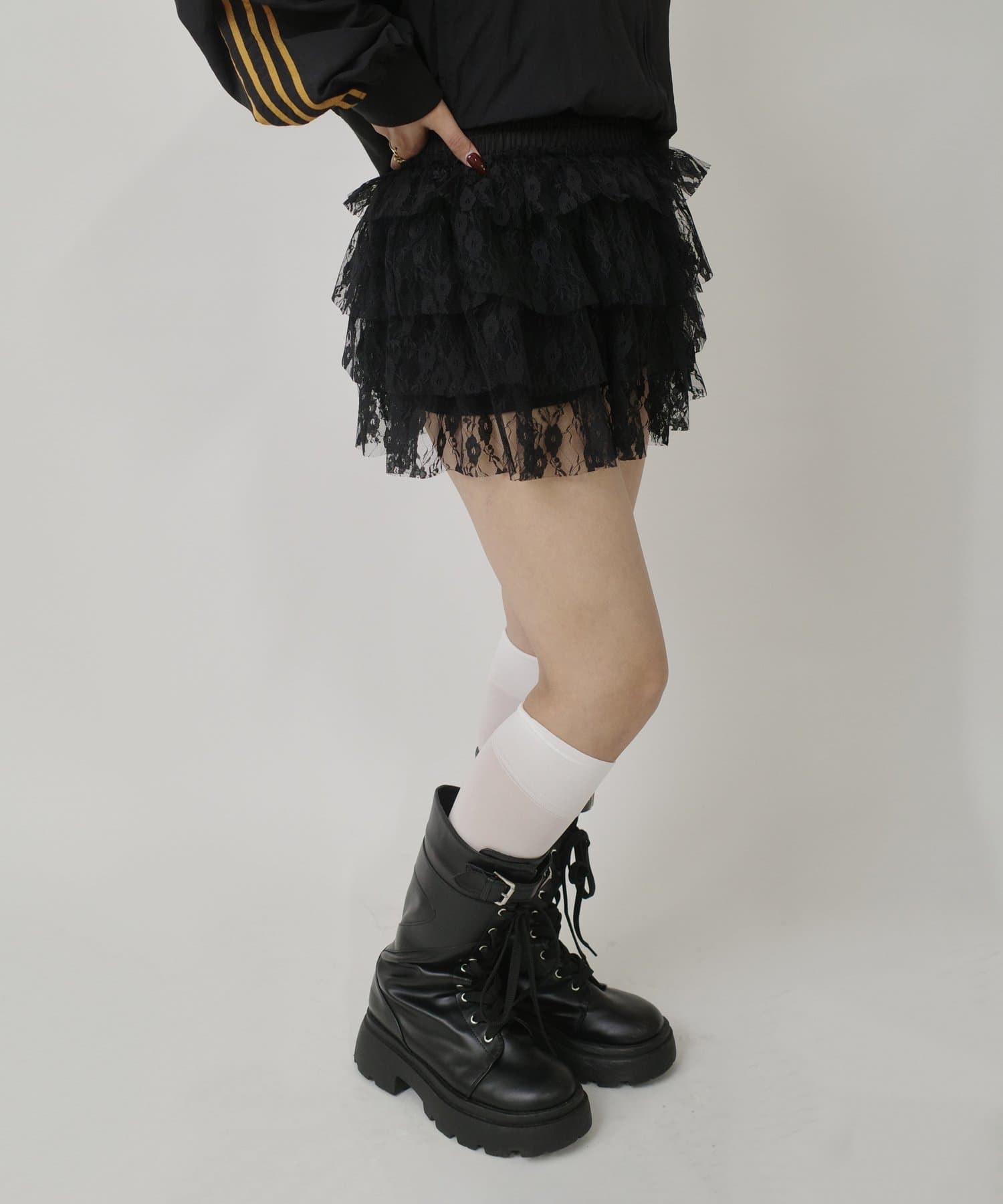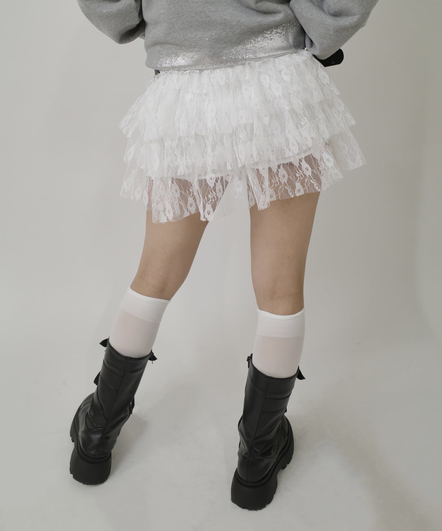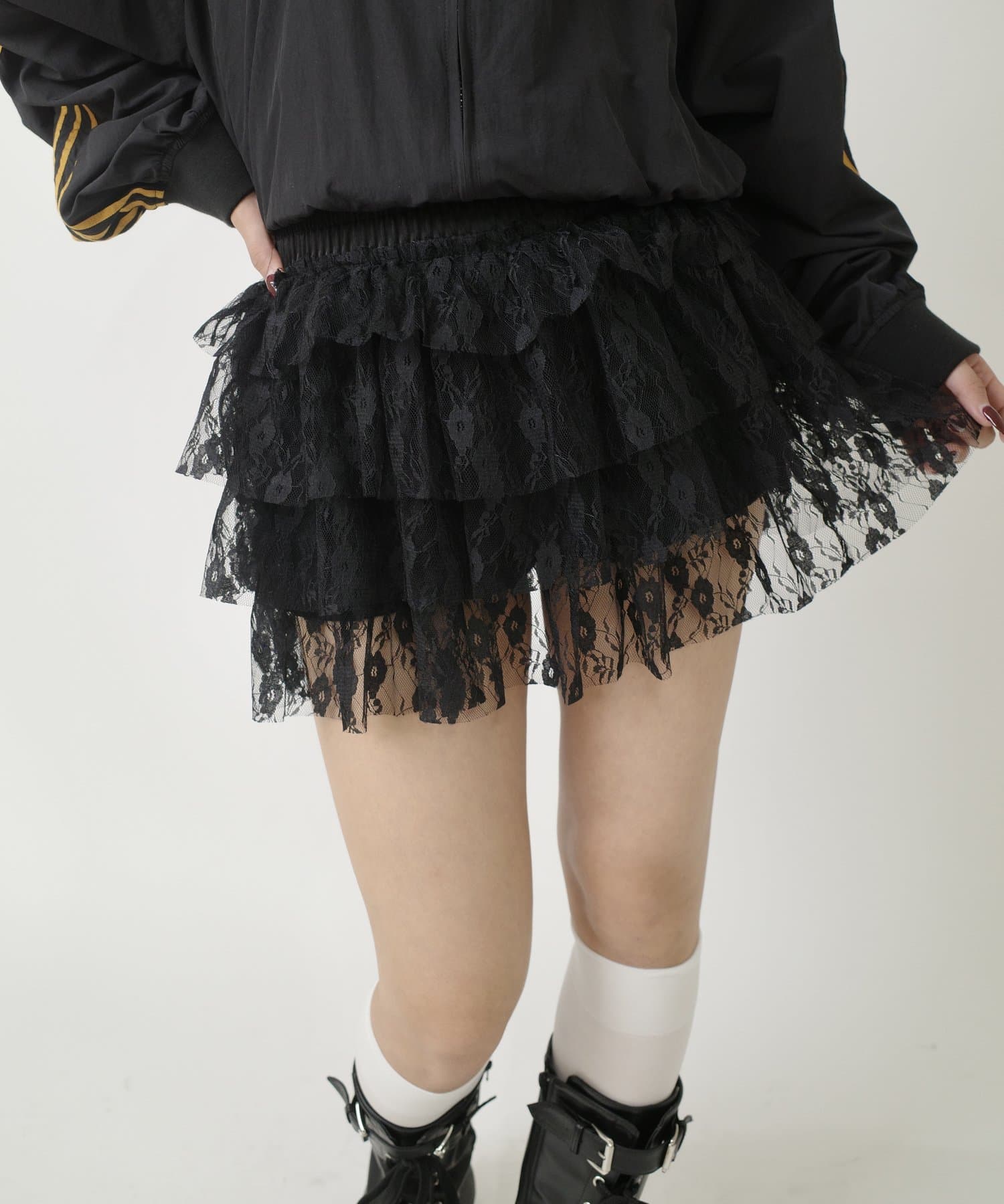 ・トレンドのレースを使った程よいボリューム感のあるミニスカート。