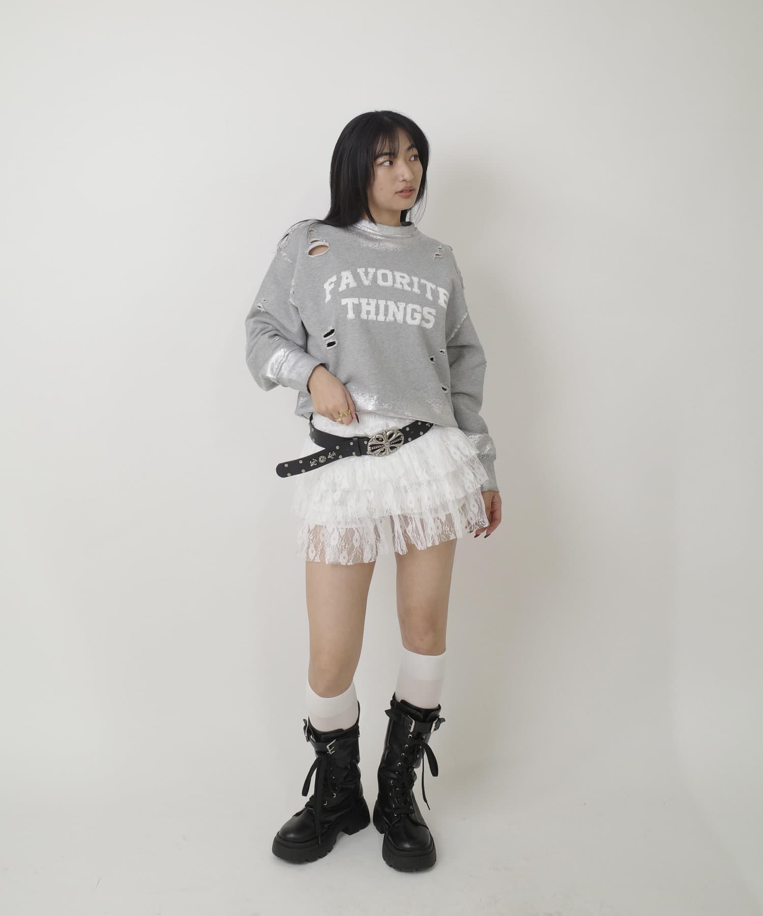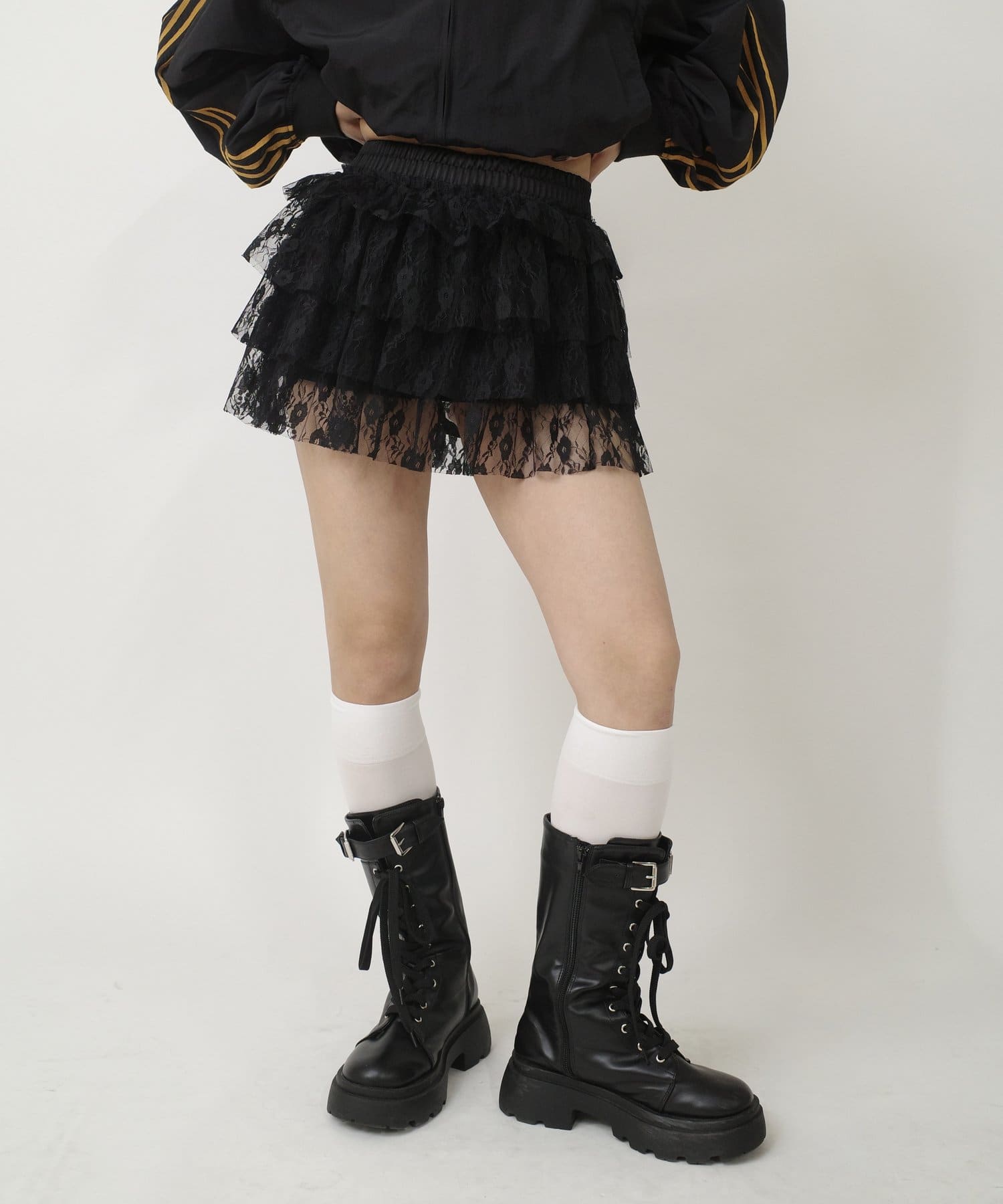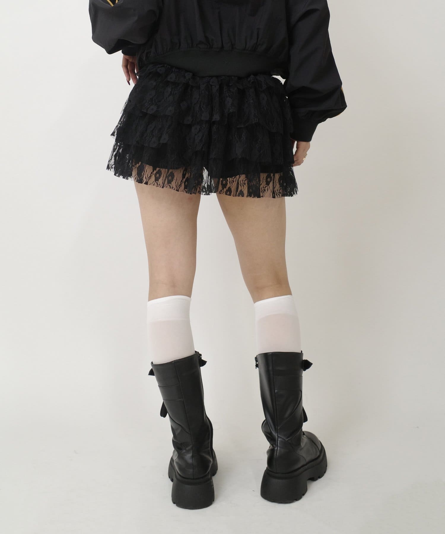 ・トレンドのレースを使った程よいボリューム感のあるミニスカート。