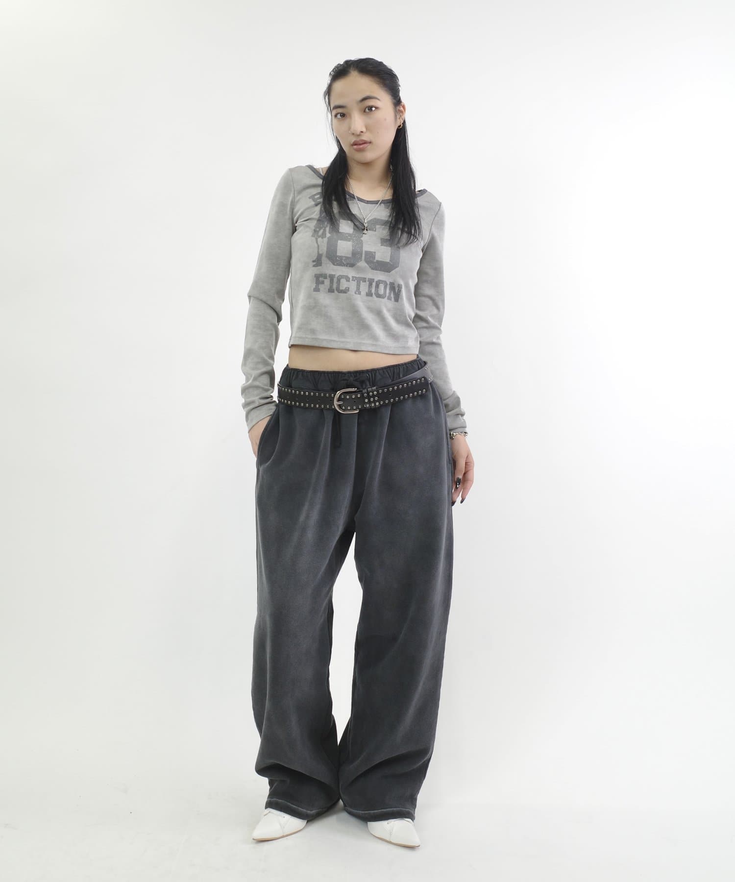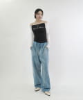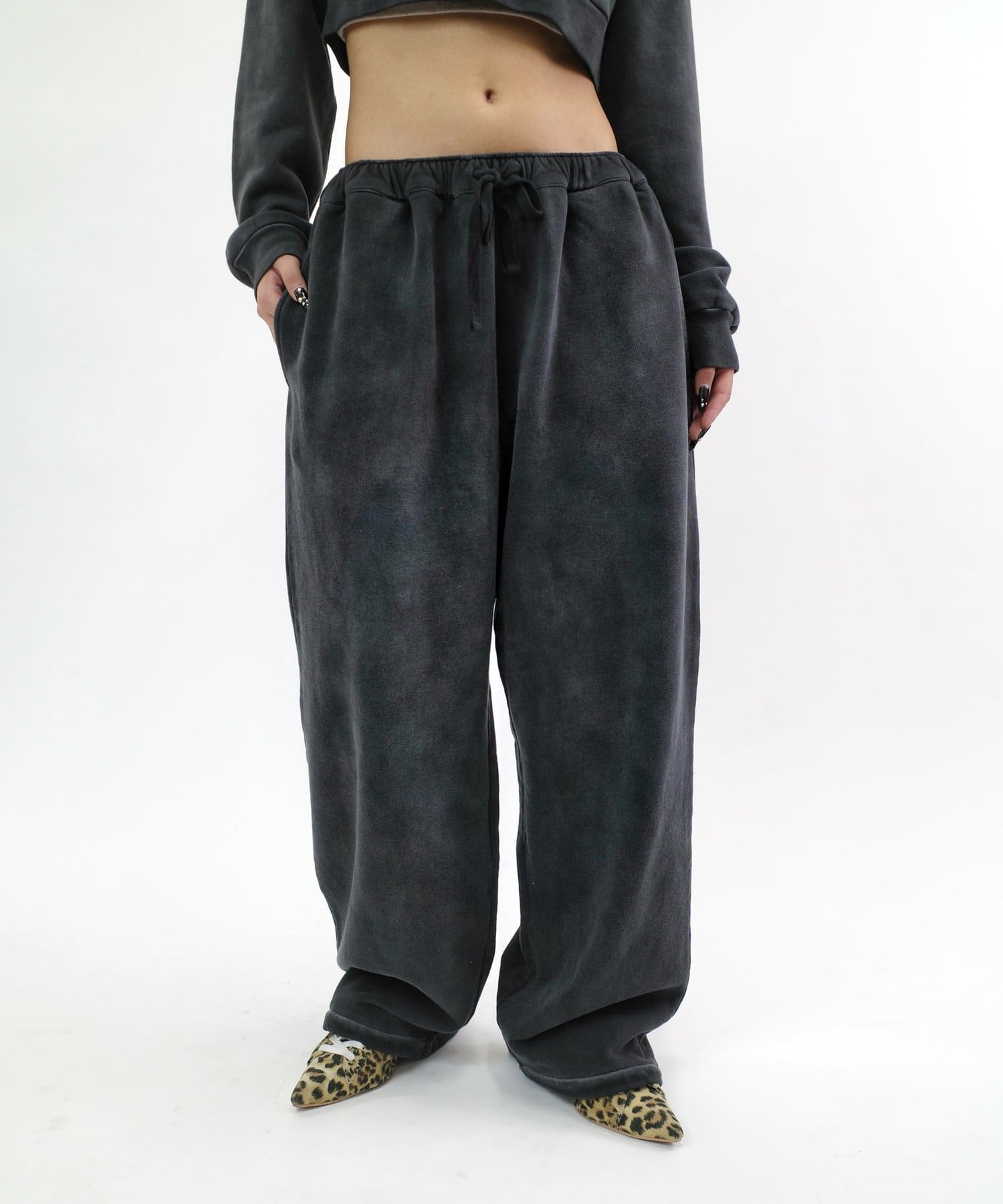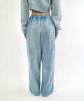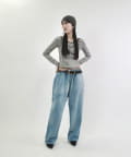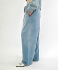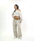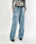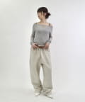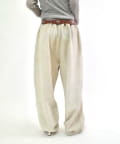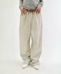 ・ワイドなシルエットで、裾は絞られていないのでストンと落ちた溜まり具合がポイントです。