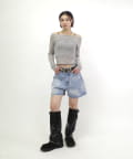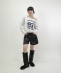 →スウェット、ニットの中でもワンショルになっているものと合わせると今年っぽくてより可愛いスタイルになります。