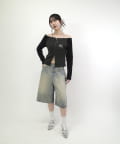 →トレンドのヴィンテージ感のあるワイドデニムに、コンパクトトップスでバランスが良くスタイルアップにもなります。