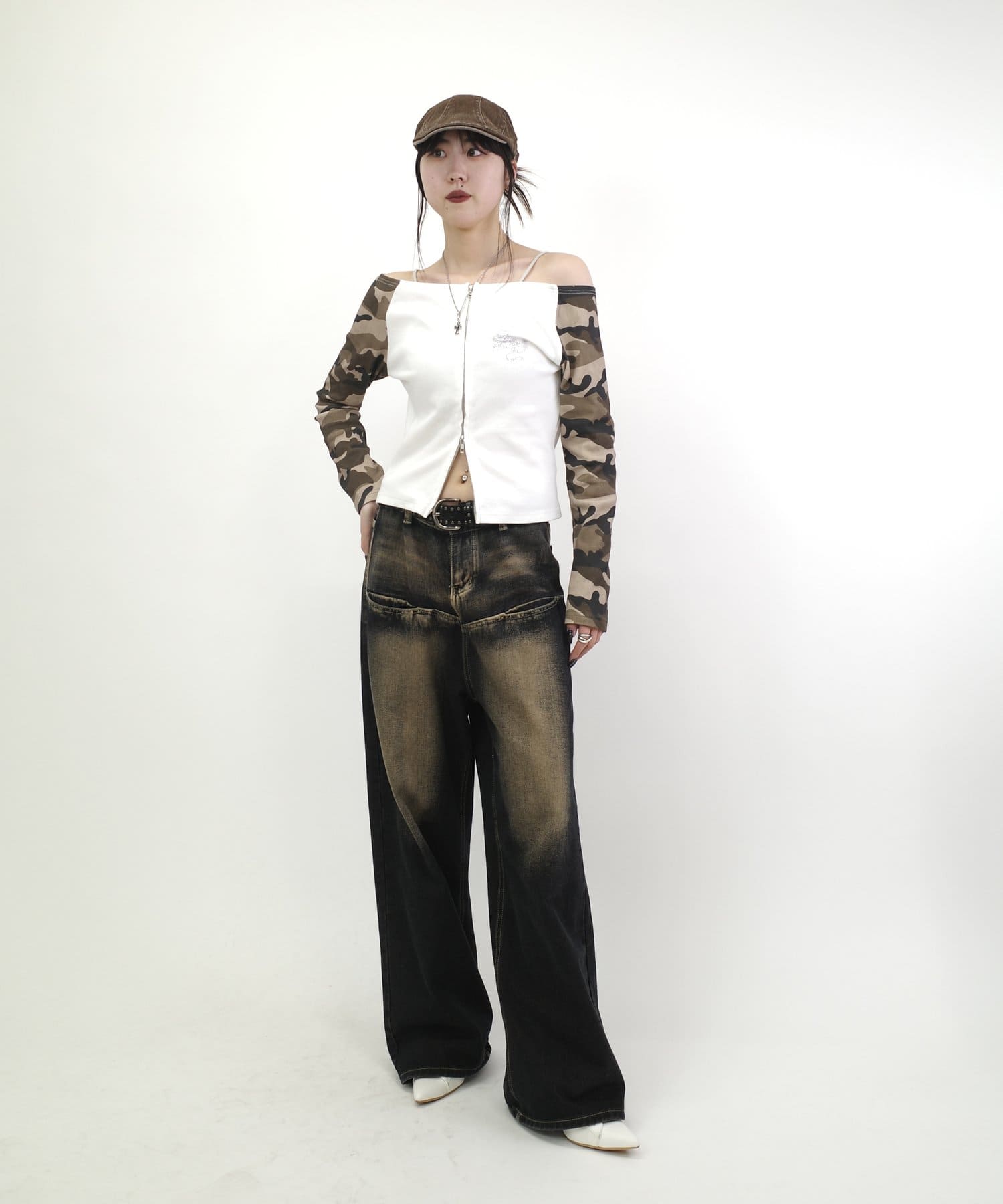 • 167cm/骨格ナチュラルPT/スラッシュポケットブラストワイドデニム