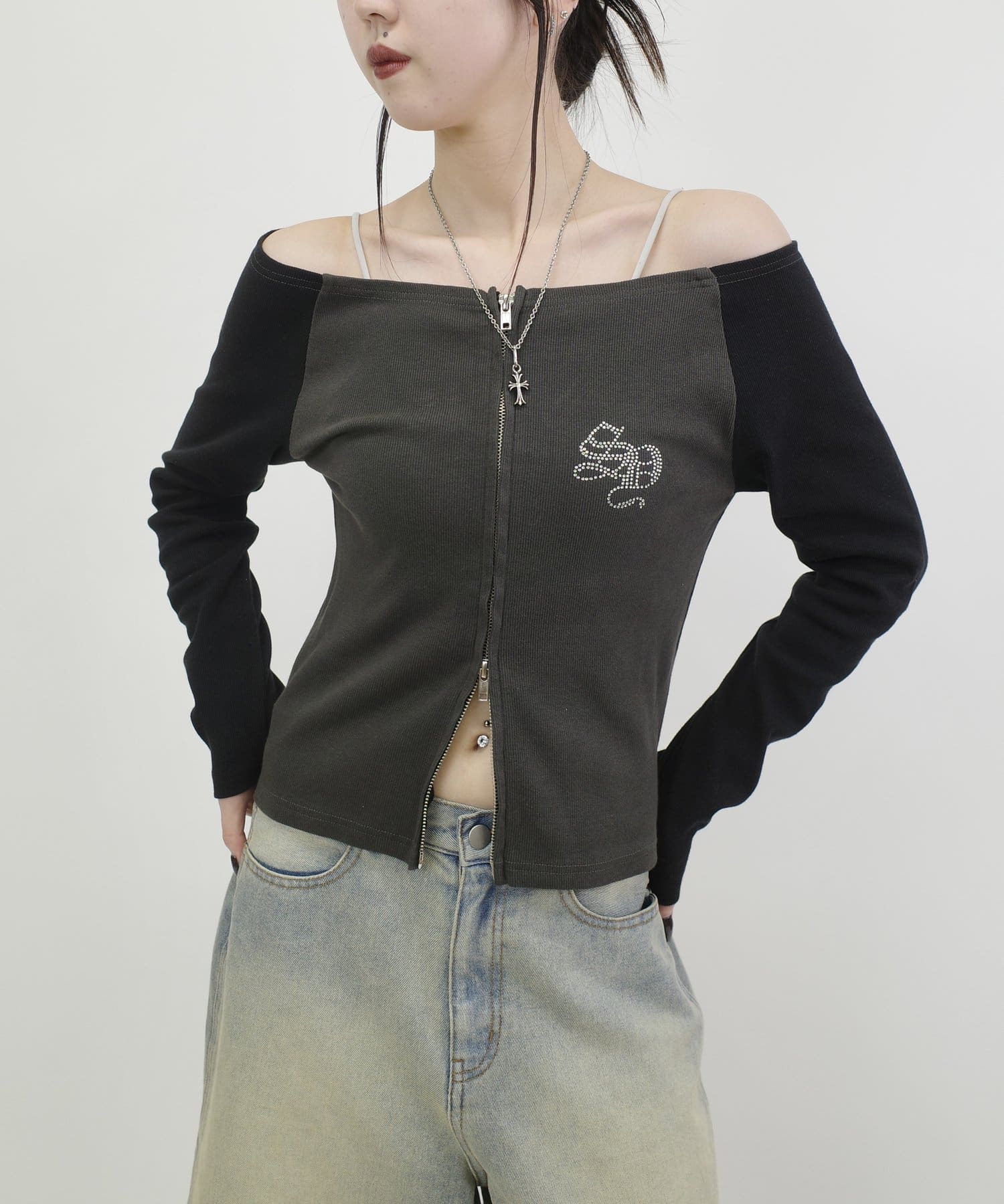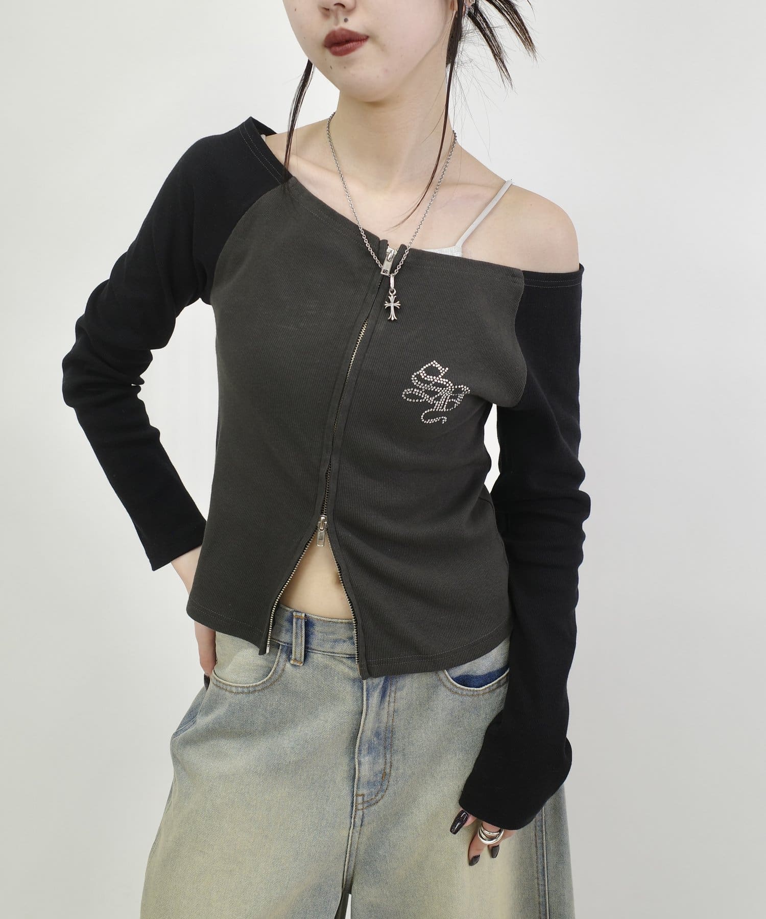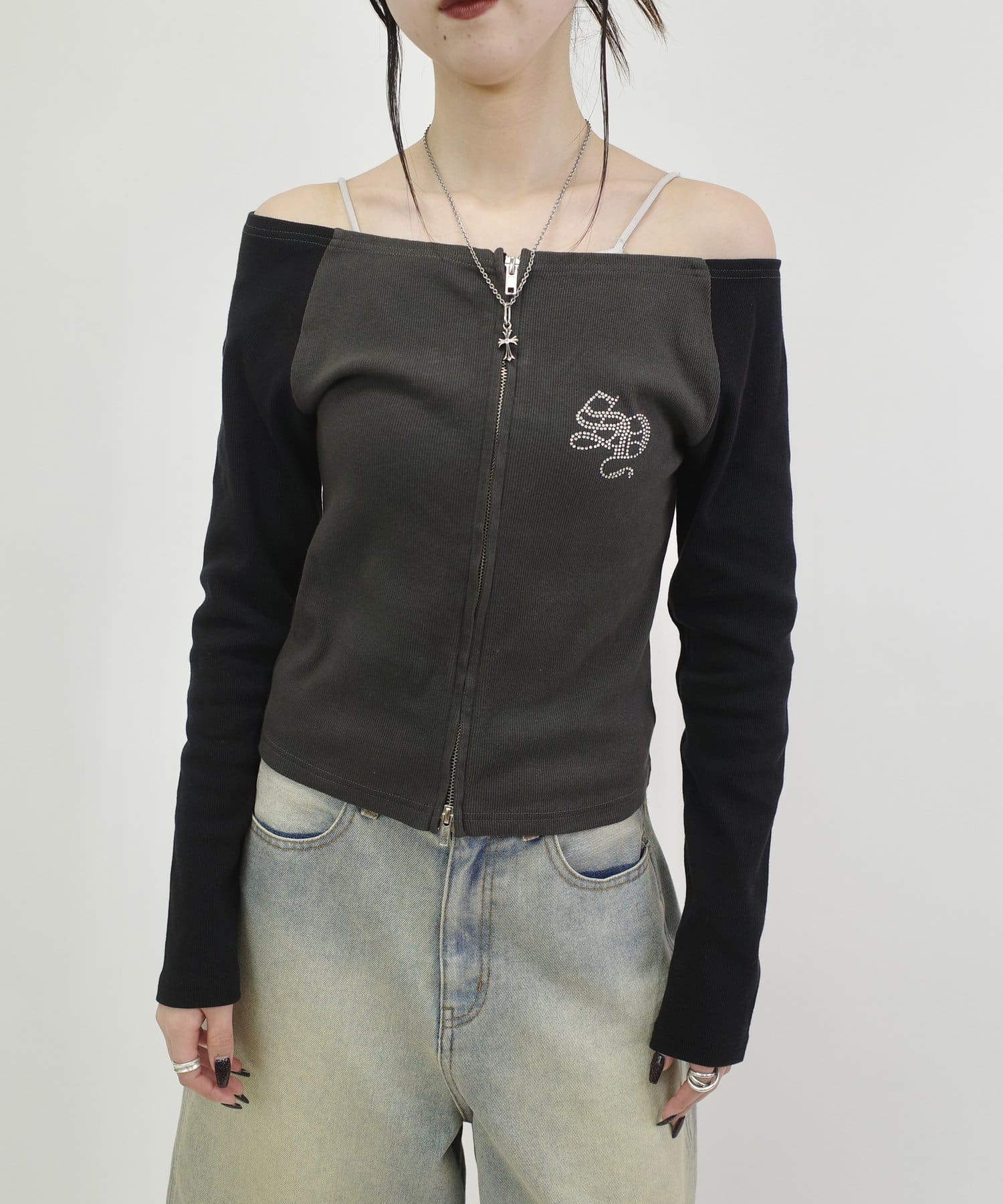 【SLOPPY/スロッピー】ラインストーンリブジップワンオフショル