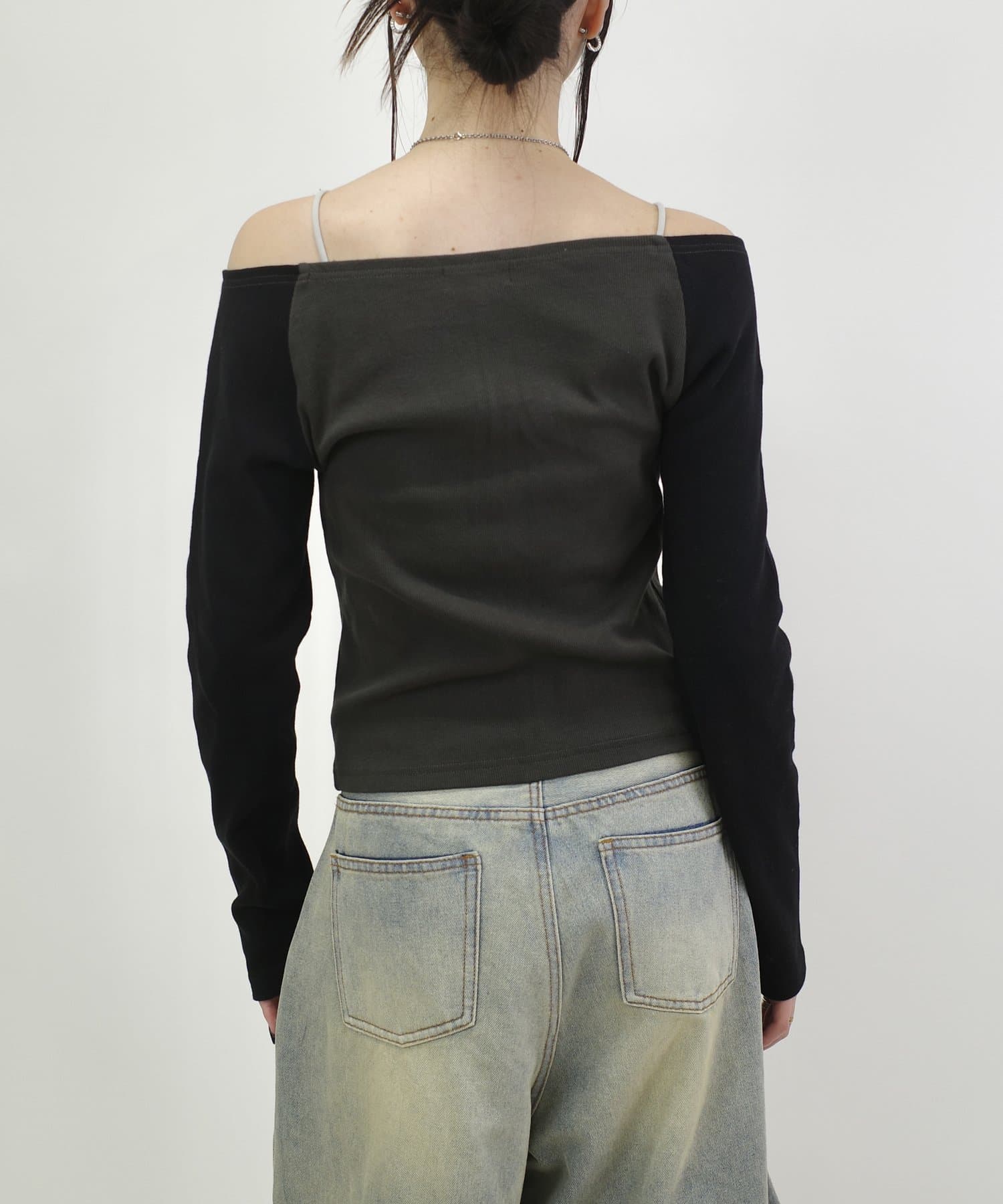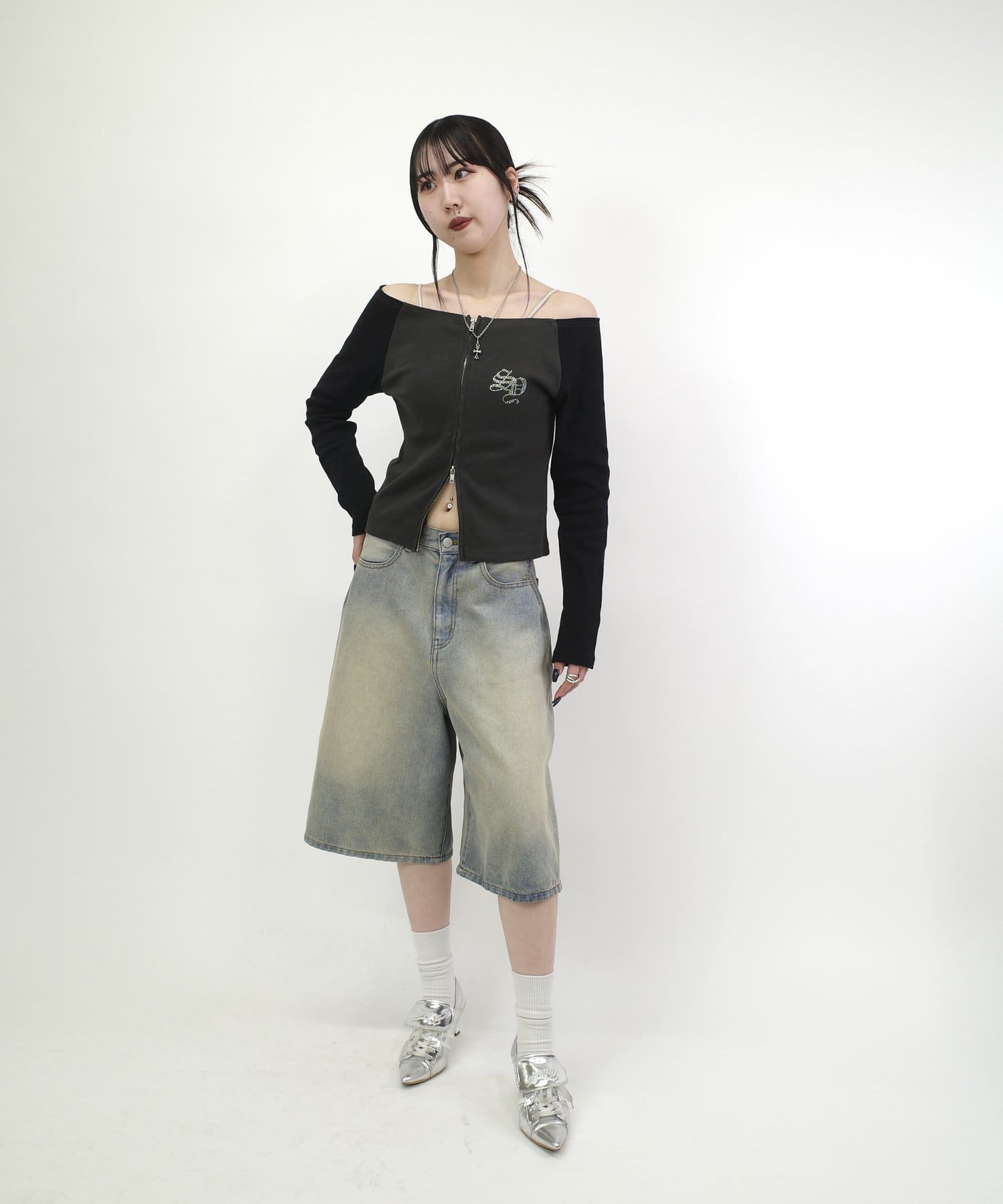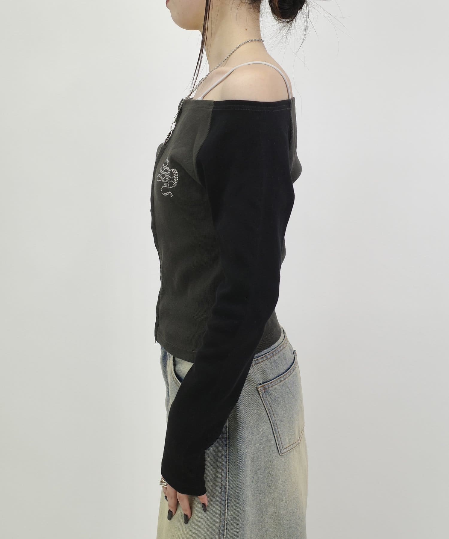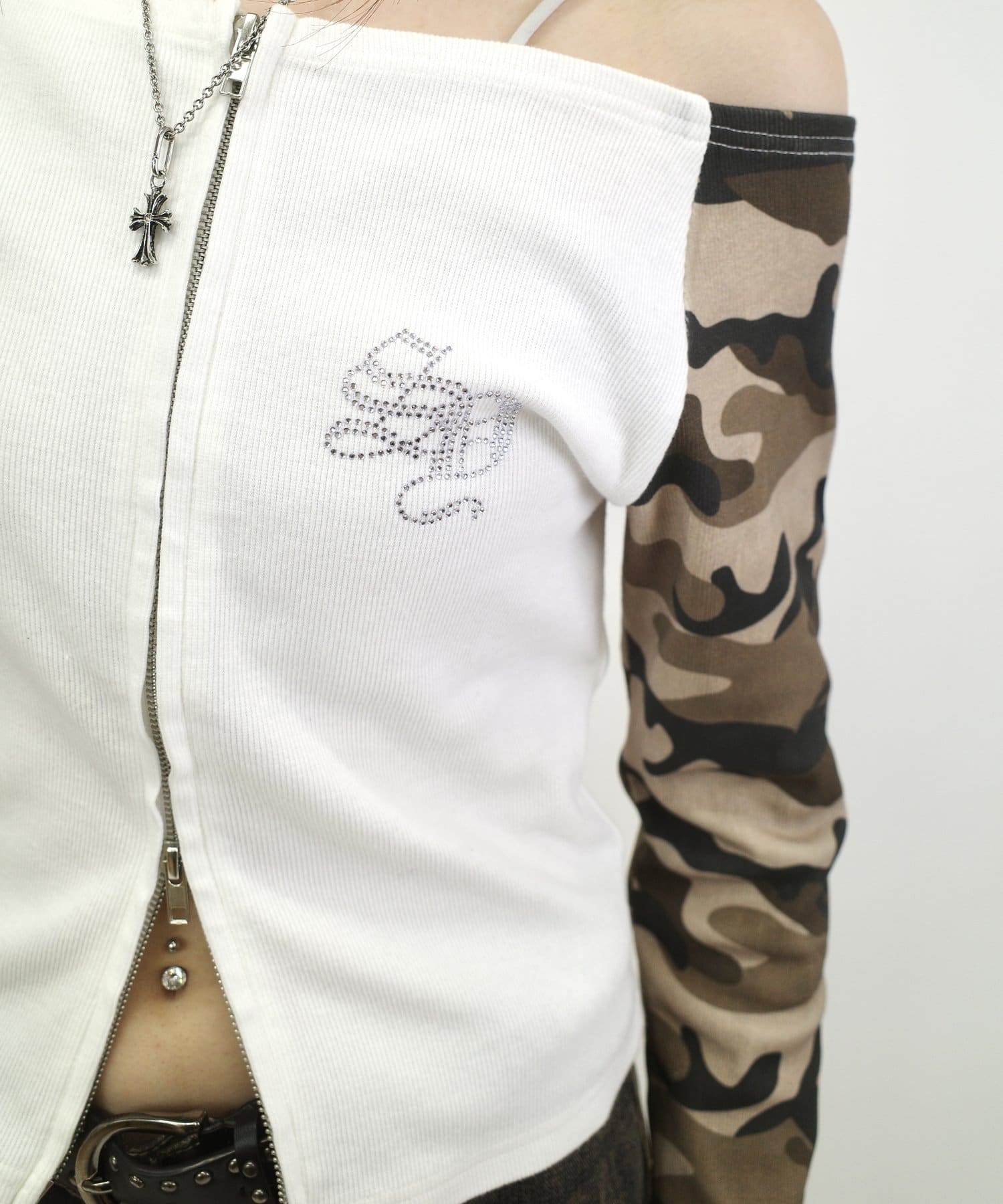 【SLOPPY/スロッピー】ラインストーンリブジップワンオフショル