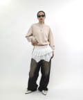 ホワイトはシンプルなので、加工感のあるワイドデニムでストリートスタイルで合わせると、カッコ良く着こなせます。