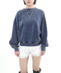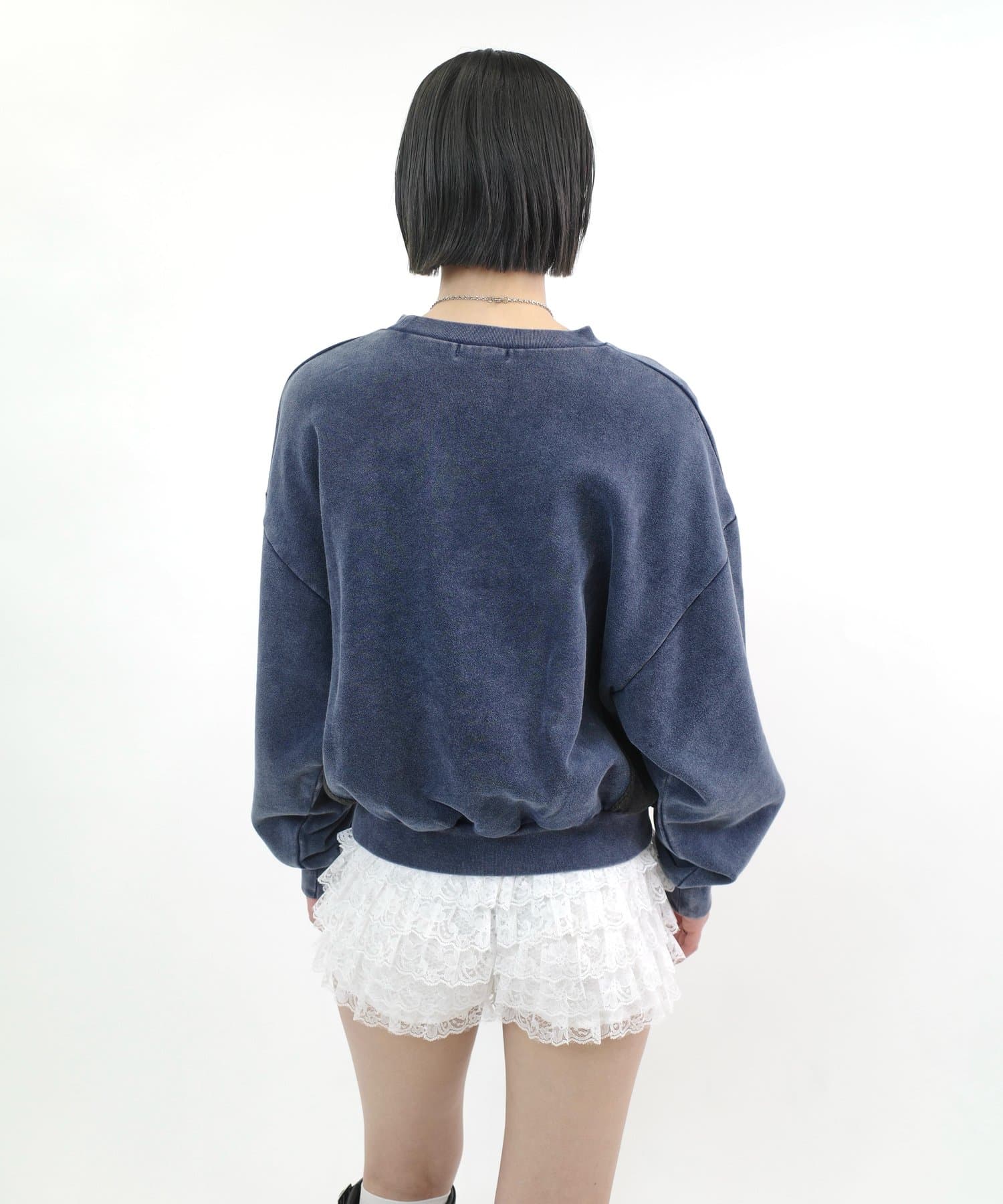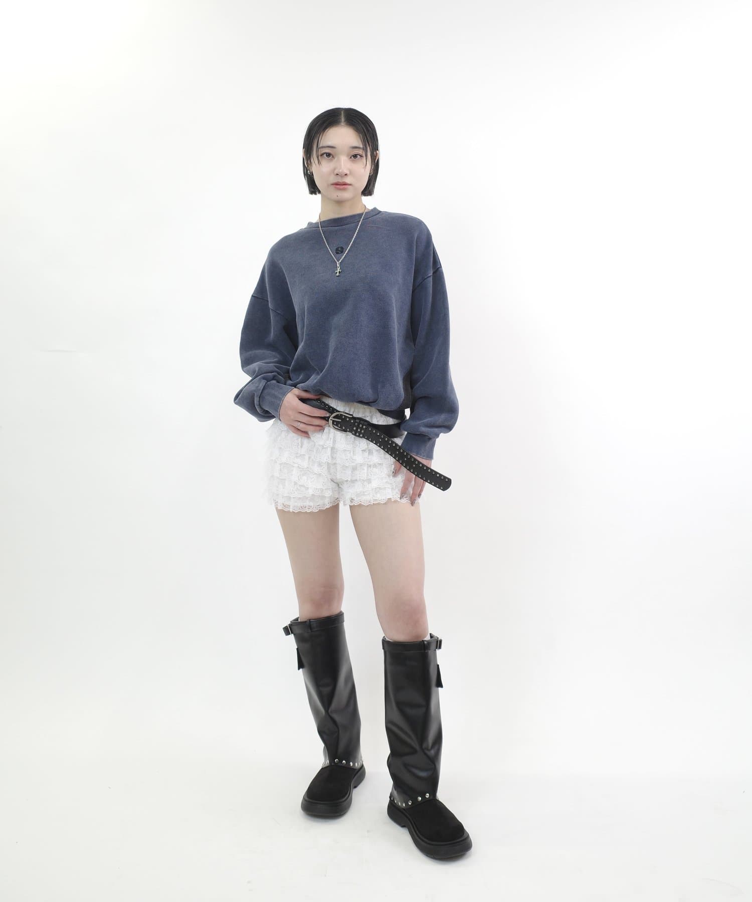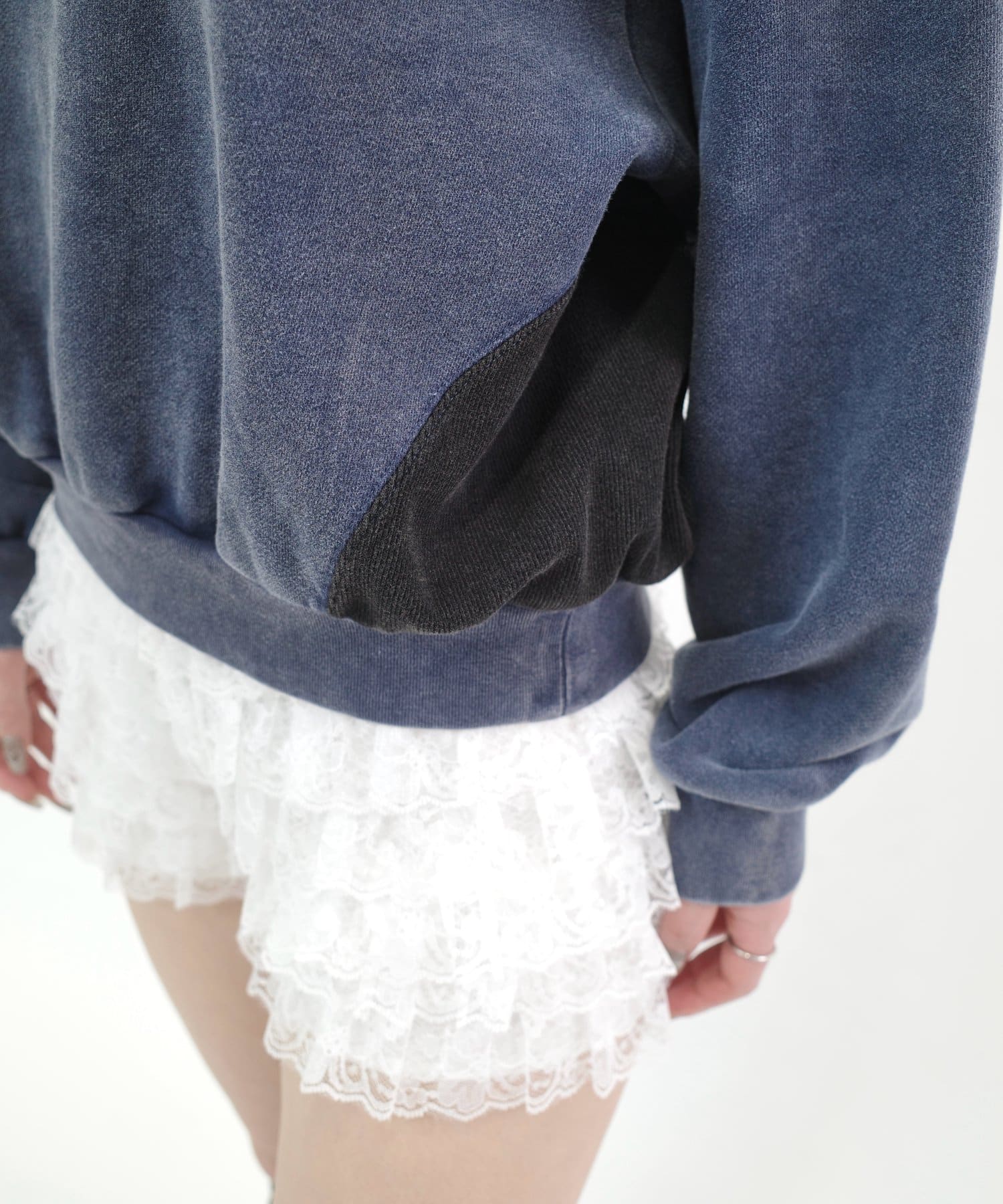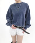 ネイビーはヴィンテージ加工がわかりやすいので、ミニ丈ボトムで甘辛ミックススタイルがオススメ。