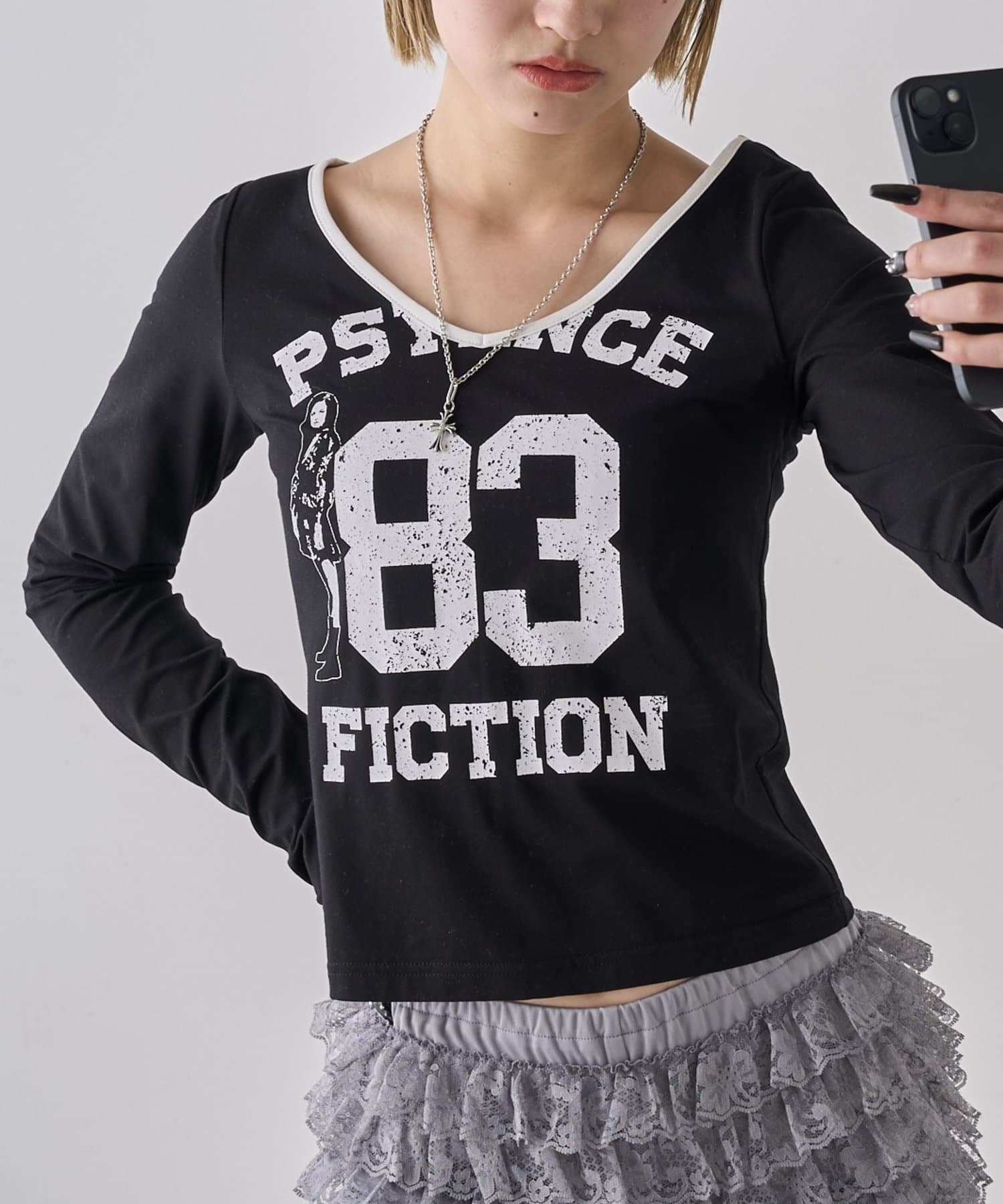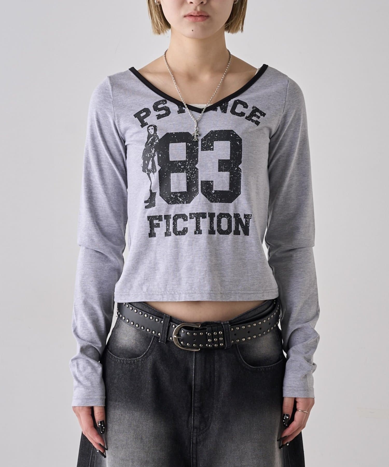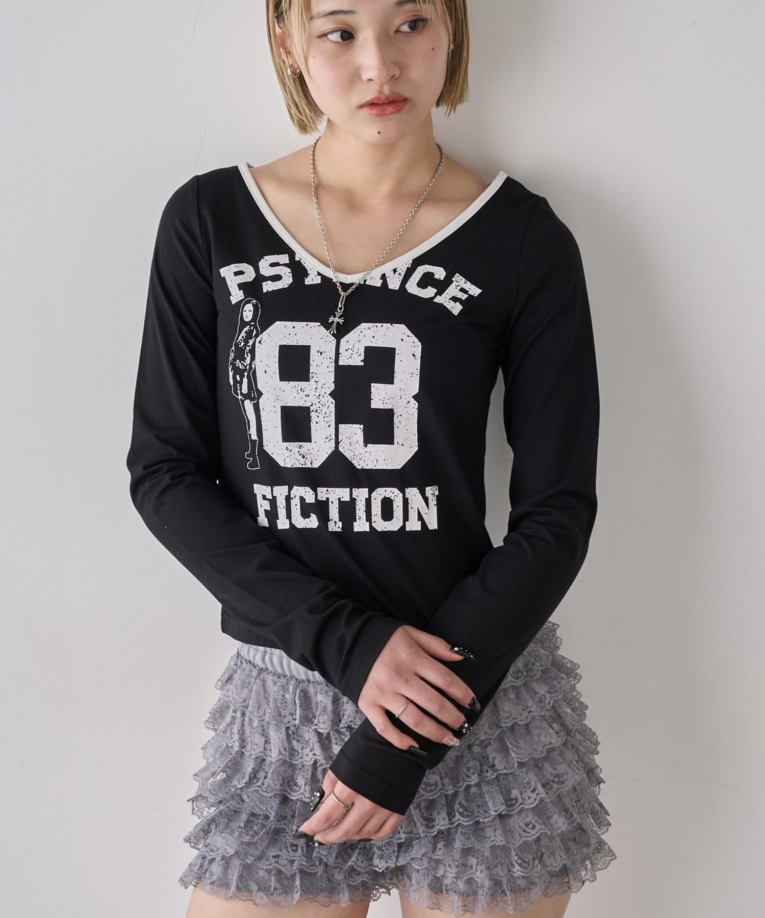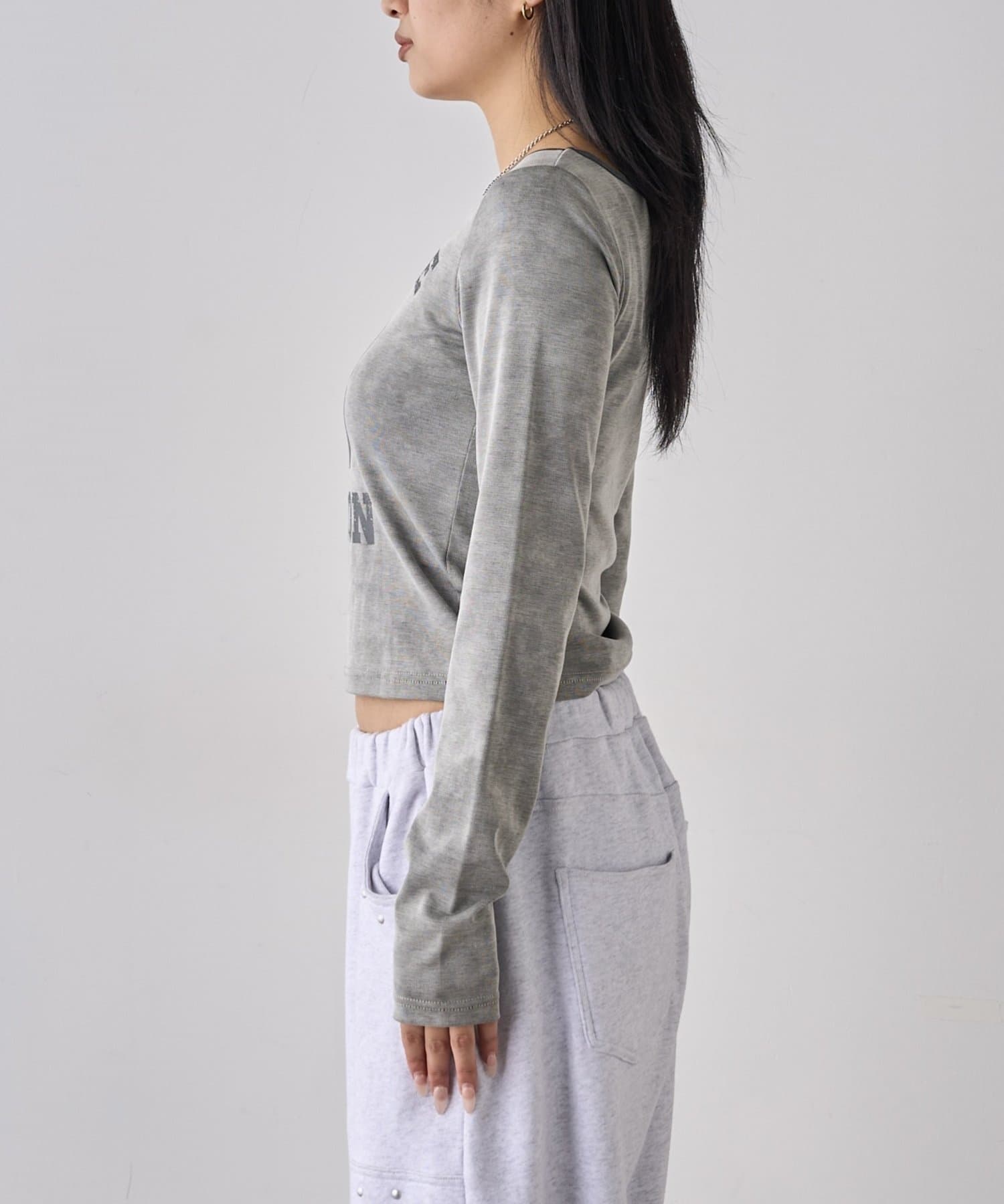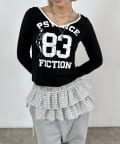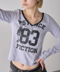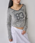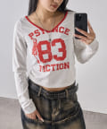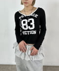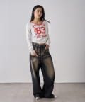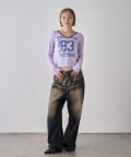 ・フロントのナンバリングと女の子モチーフがアメカジな雰囲気のあるトップス。