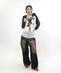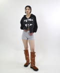 →ゆったりなジップパーカーなので、ミニ丈ボトムで女の子らしく【ゆったり×ミニ丈】でスタイルアップも叶います。