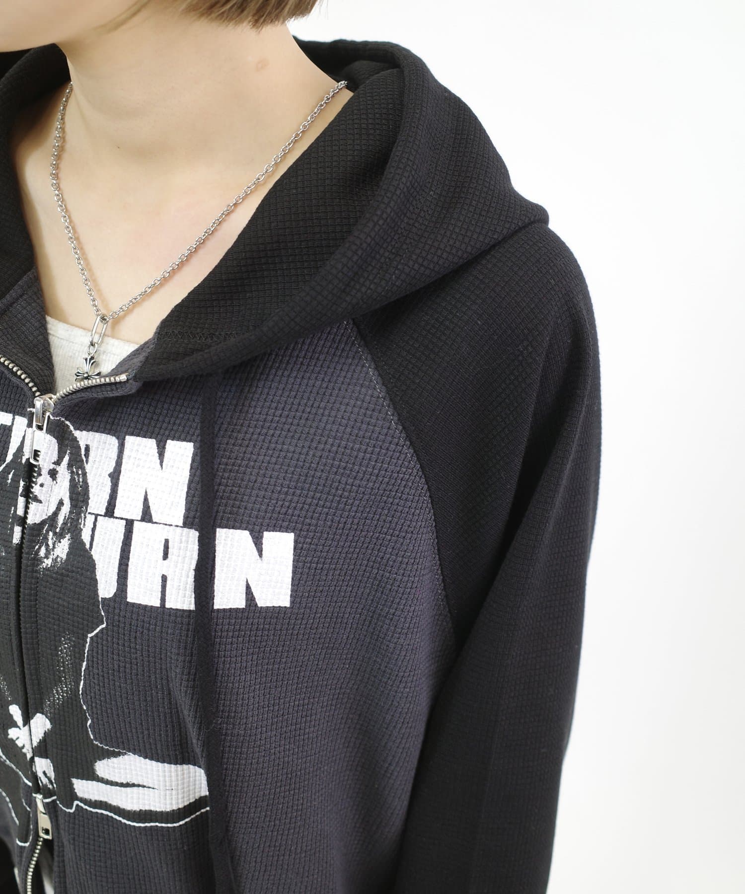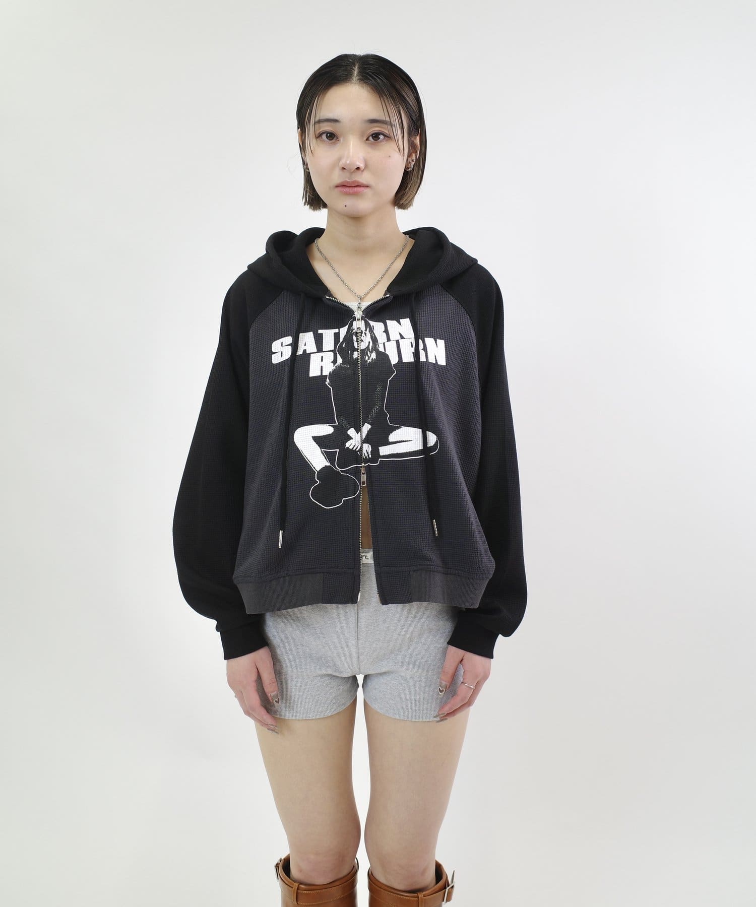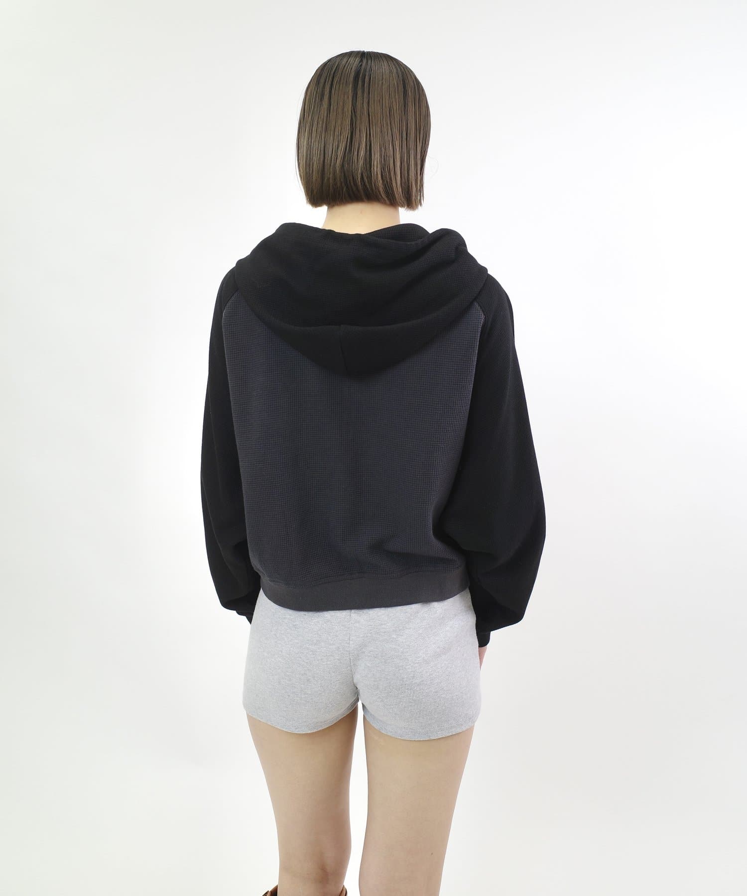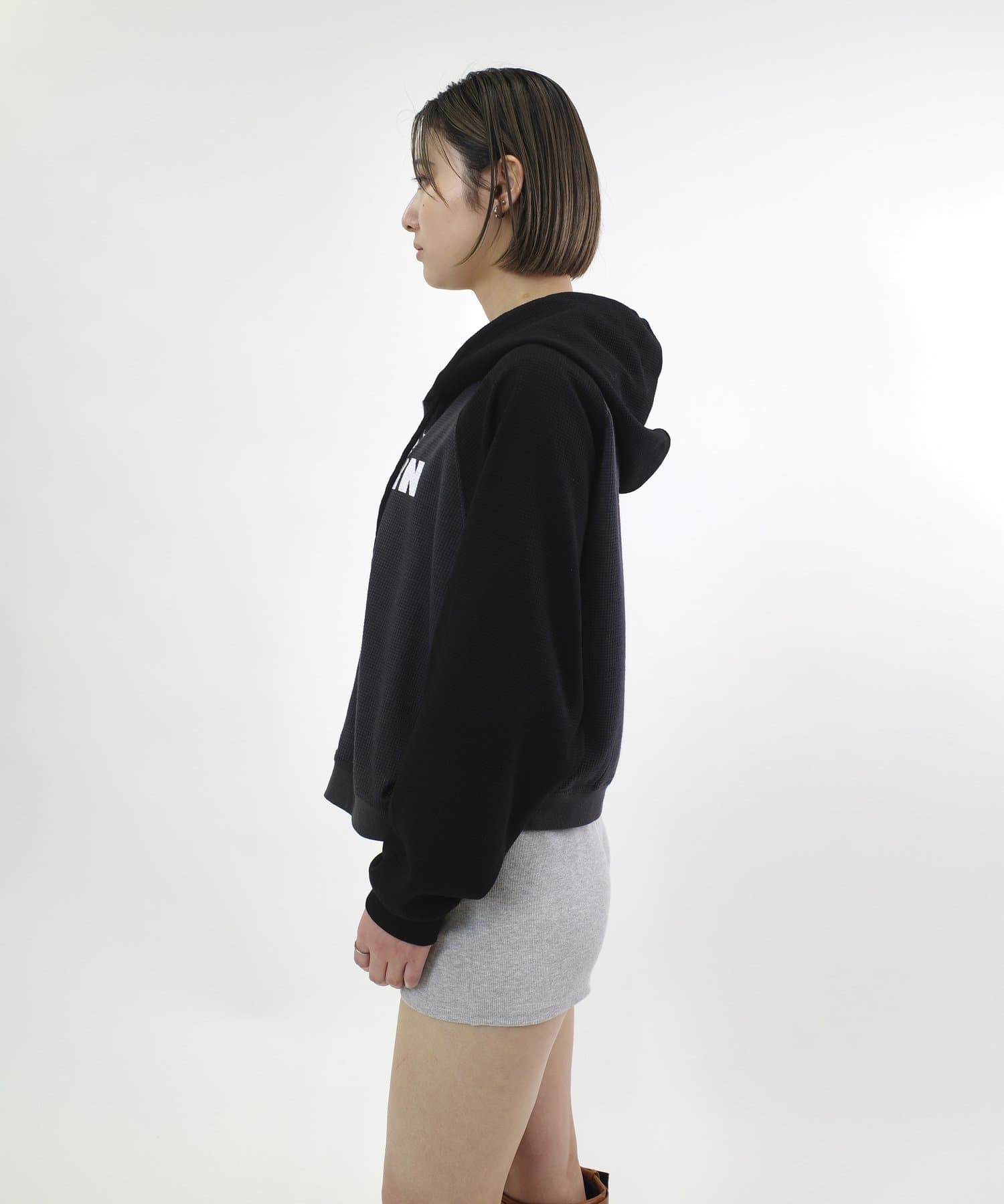 ショート丈が可愛いしダブルジップなのがより可愛いです。ワッフルのような生地なのも着やすいポイントです。