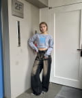 太めのデニムパンツと合わせてスタイルアップコーデに!