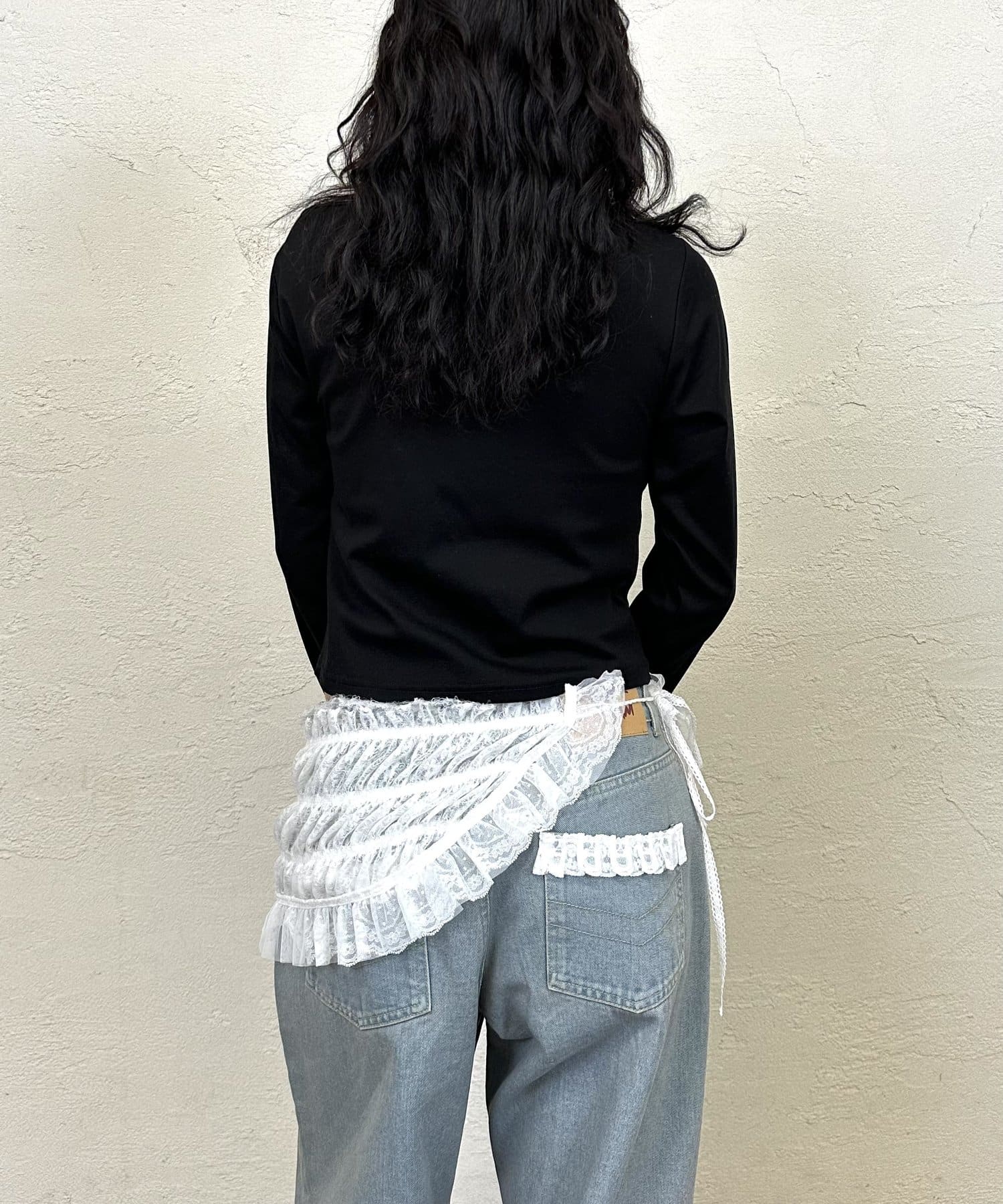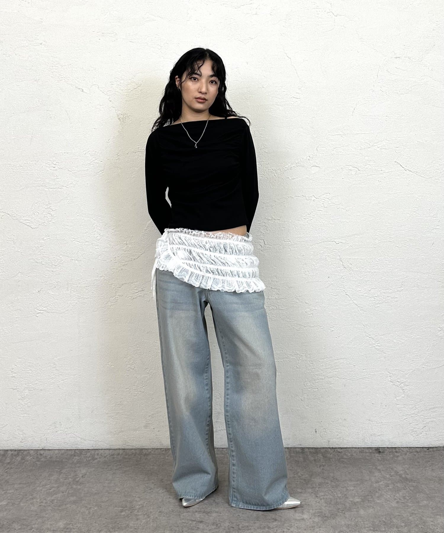 167cm/骨格ナチュラルPN/スラッシュポケットブラストワイドデニム/レーシーラップベルト