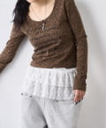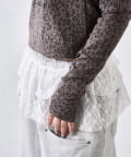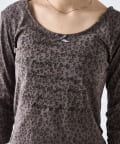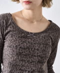 ・レオパード柄とフロントのメッセージプリントが特徴的なトップス。