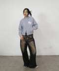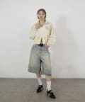 →ジャスト丈なのでデニムパンツと合わせてもスタイルアップして着て頂けます。ですが、身幅は広めで袖にボリューム感もあるので全体的にはゆるっとしたカジュアルなスタイルになります。