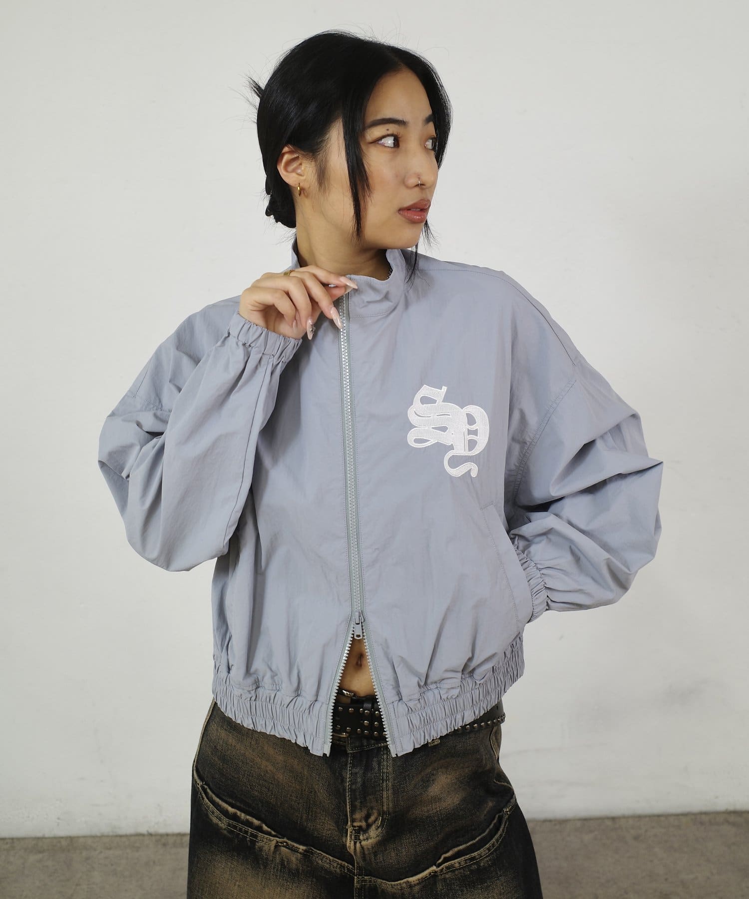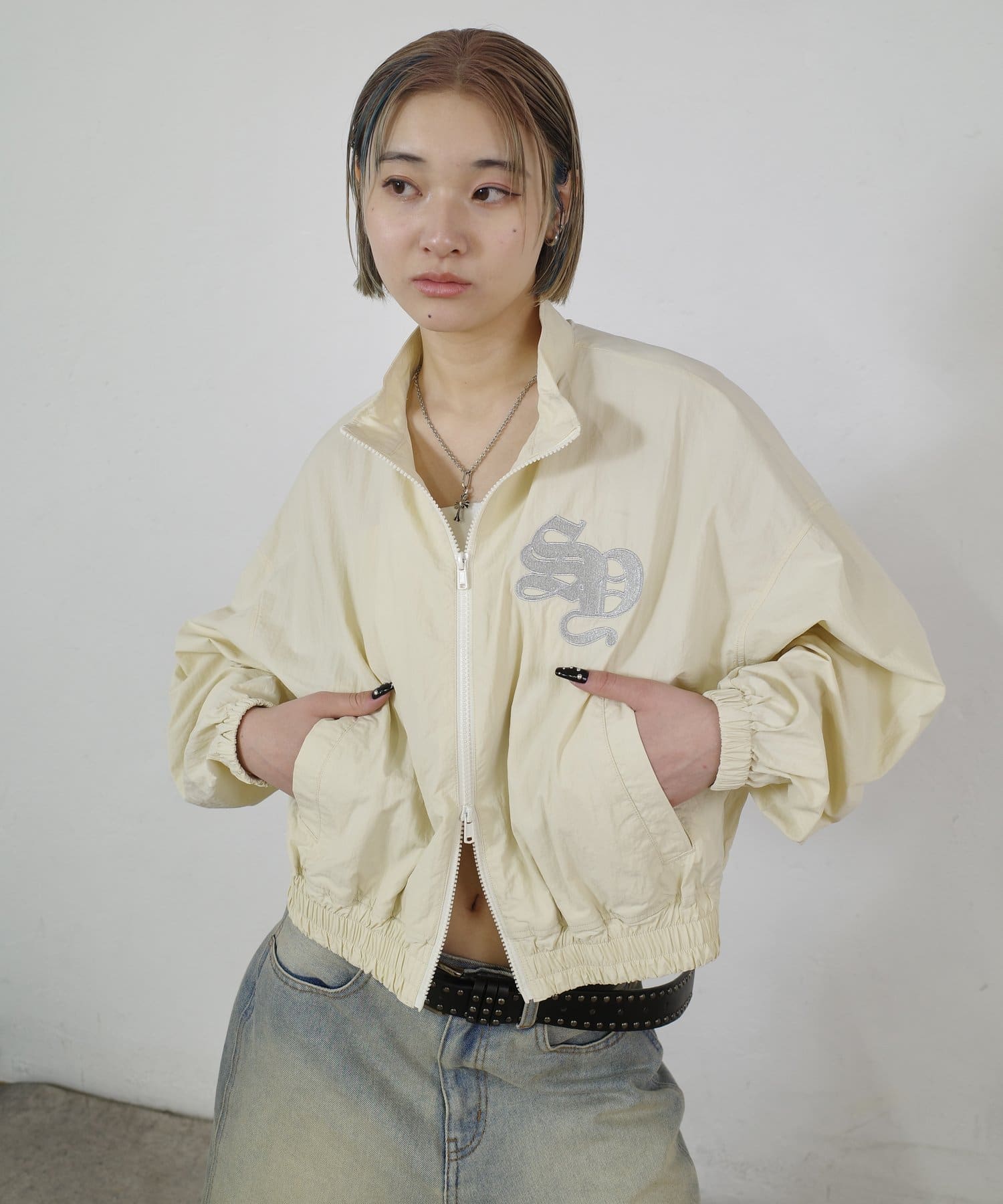 SLOPPY刺繍がポイントのロングシーズン着れるナイロンブルゾン。