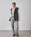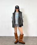 →デニムアイテムと合わせることによって、かっこいいレザーベストと調和されてカジュアルダウンして