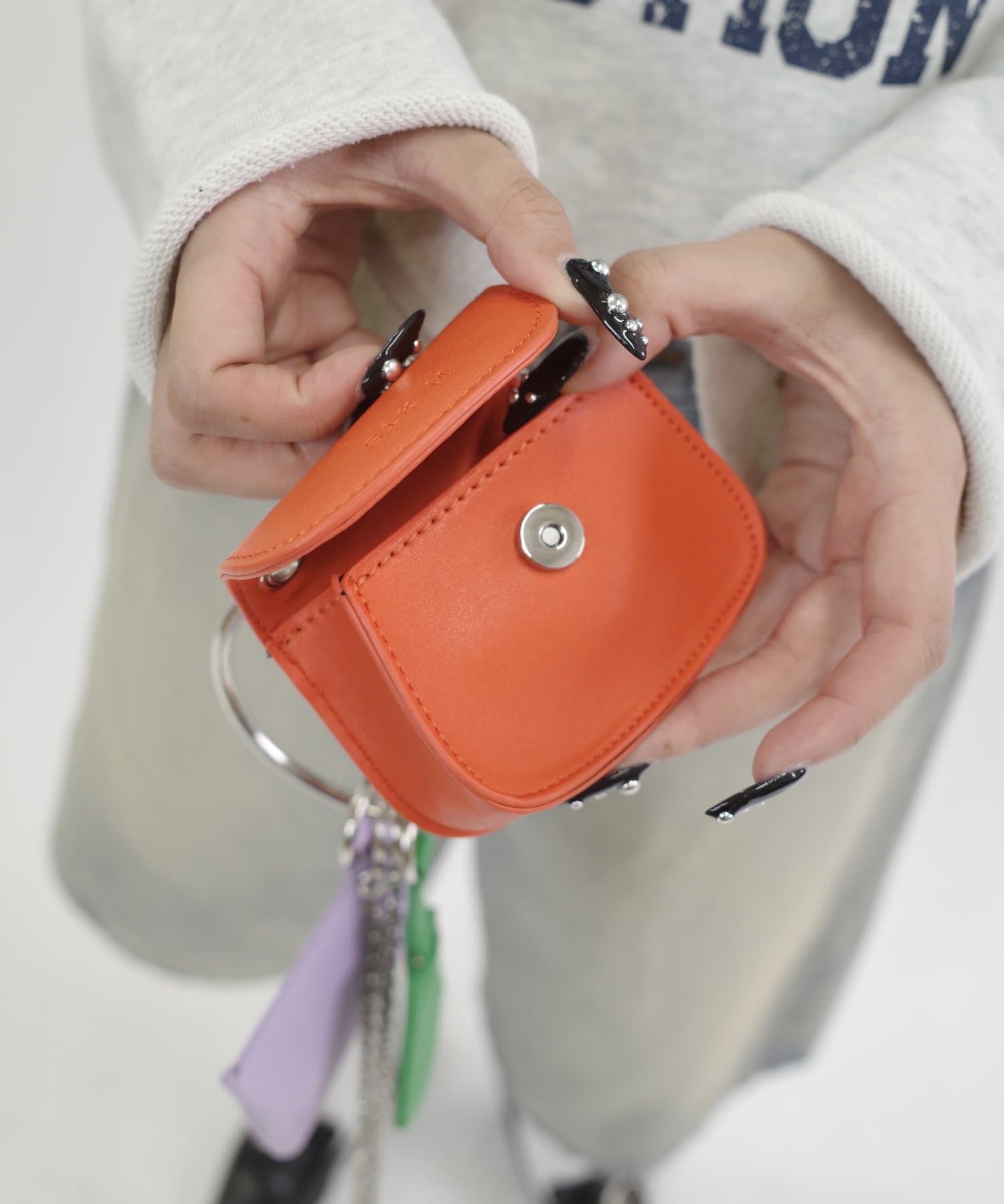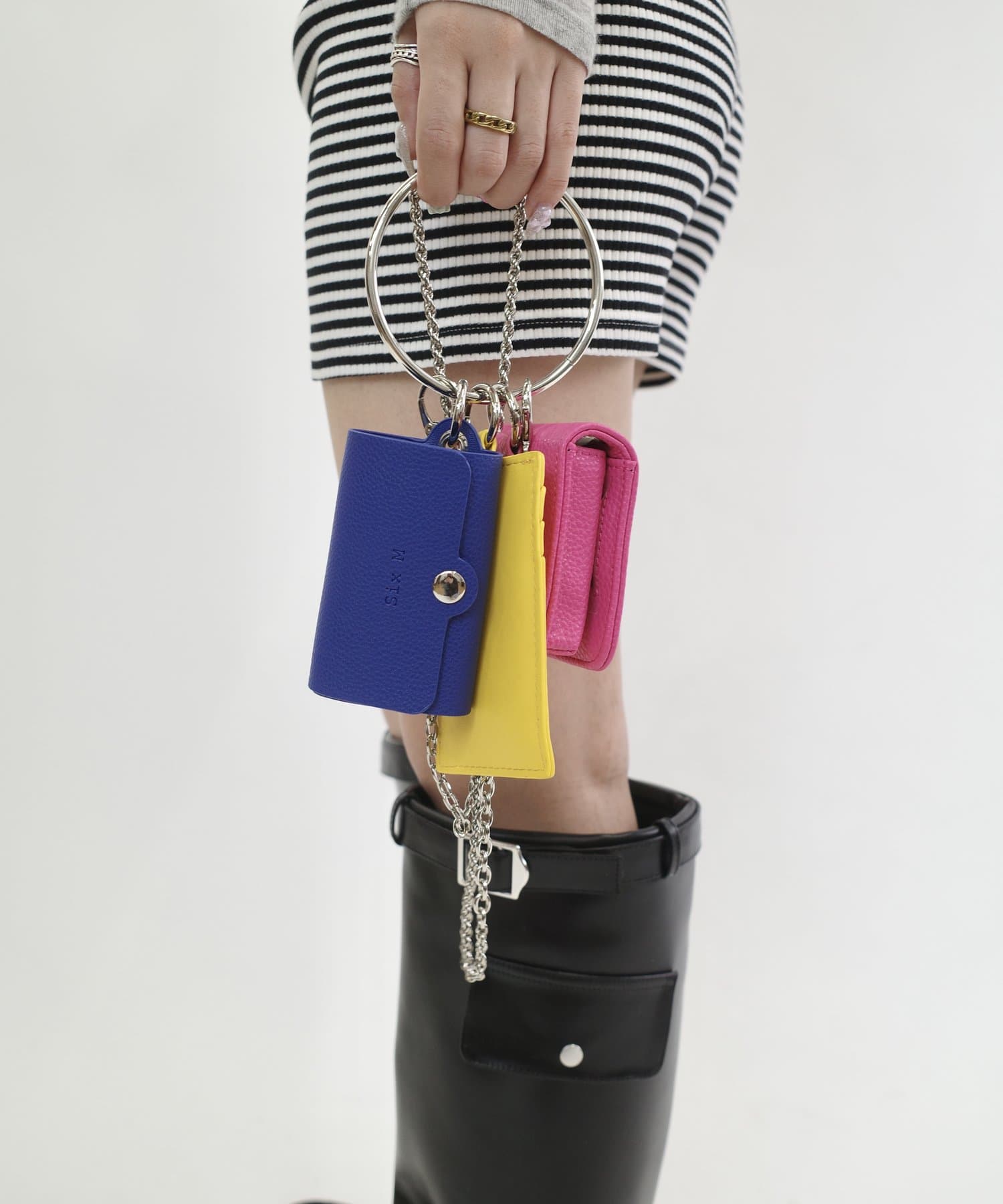 ・リングやチェーンは取り外し可能。斜めがけや手持ちにしたり、ケースは何個付けでも楽しめます。