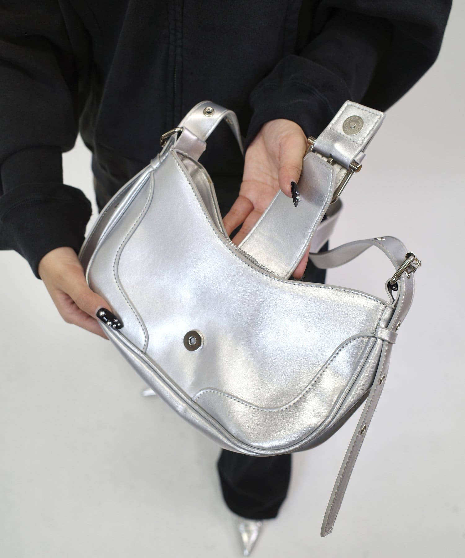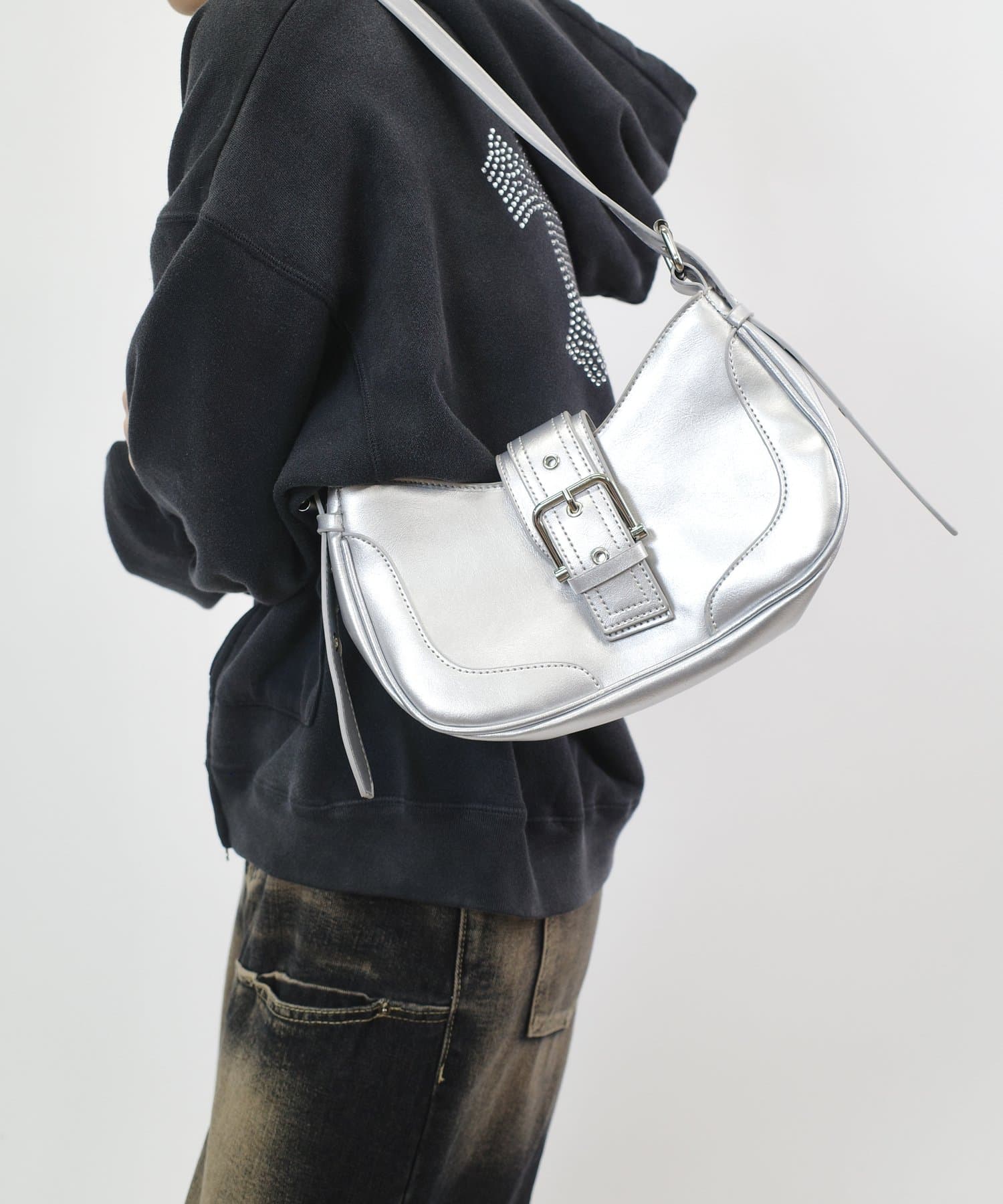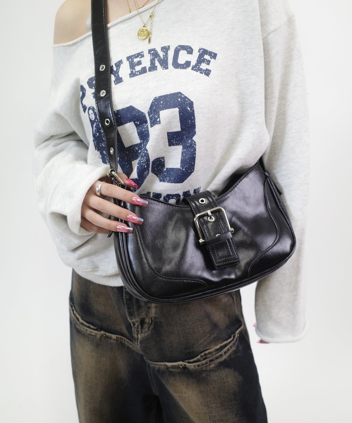 ・大きいバックルが大人っぽさを感じさせるショルダーバッグ。