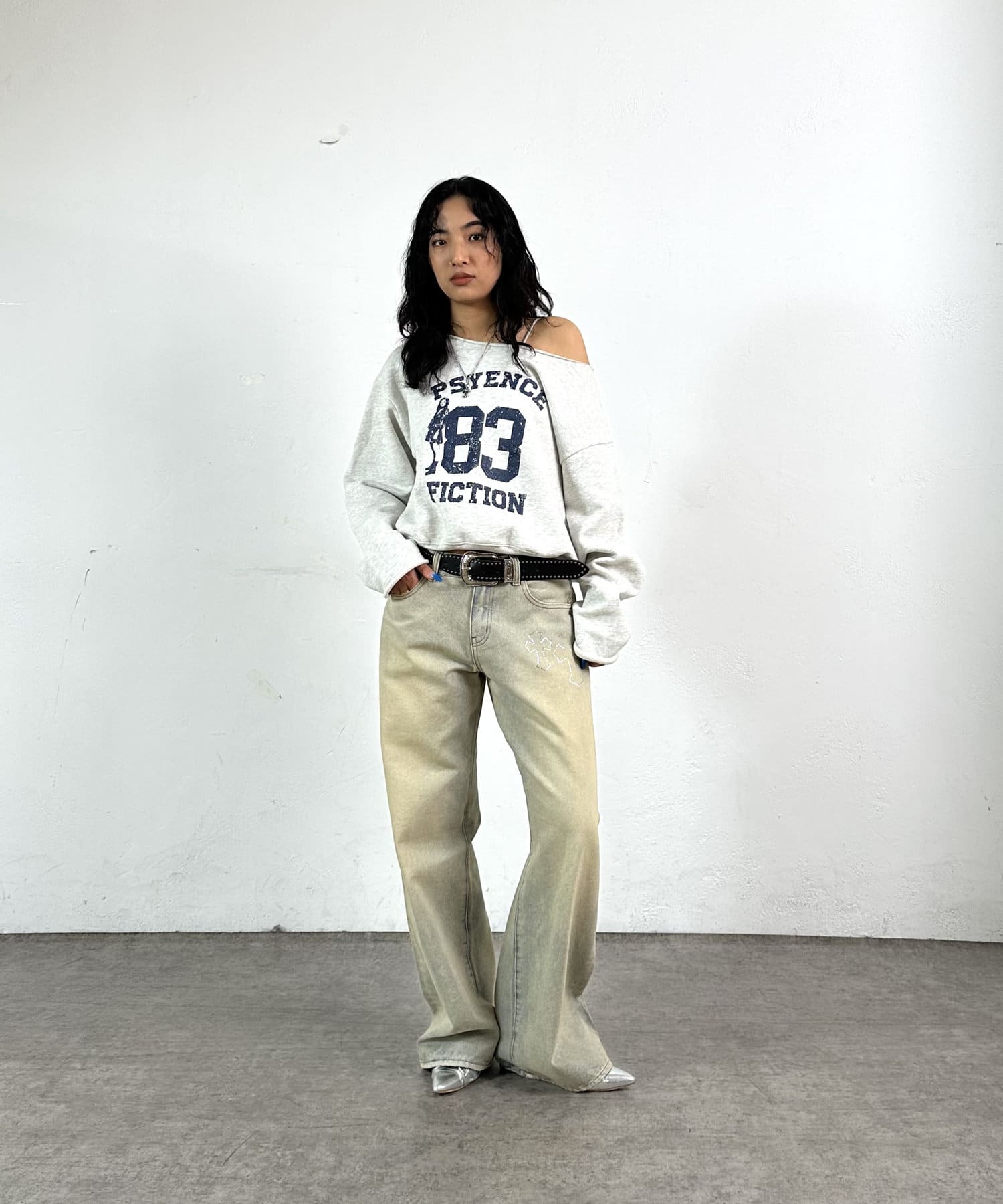 →ローライズなので、ジャストサイズと合わせるとバランスも取れてトレンド感のある着こなしに。
