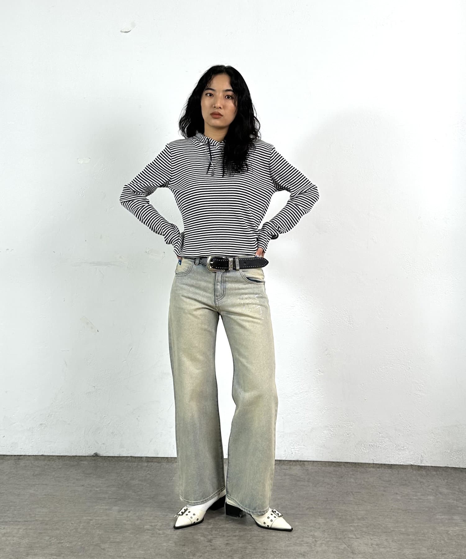 →今季トレンドのボーダー柄と合わせると一気にトレンド感が出るのでオススメです。