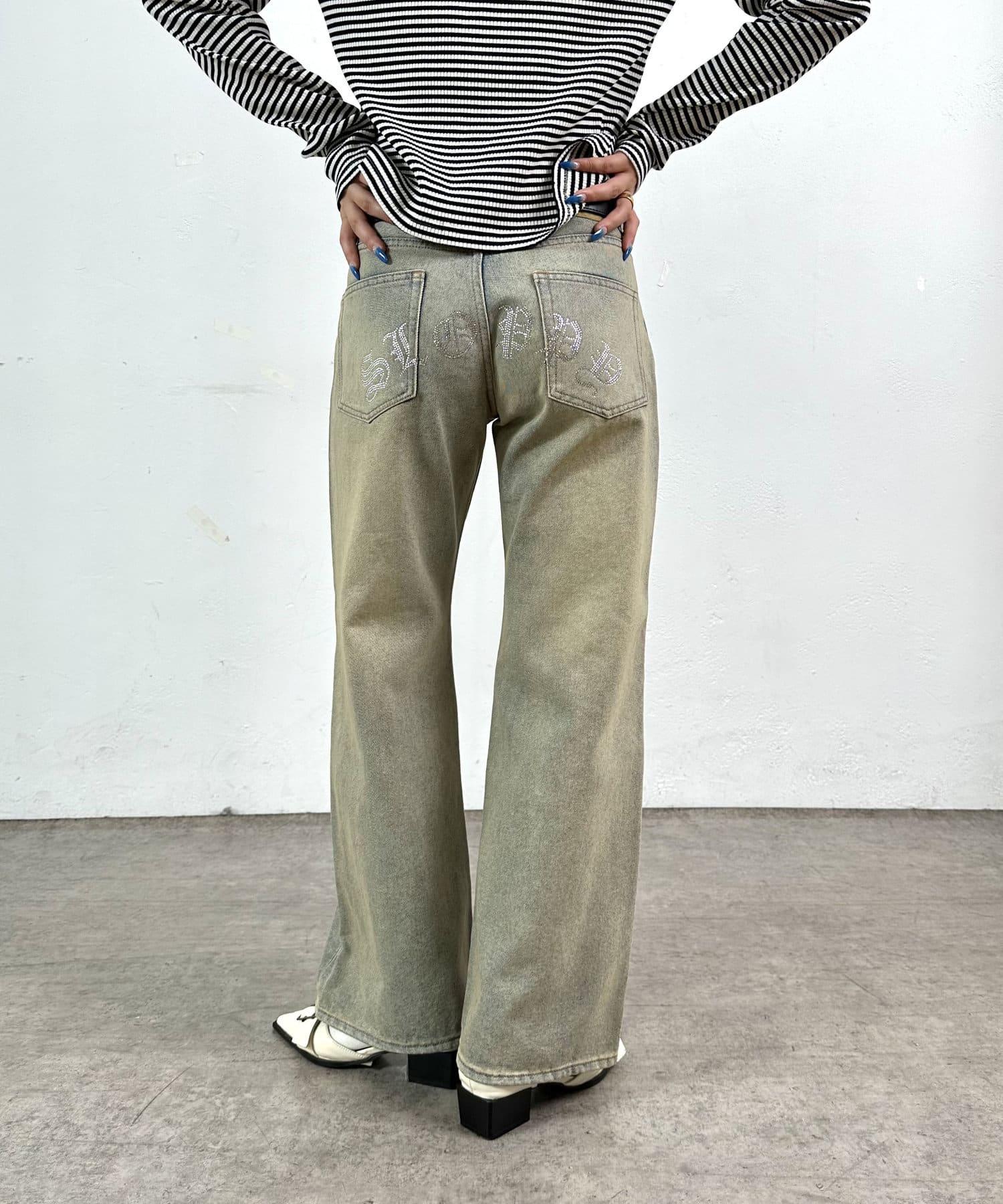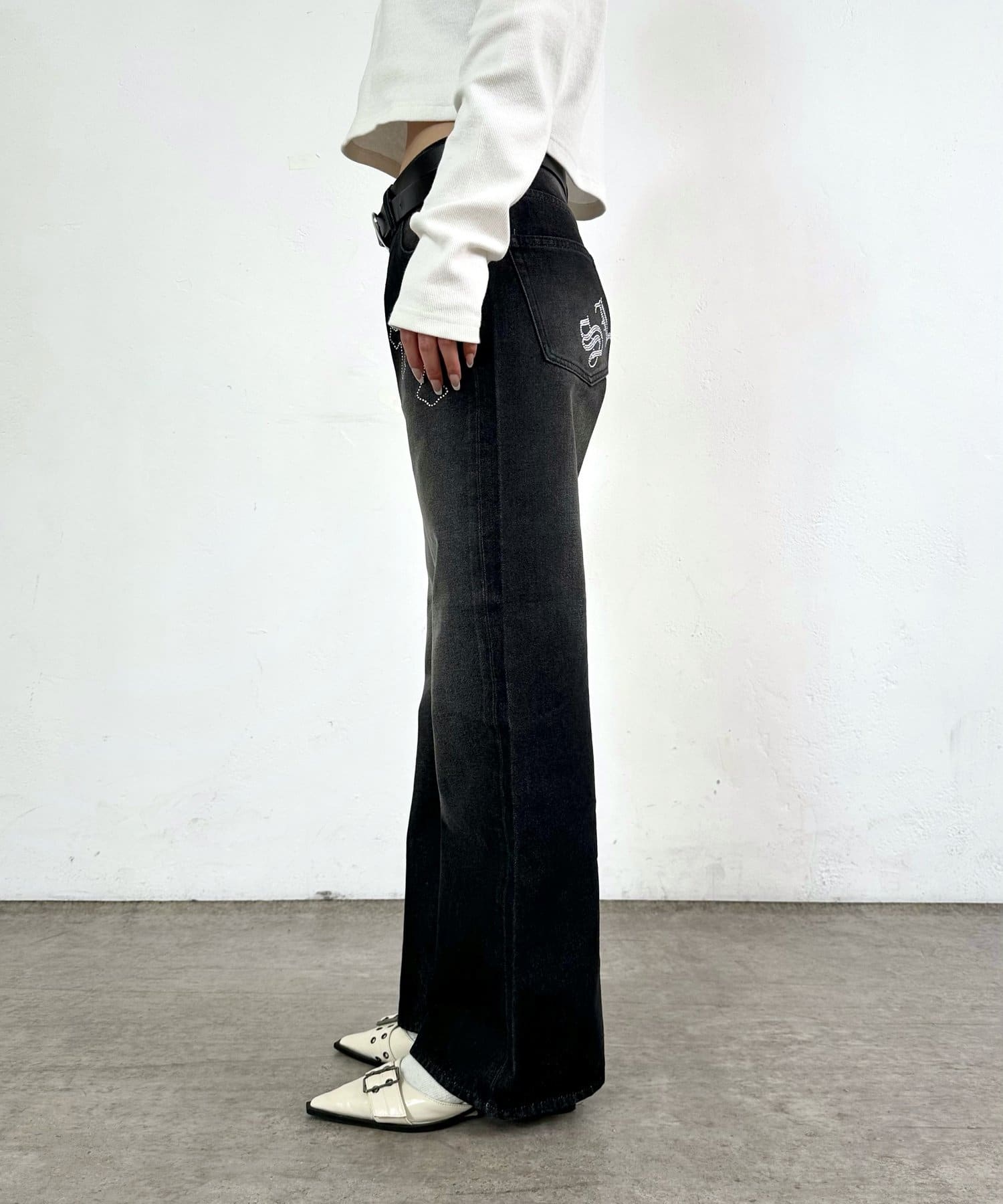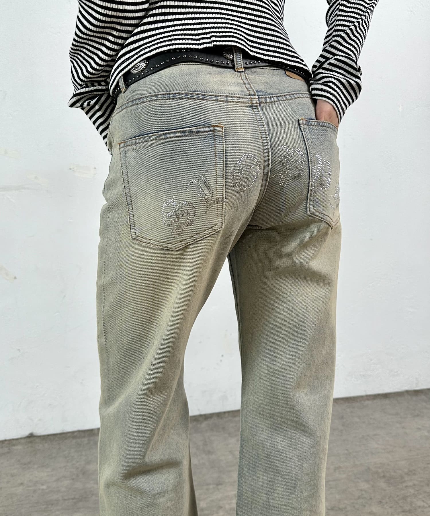 ・ギャル感のあるラインストーンが可愛いフレアデニム。