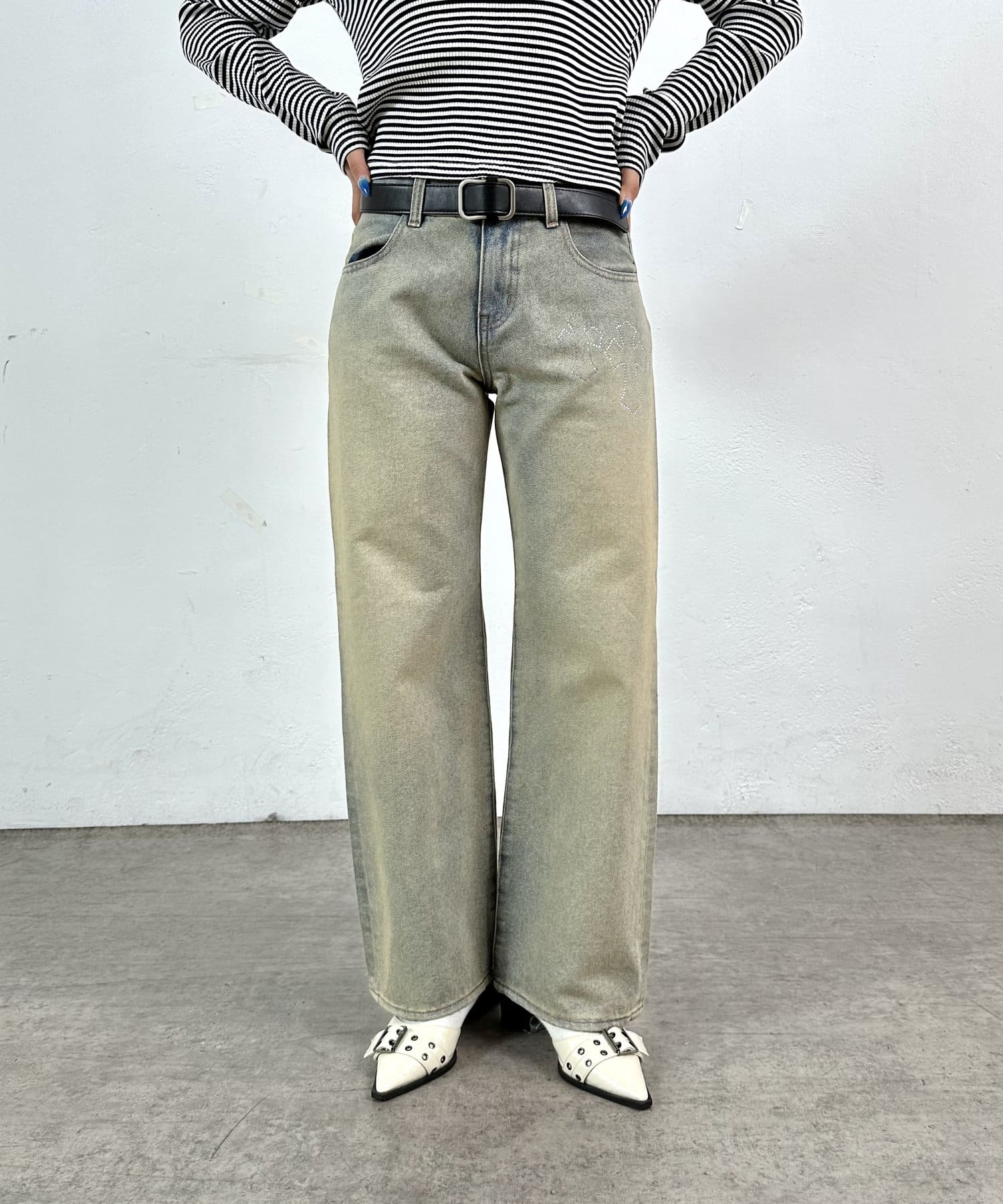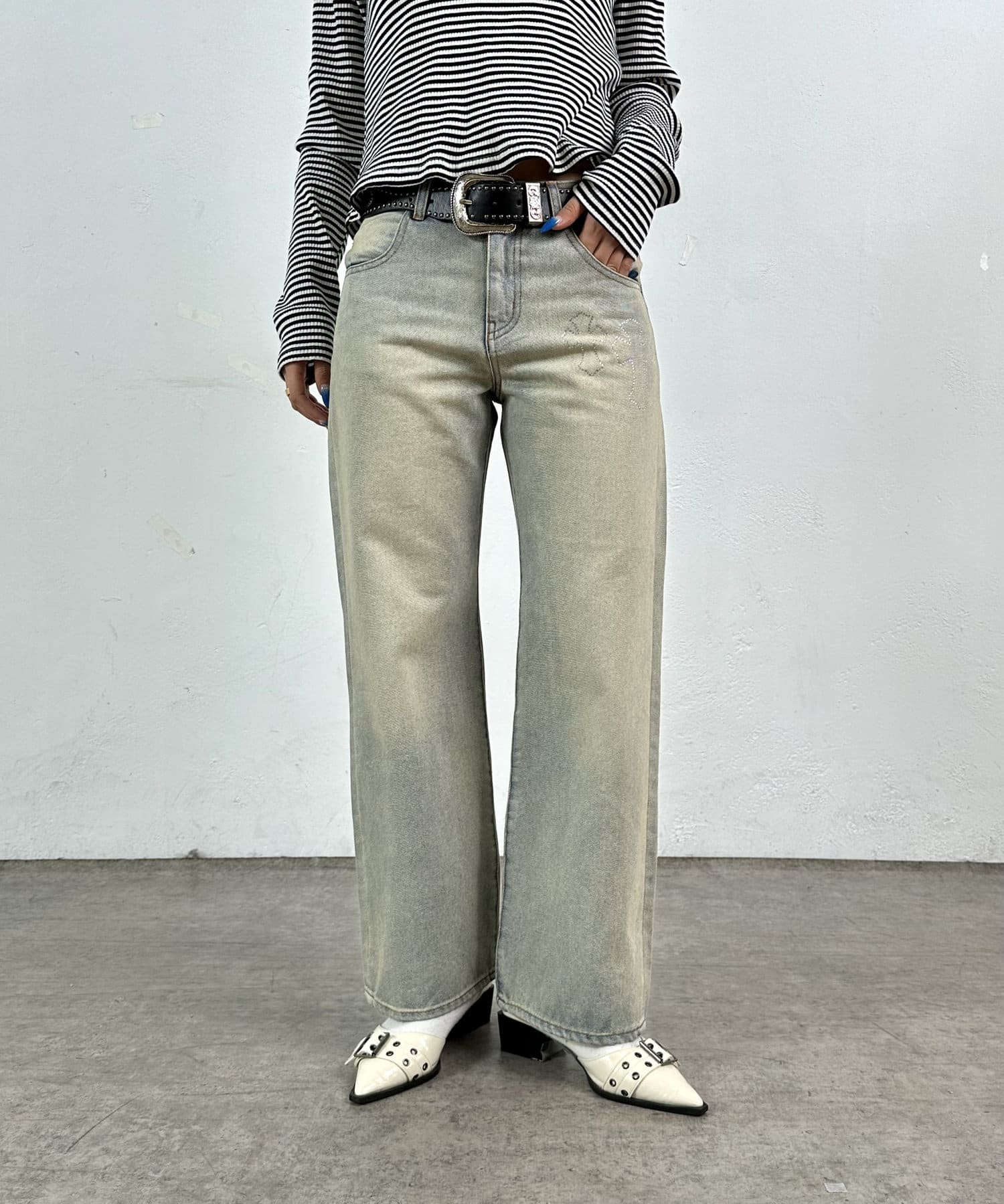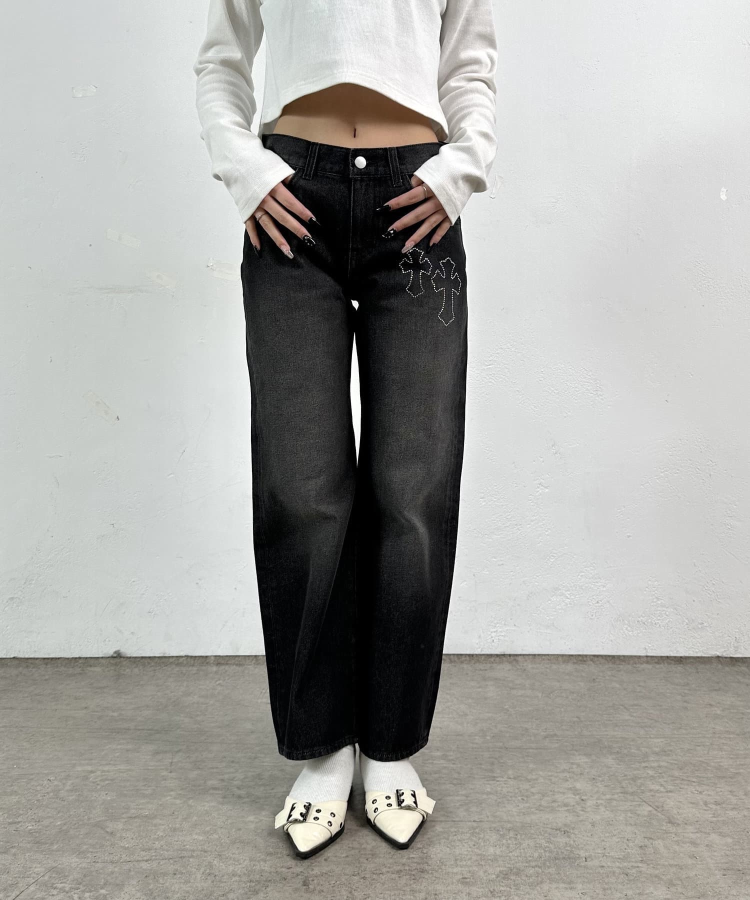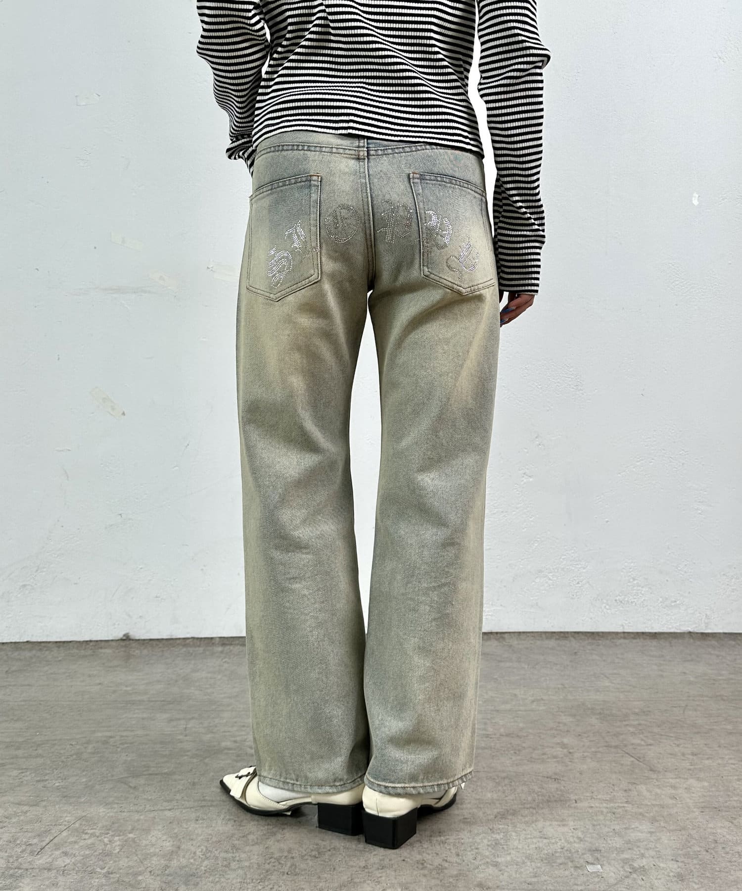 ・ギャル感のあるラインストーンが可愛いフレアデニム。