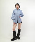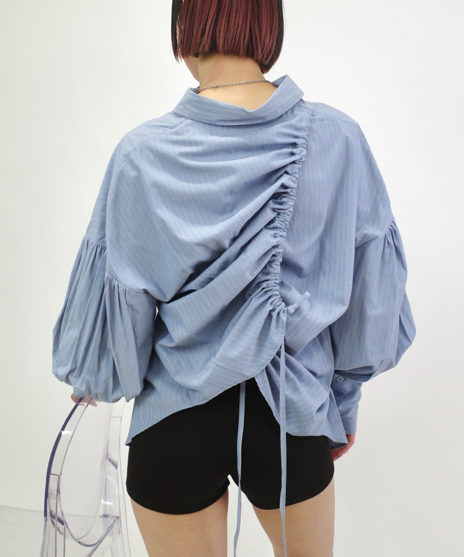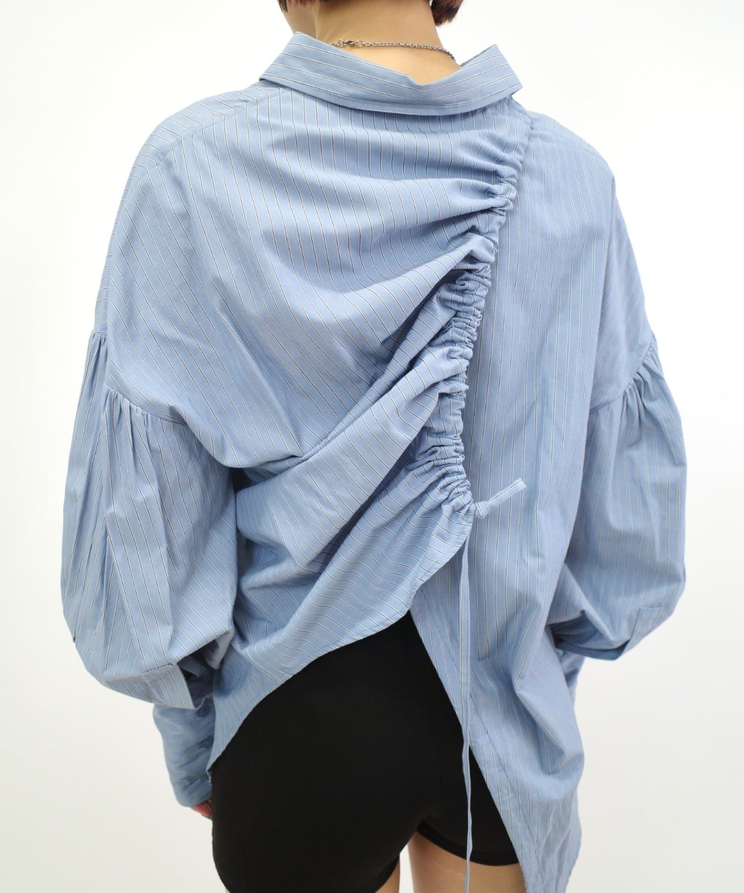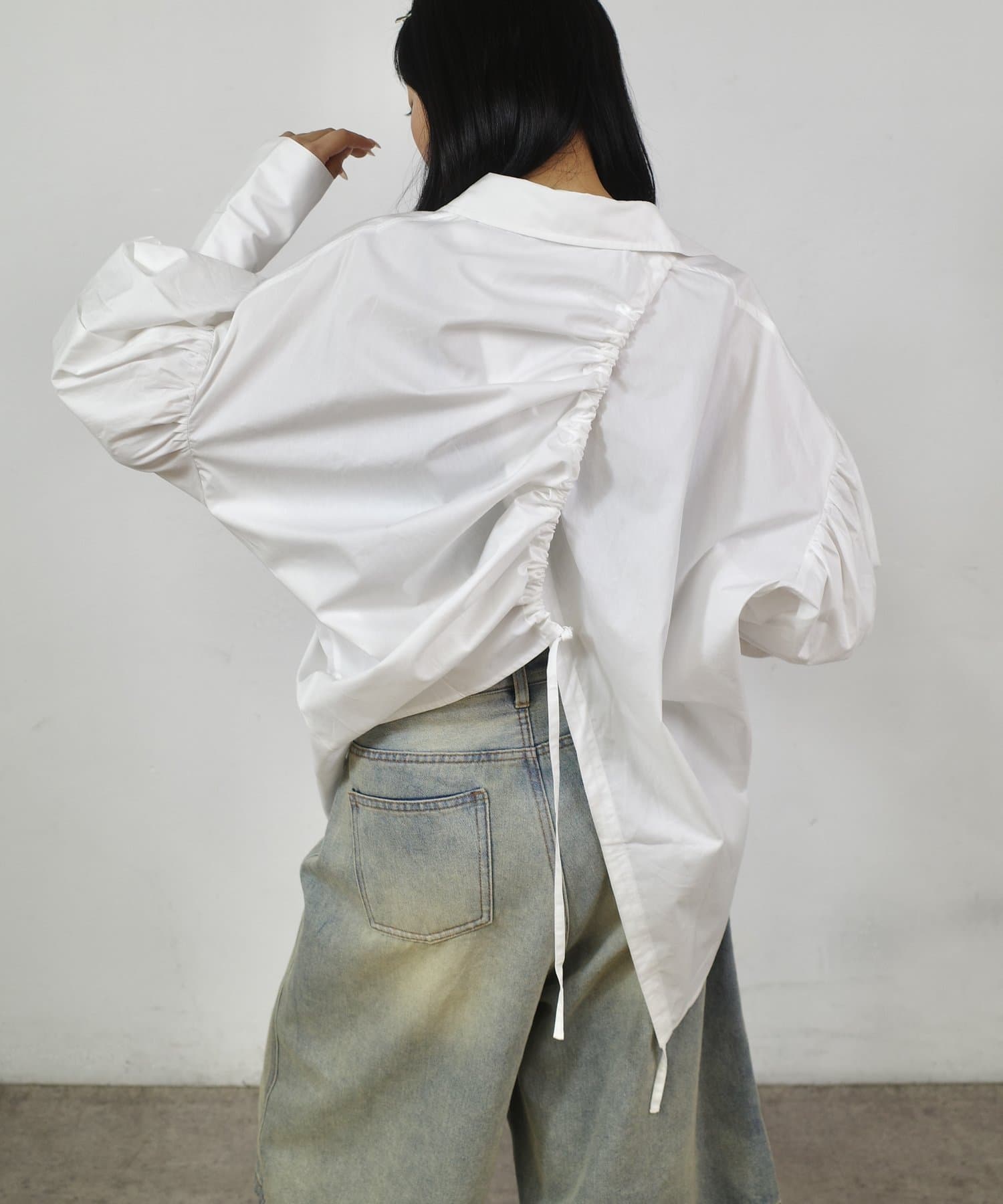 ・ギャザーの締め方でシャツの形が変えられて、気分で着まわせる万能シャツ。