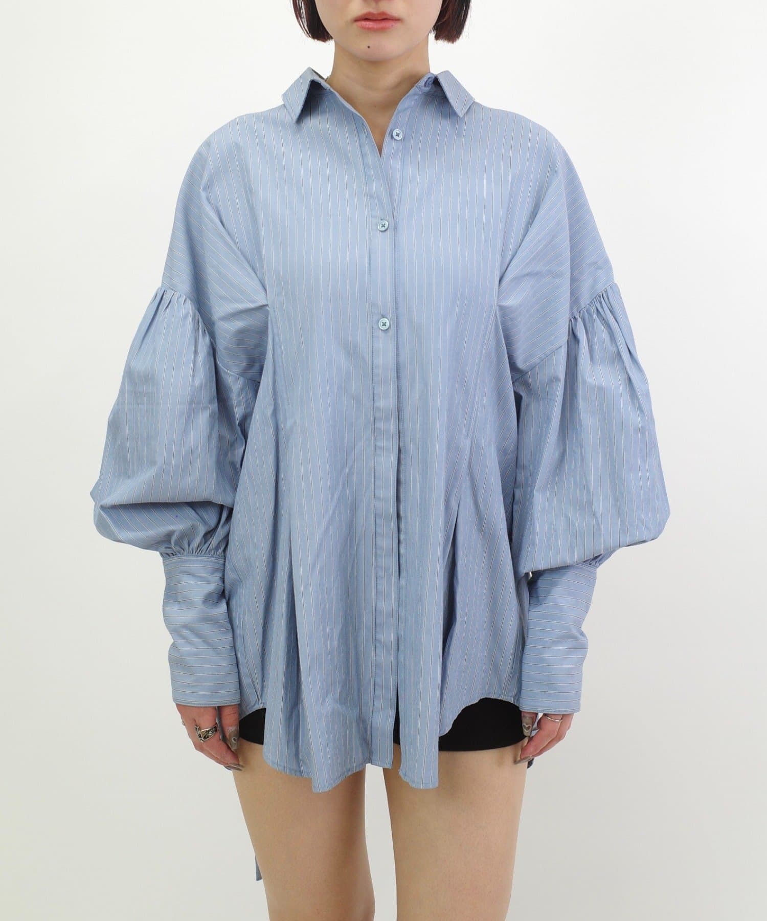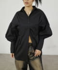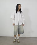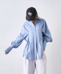 ①ギャザーを寄せずにノーマルなビッグシャツスタイル。