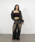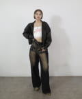 →ワイドデニムとレザーブルゾンと合わせるとトレンドの甘辛ミックススタイルが完成。