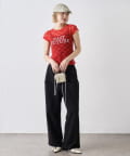 ・フロッキー素材の赤ロゴがワンポイントでトレンド感のあるアイテム。