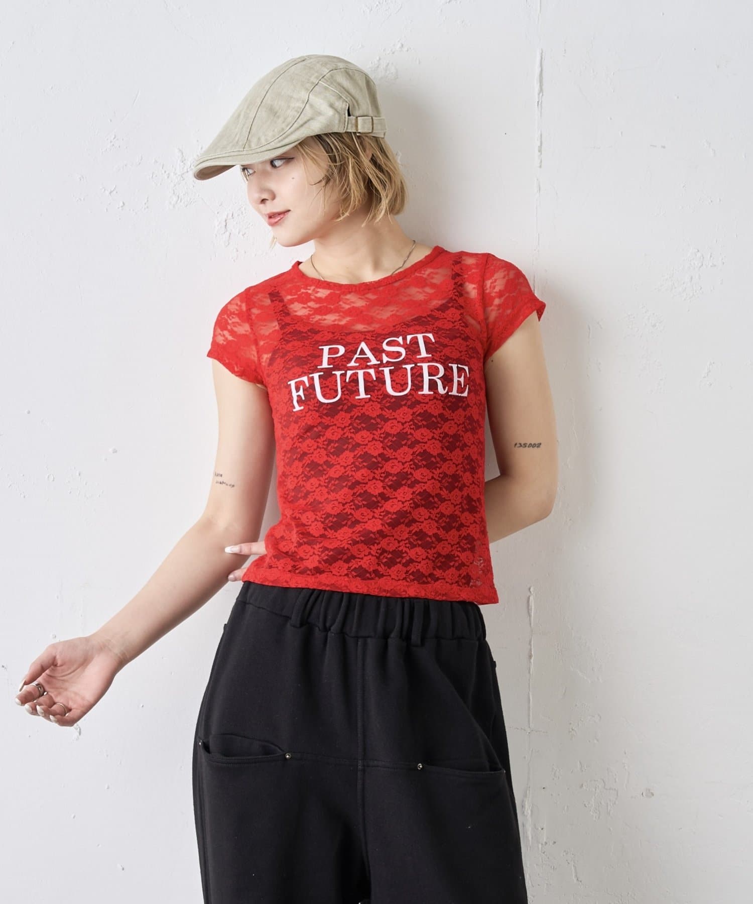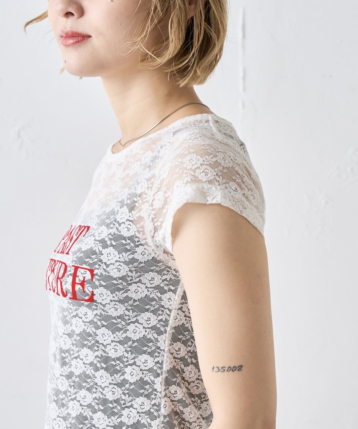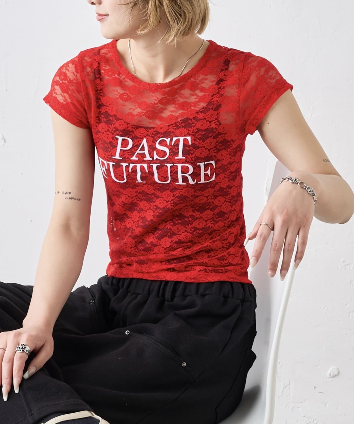先取りアイテム。今季トレンドのレースTEE。
