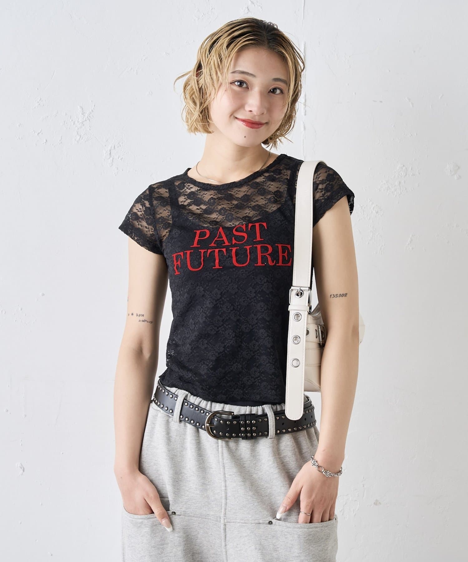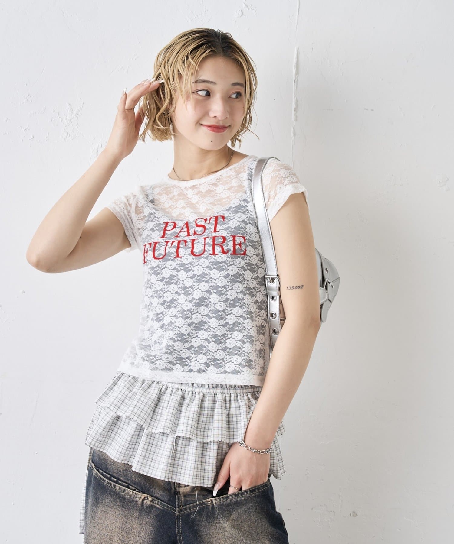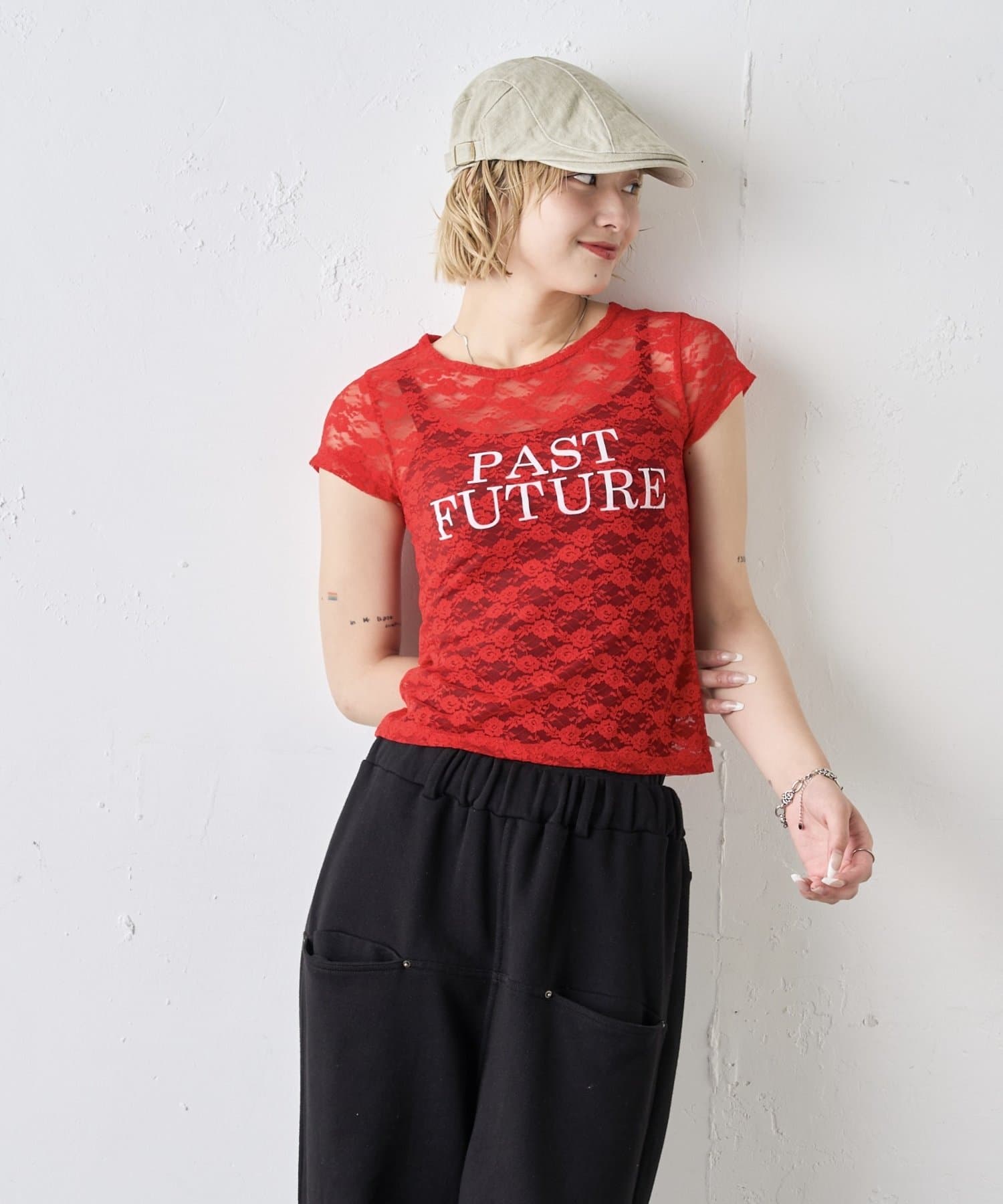 先取りアイテム。今季トレンドのレースTEE。