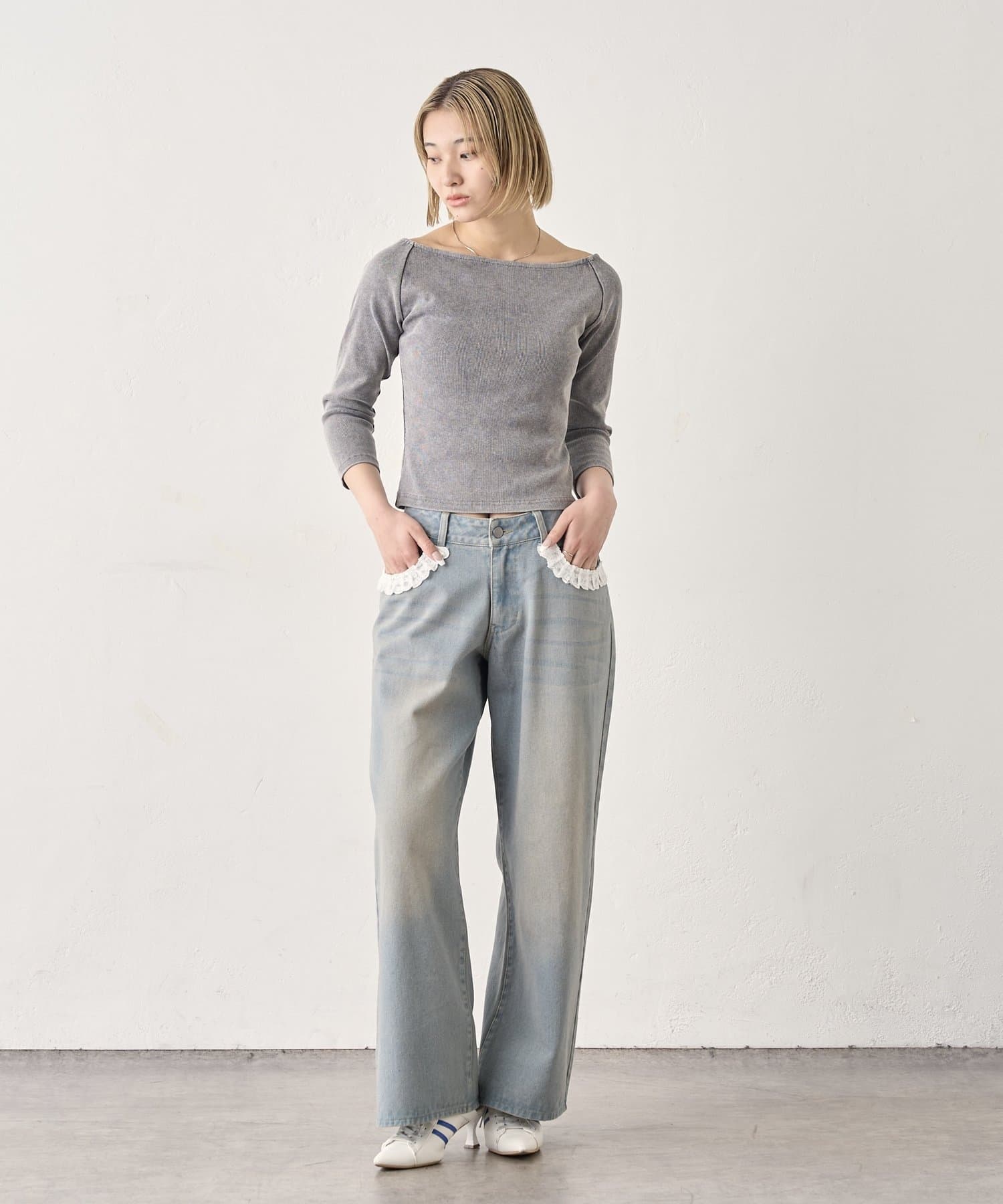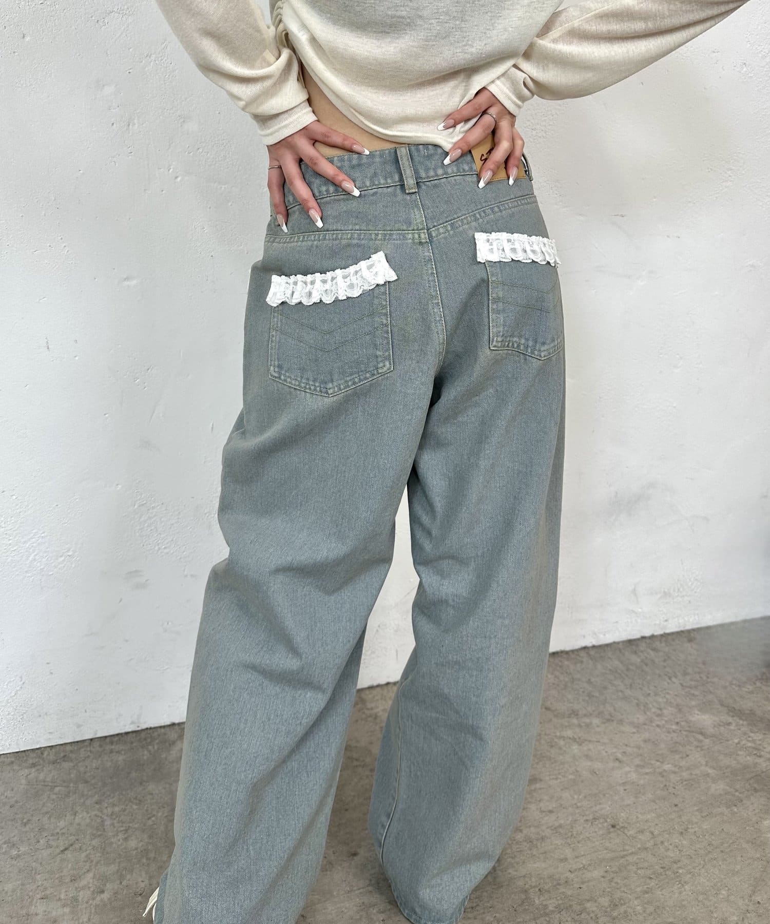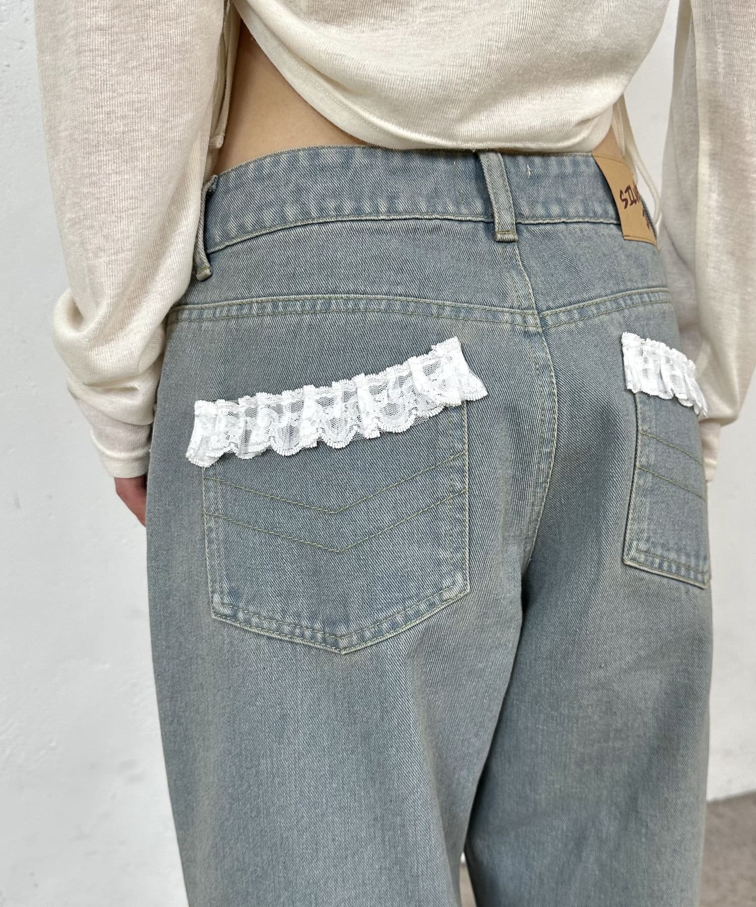 ローライズデニムにポイントとしてレースが付いたアイテム★