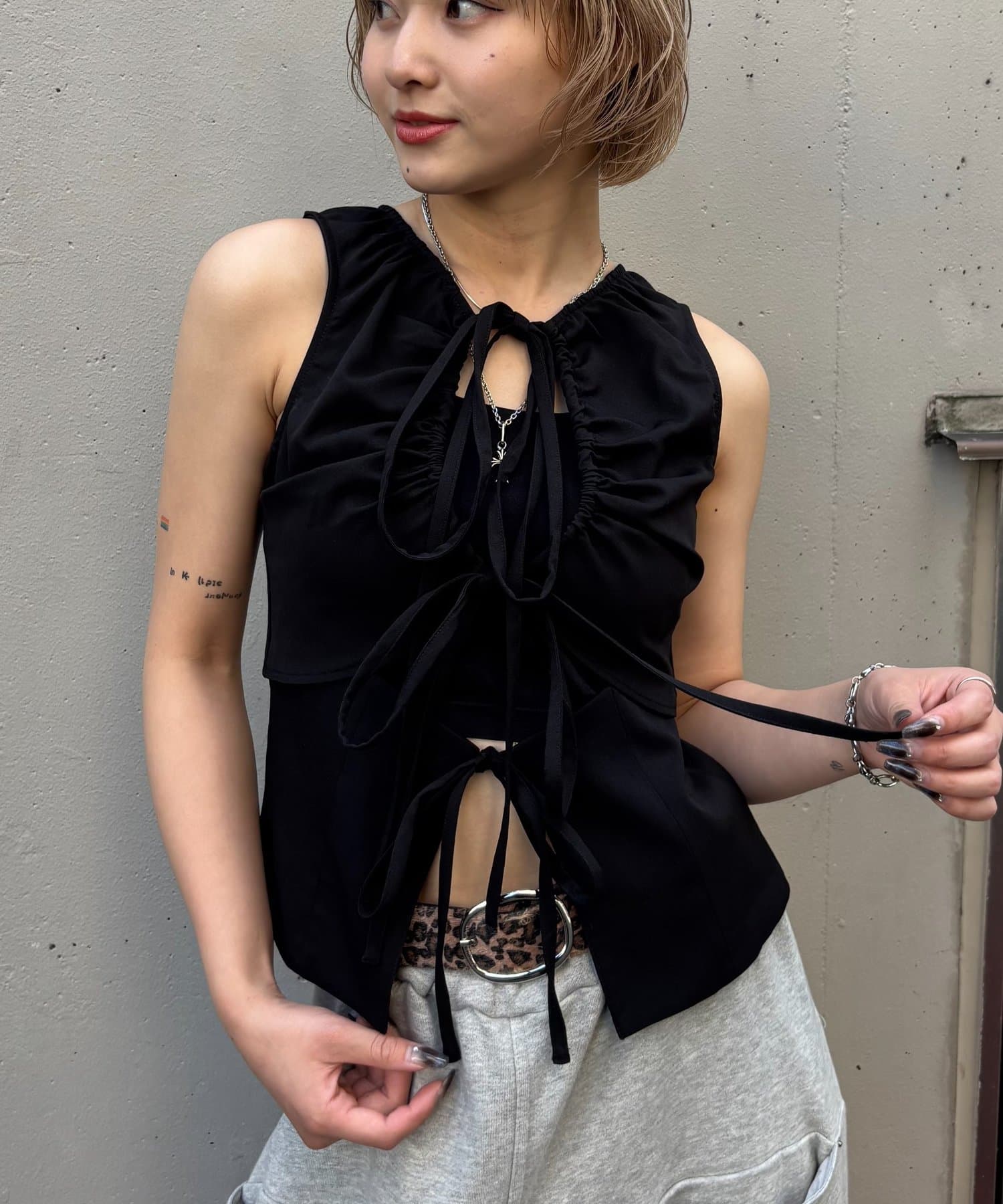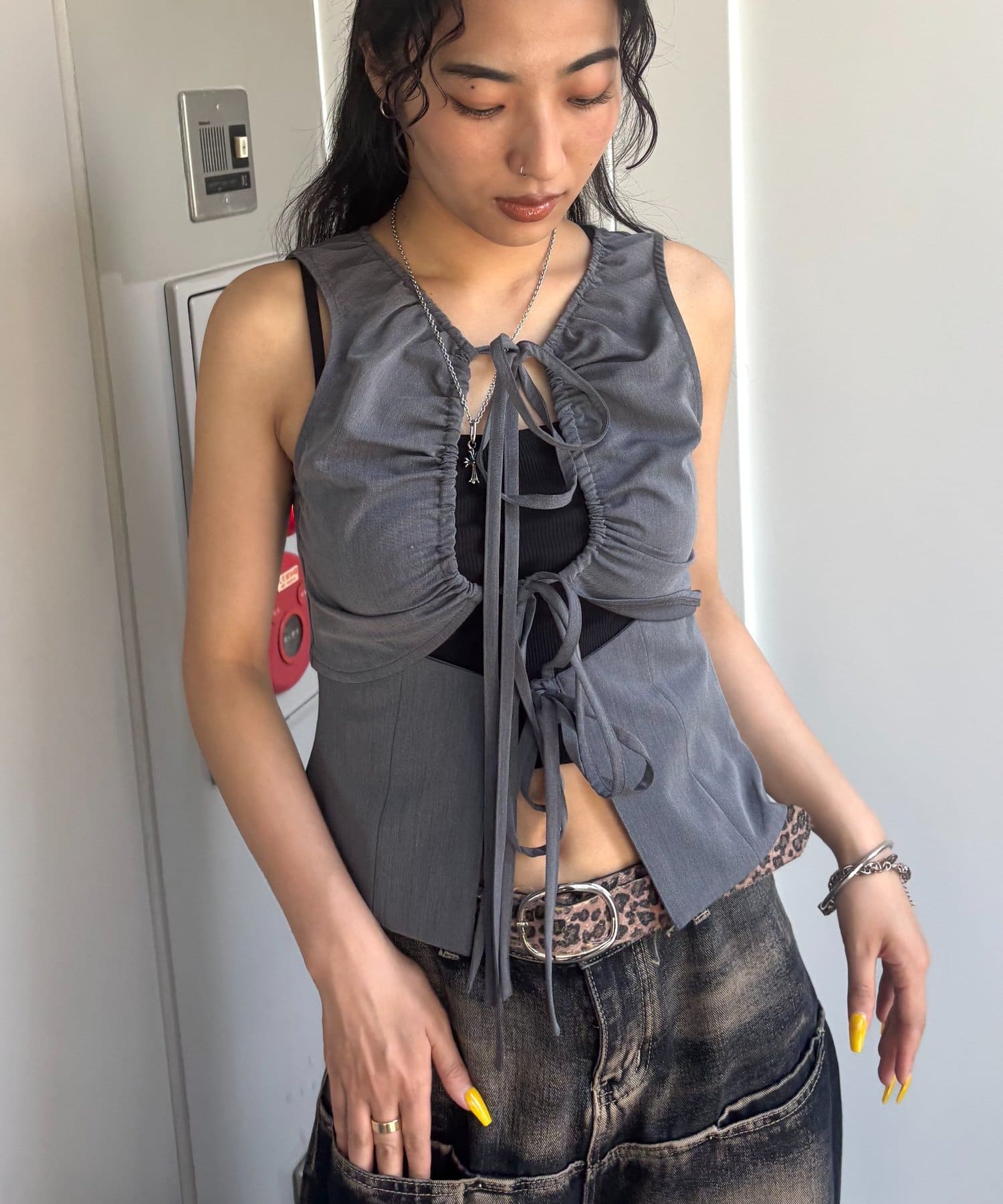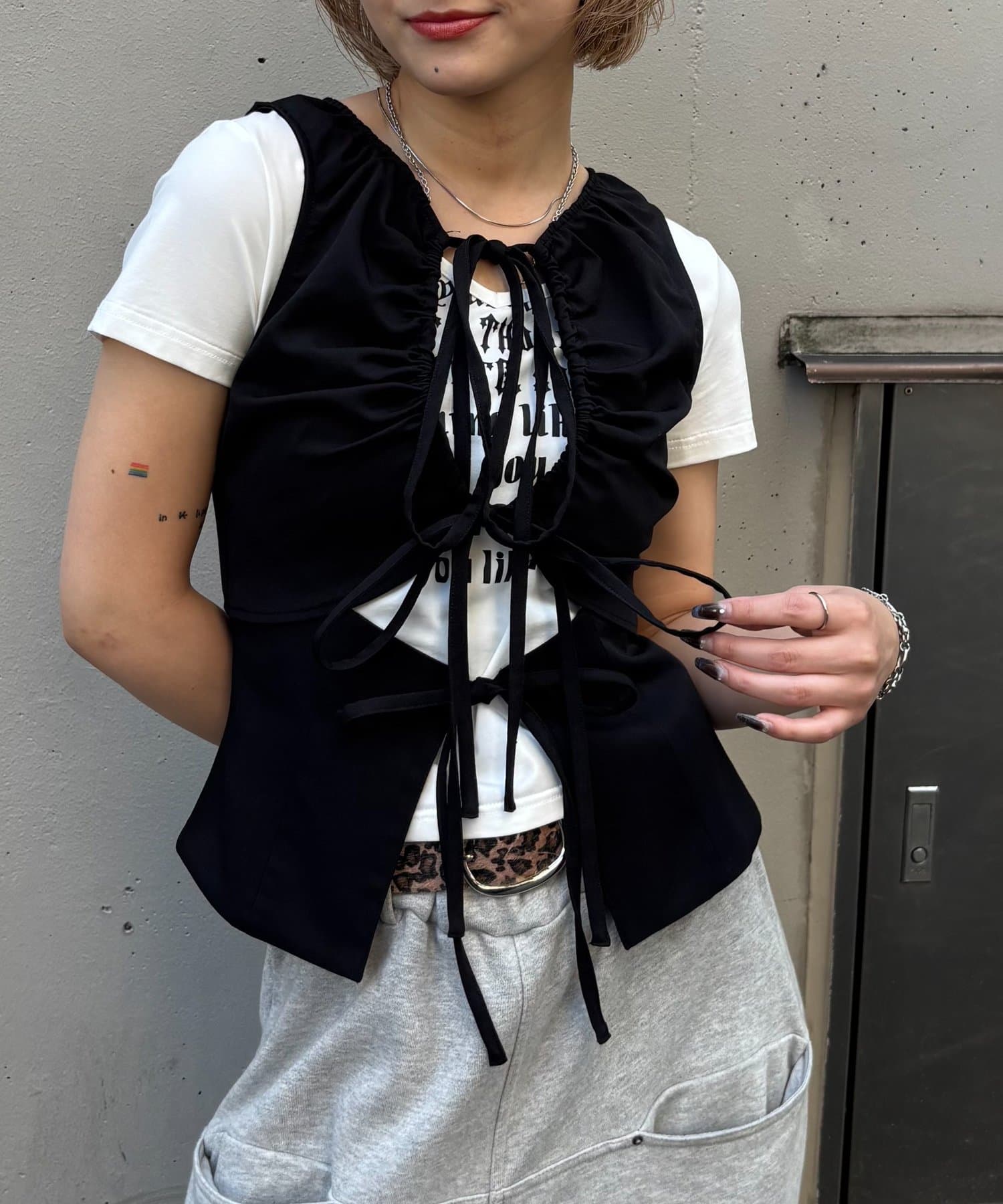 4WAYで着れる!人気のギャザーコイルデザインシャツからジレが再登場☆