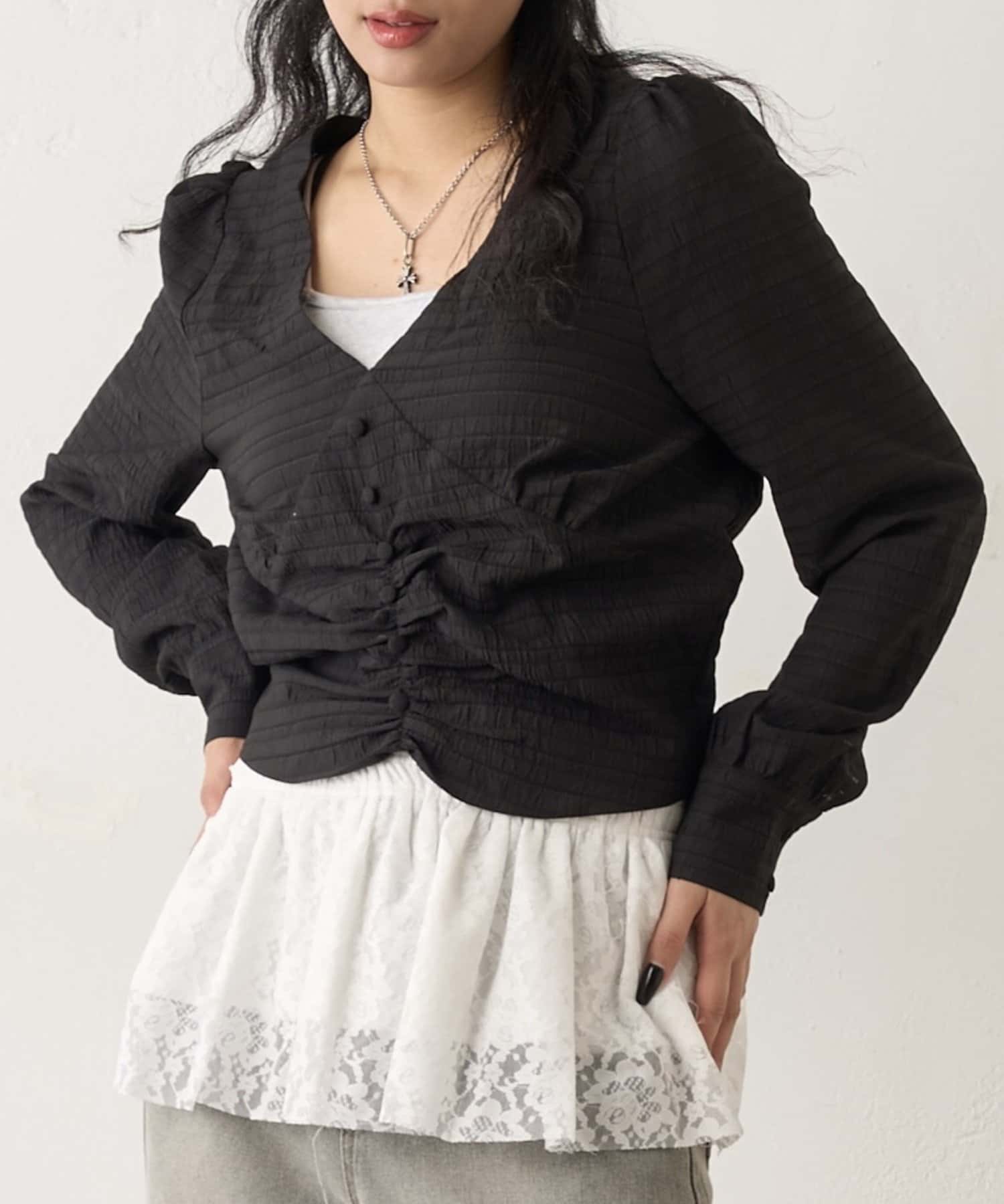 前後2WAY Vネックブラウス