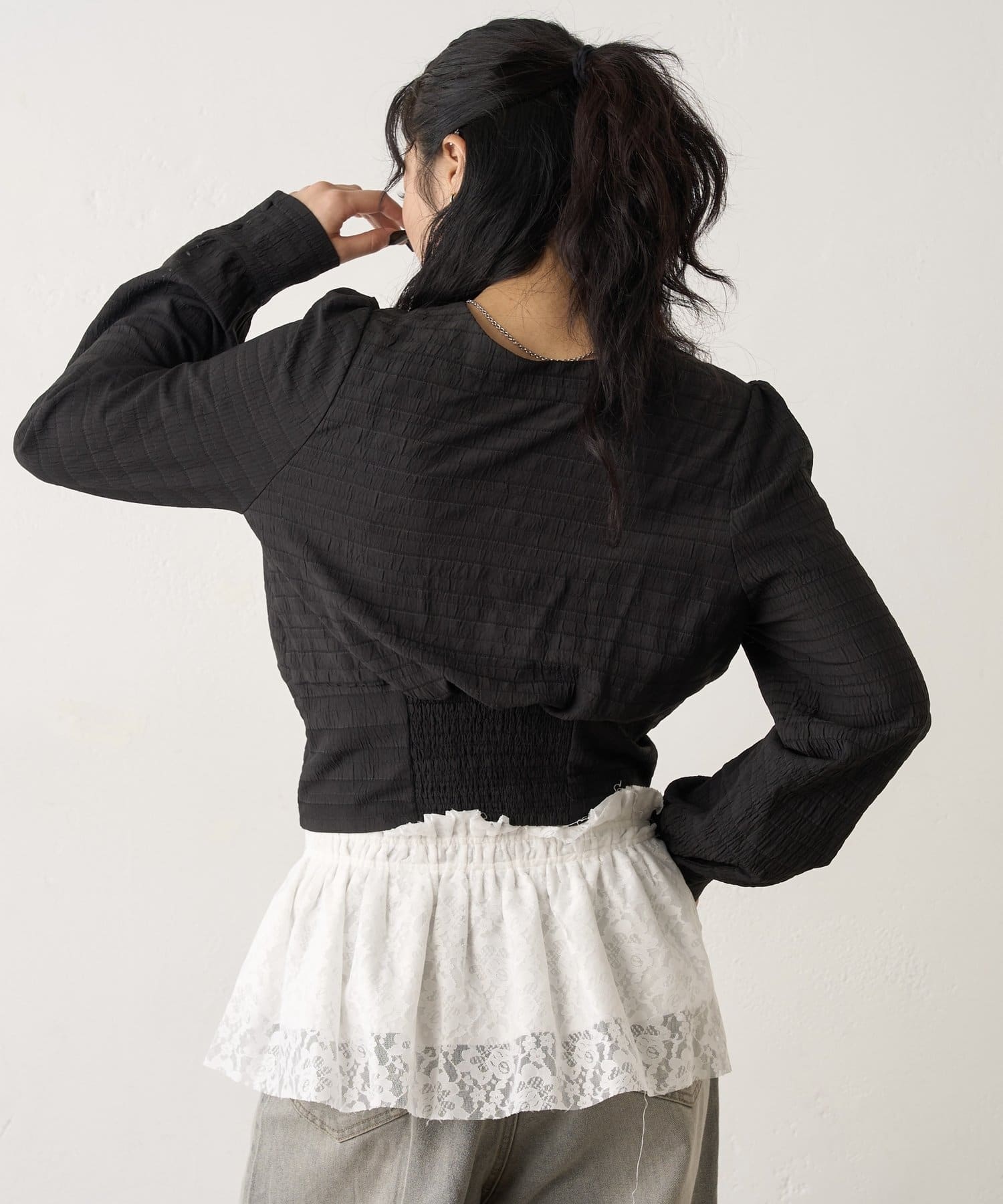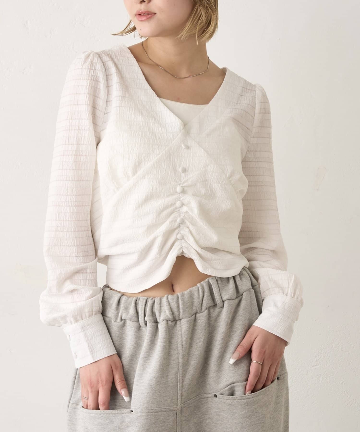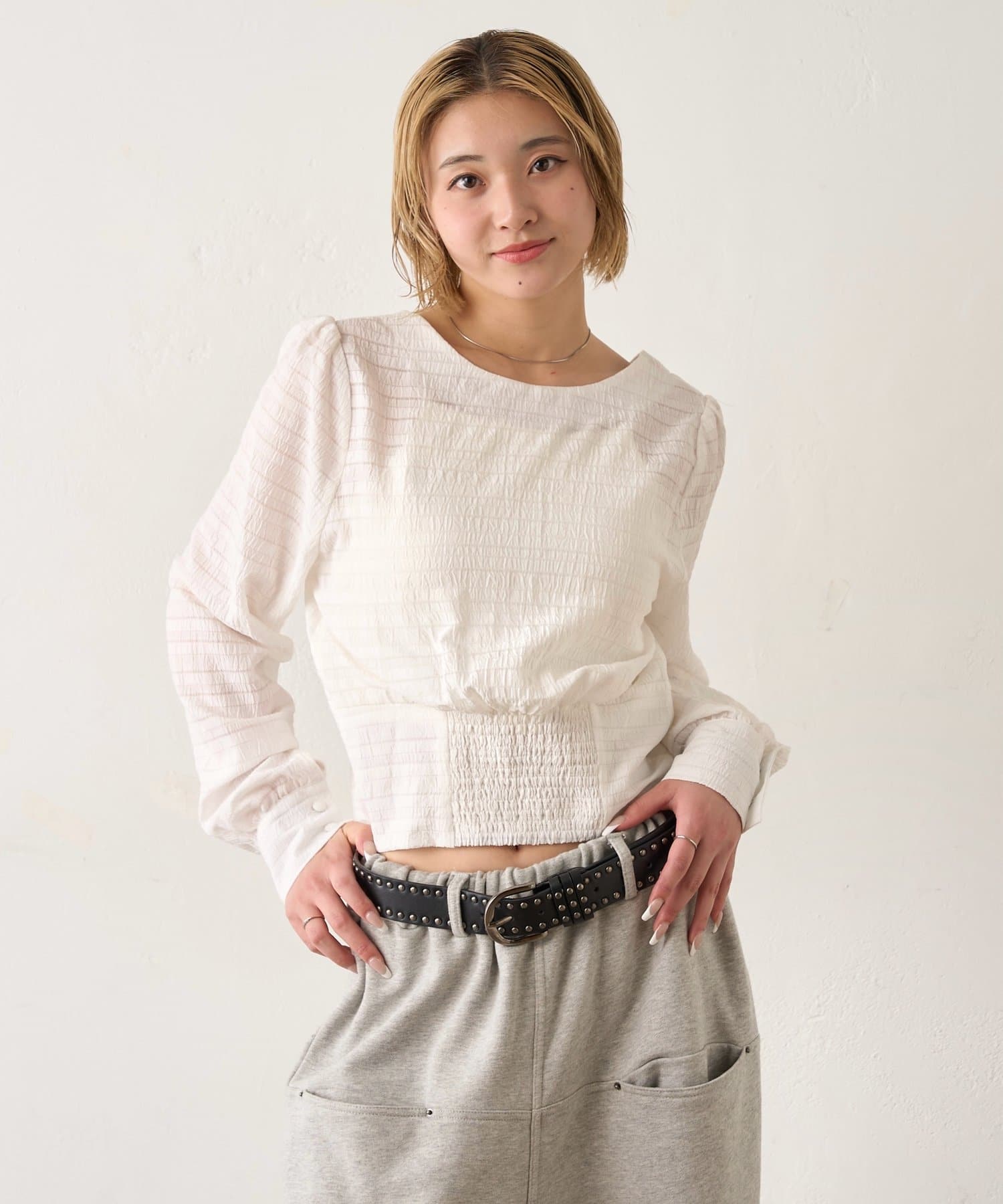 ・強すぎないパフスリーブなので、ブラウスでもカジュアルに見せることができます。