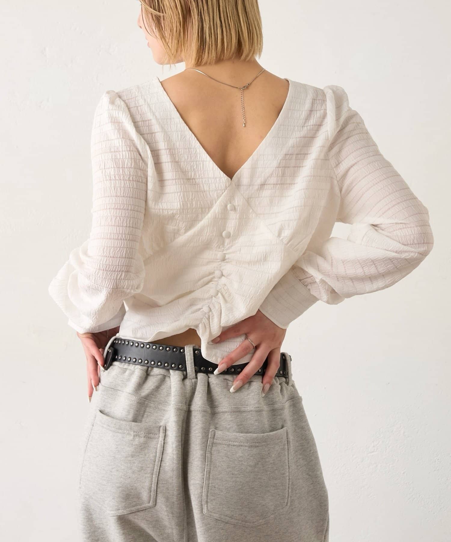 前後2WAYで着れる!春夏に着たいVネックブラウス。