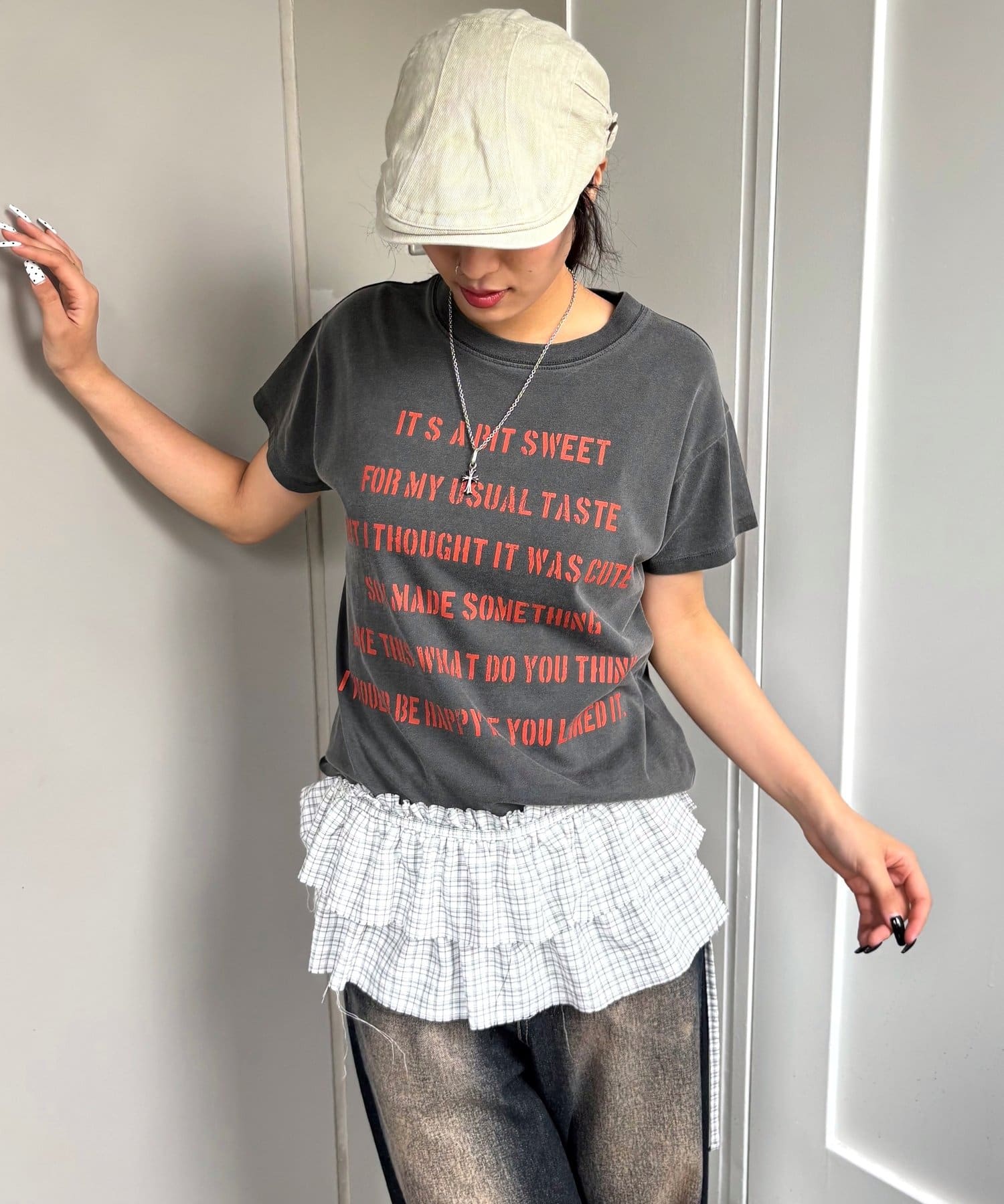 ・デニムパンツにレイヤードアイテムを合わせて、トレンドコーデに。