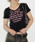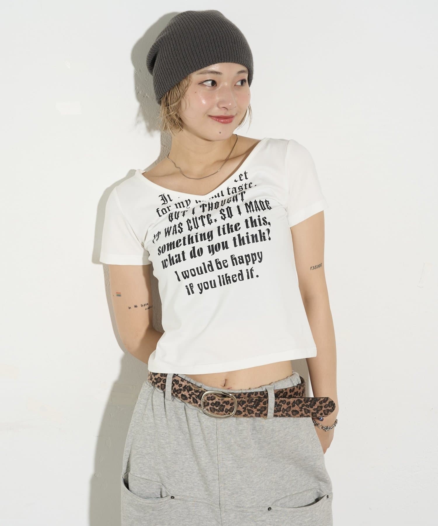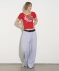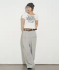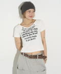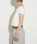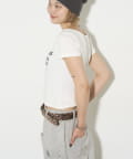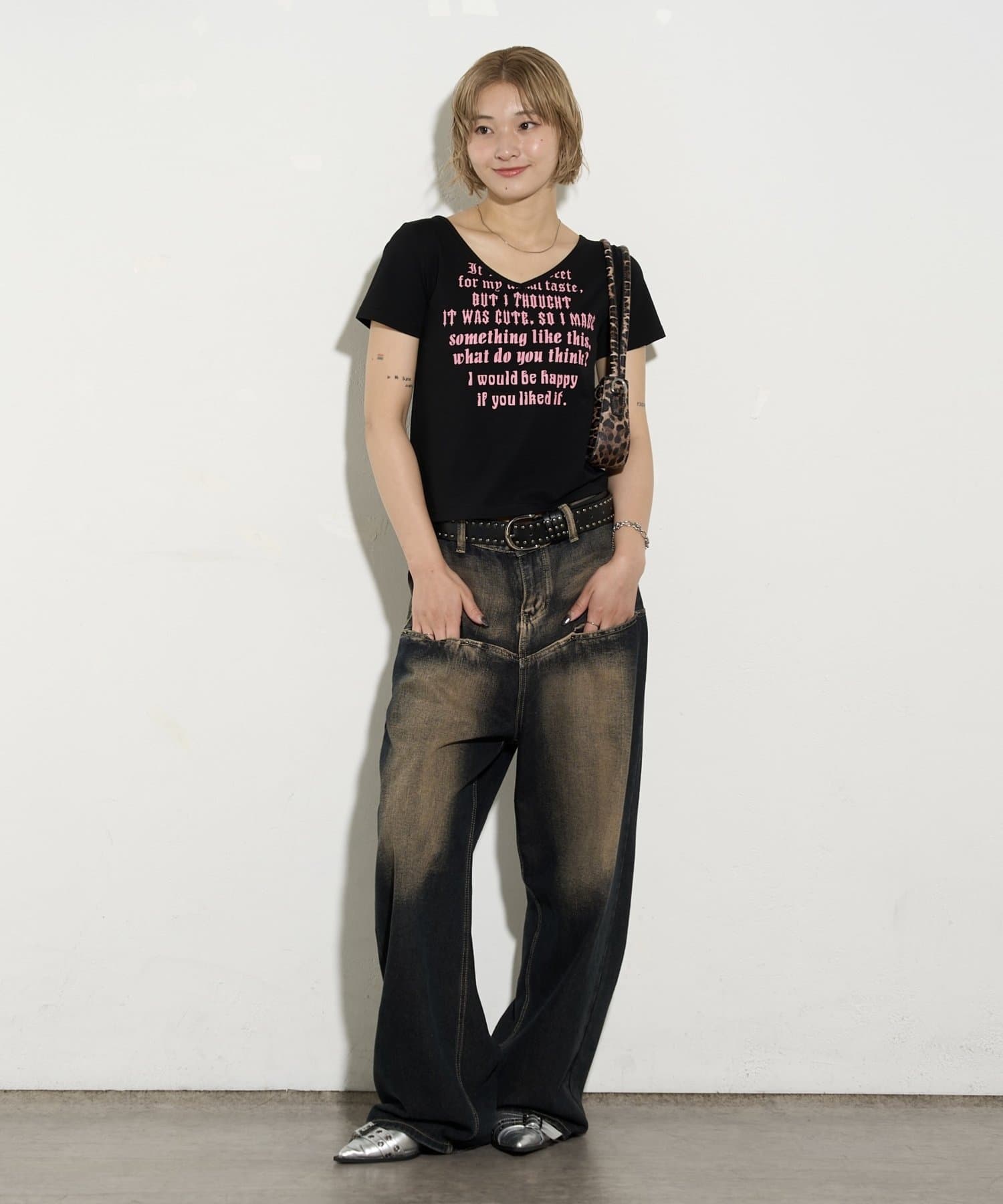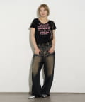 カッコよさのあるロゴなので、デニムにレースをレイヤードしてバランスの取れたコーデに!
