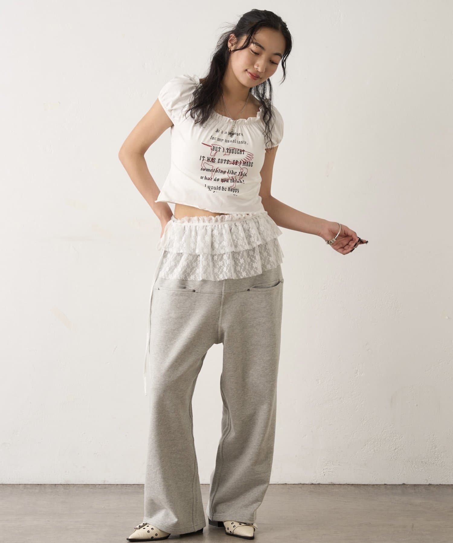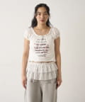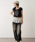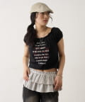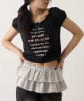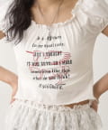 ・いかつめのロゴデザインにパフスリーブのシルエットが合わさって甘辛ミックスを演出してくれるトップス。