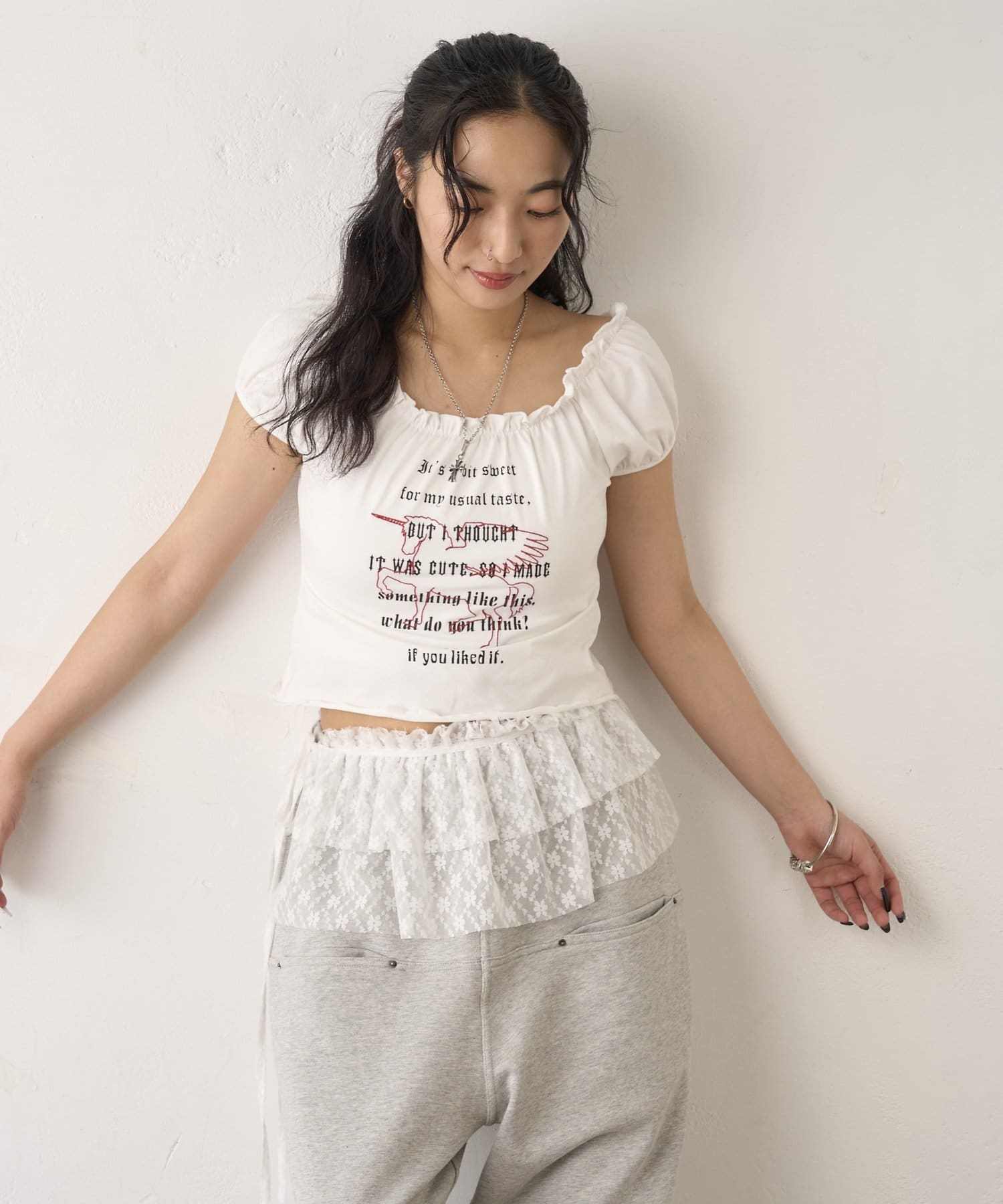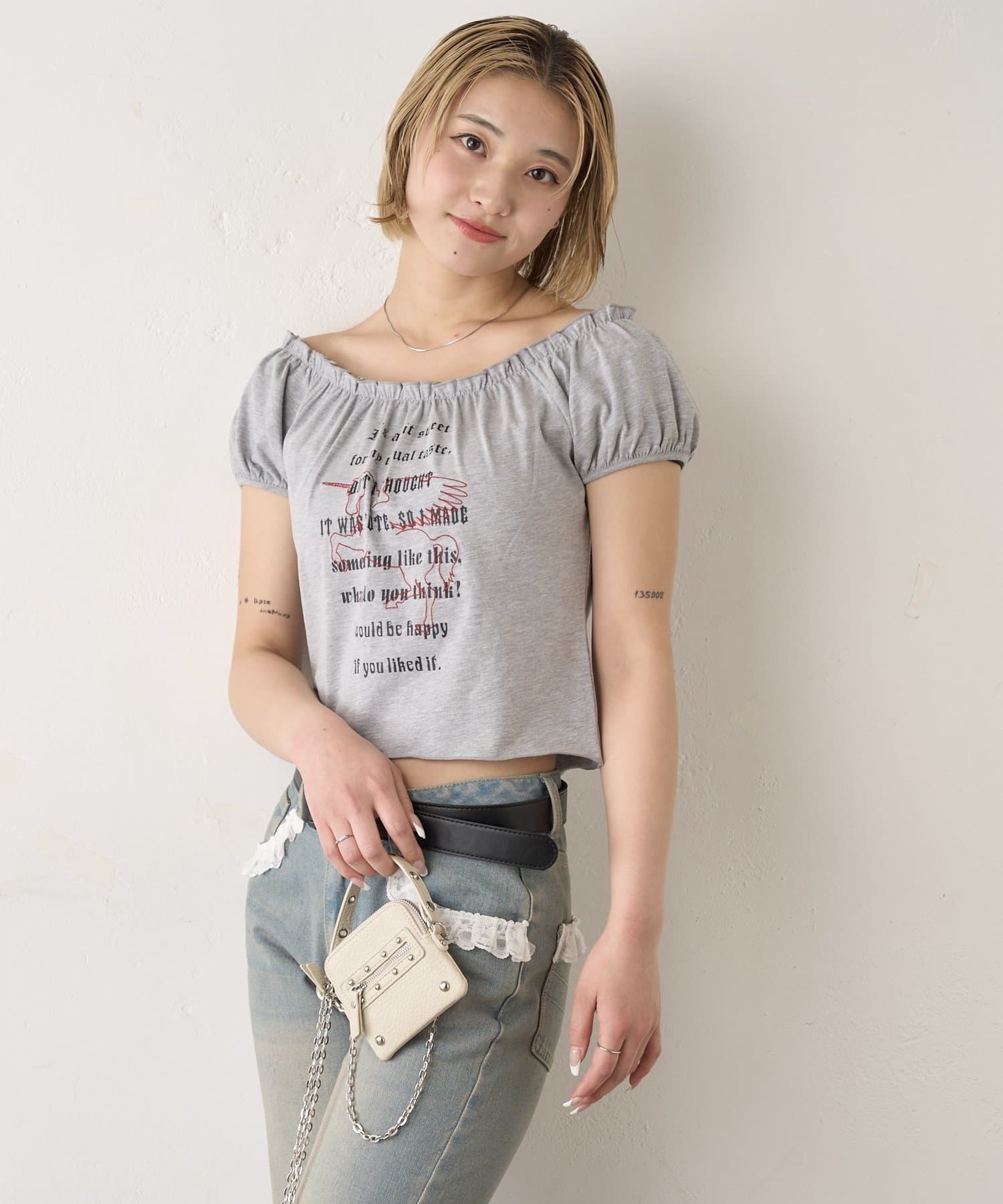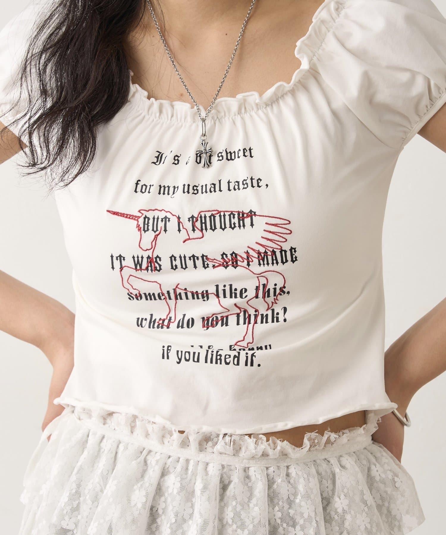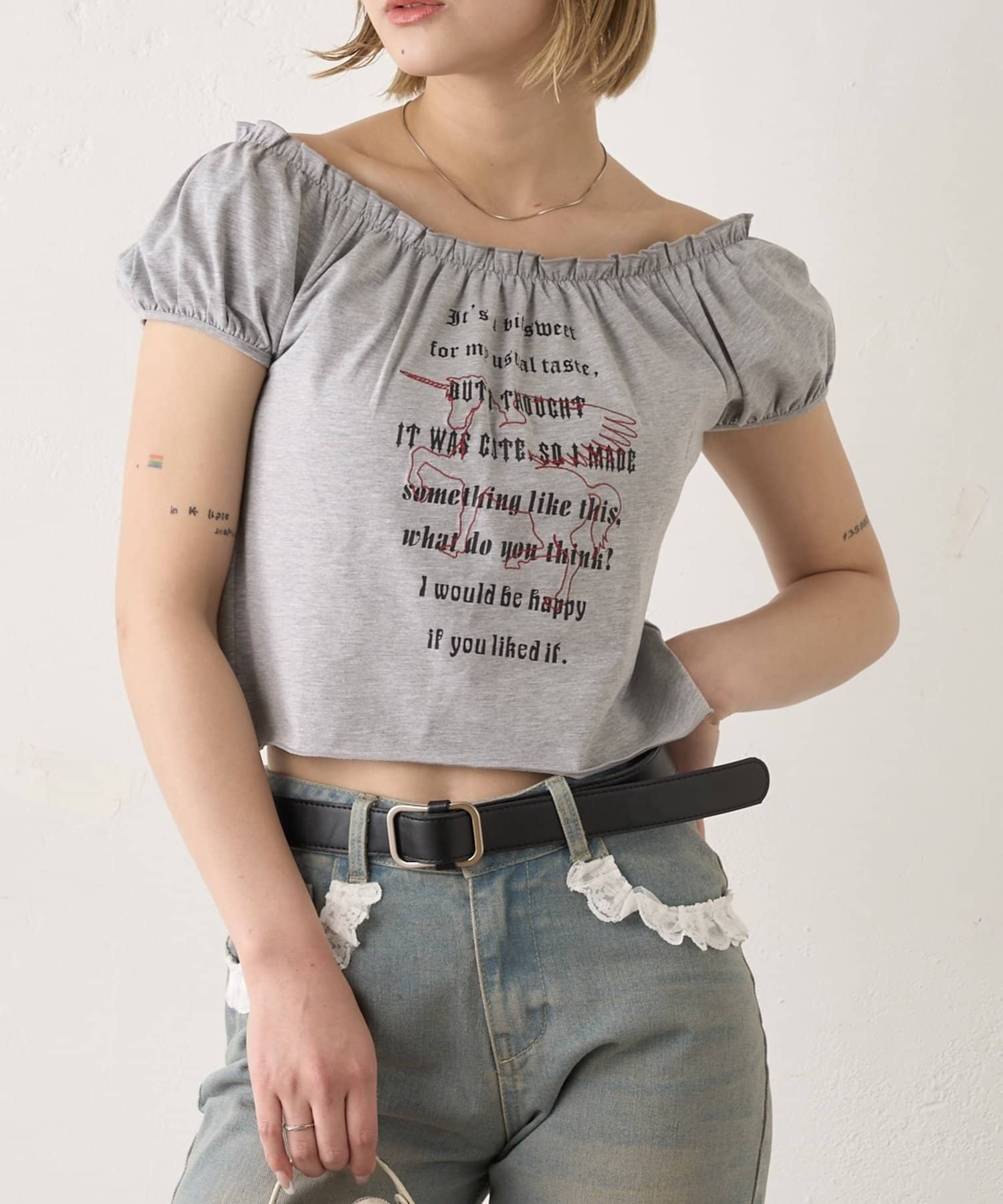 甘辛ミックスが叶う!ユニコーンデザインがポイントのオフショルトップス。